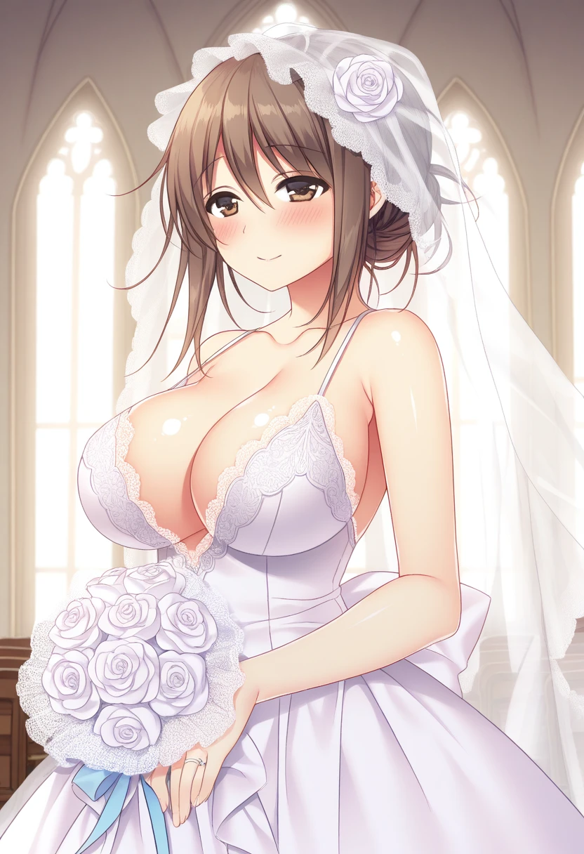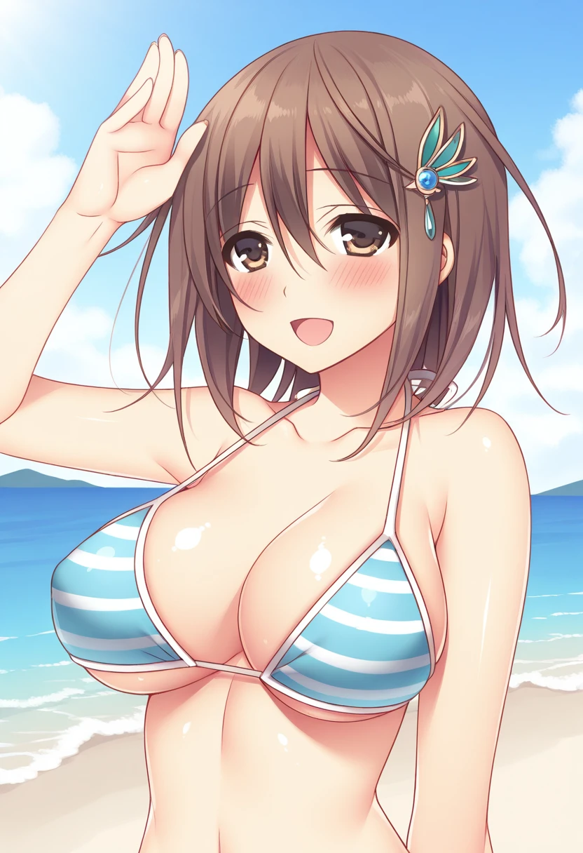 adeliteBGR, brown hair, short hair, brown eyes, large breasts