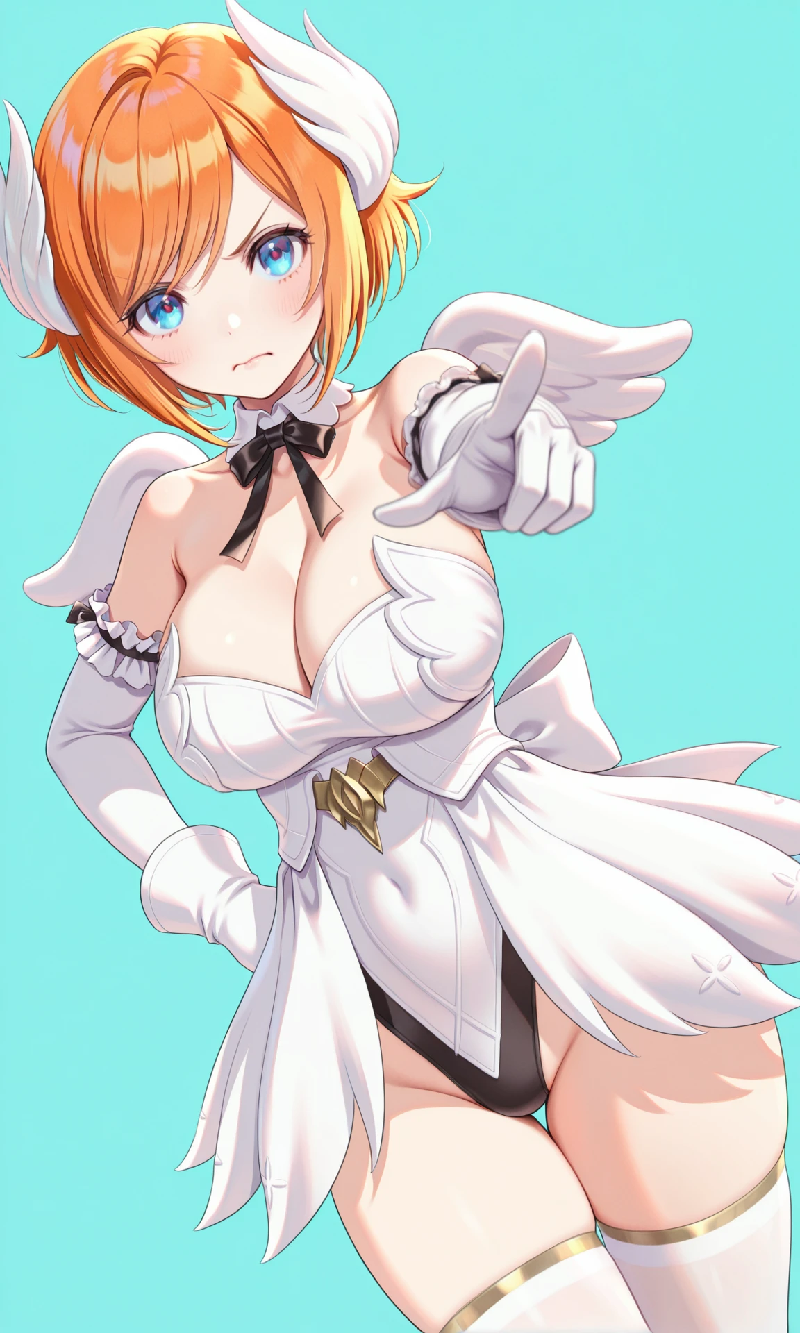 Tags:orange hair,short hair,blue eyes,head_wings,swept bangs,