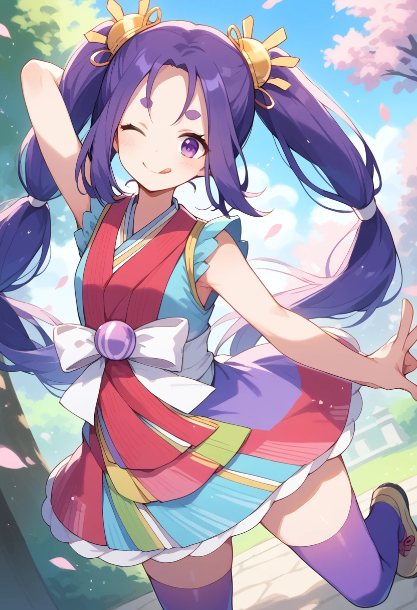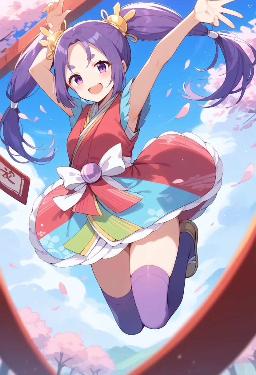 kimono,japanese clothes,sleeveless,multicolored clothes,purple thighhighs,