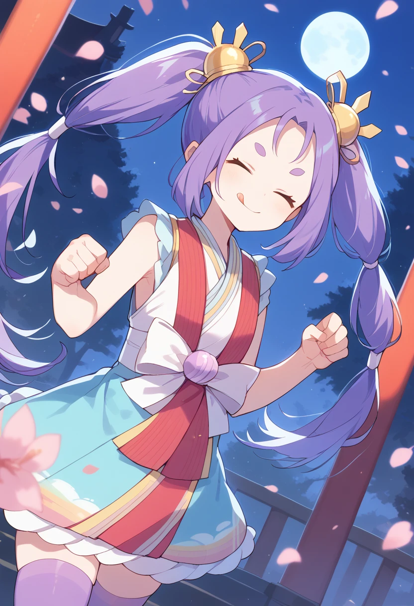 purple eyes,purple hair,long hair,twintails,short eyebrows,thick_eyebrows,hair ornament,low-tied long hair,