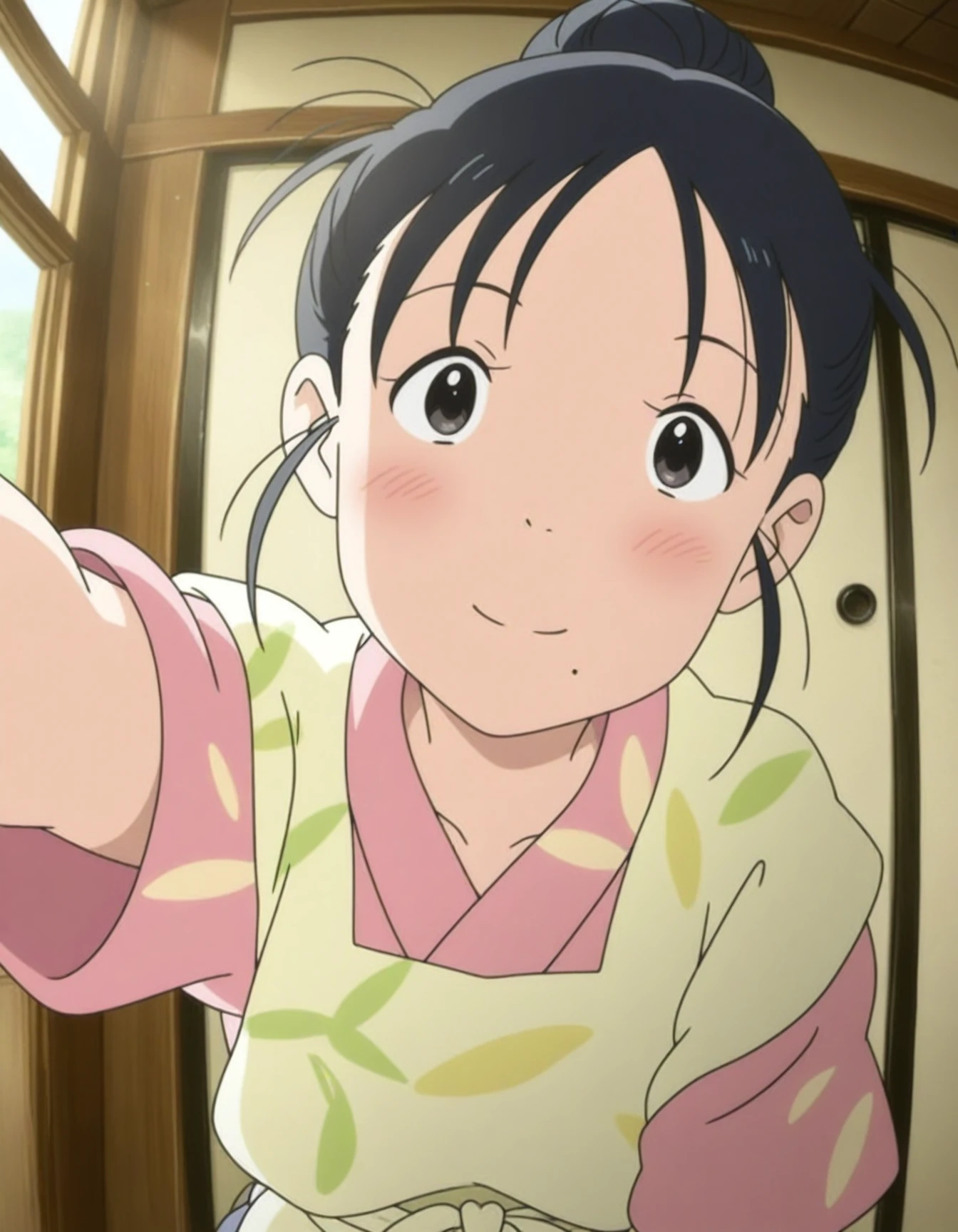 ,1girl,black hair,mole under mouth,black eyes,single hair bun