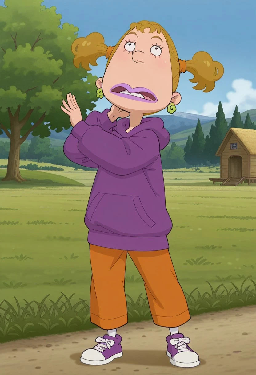 Dodie Bishop, dirty blonde hair, purple lips, pigtail hair, bob style hair, earrings
