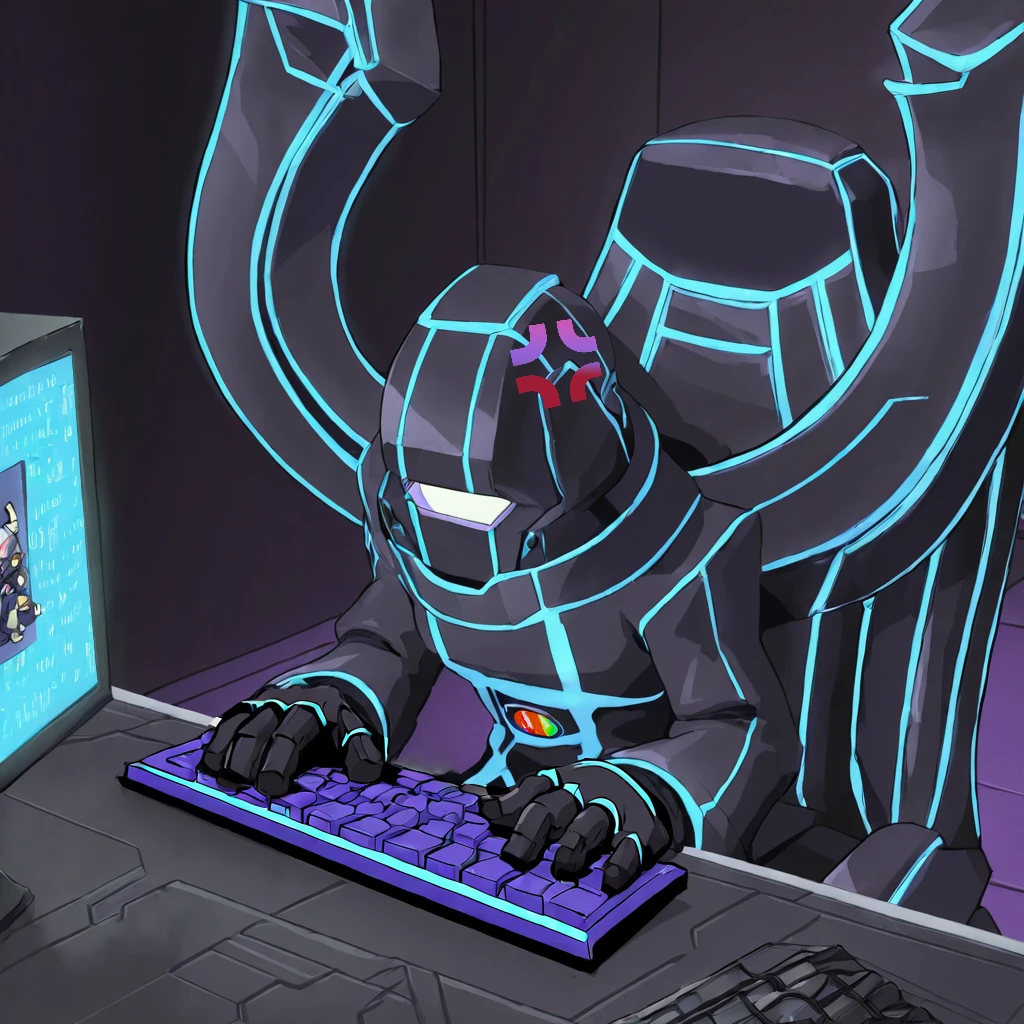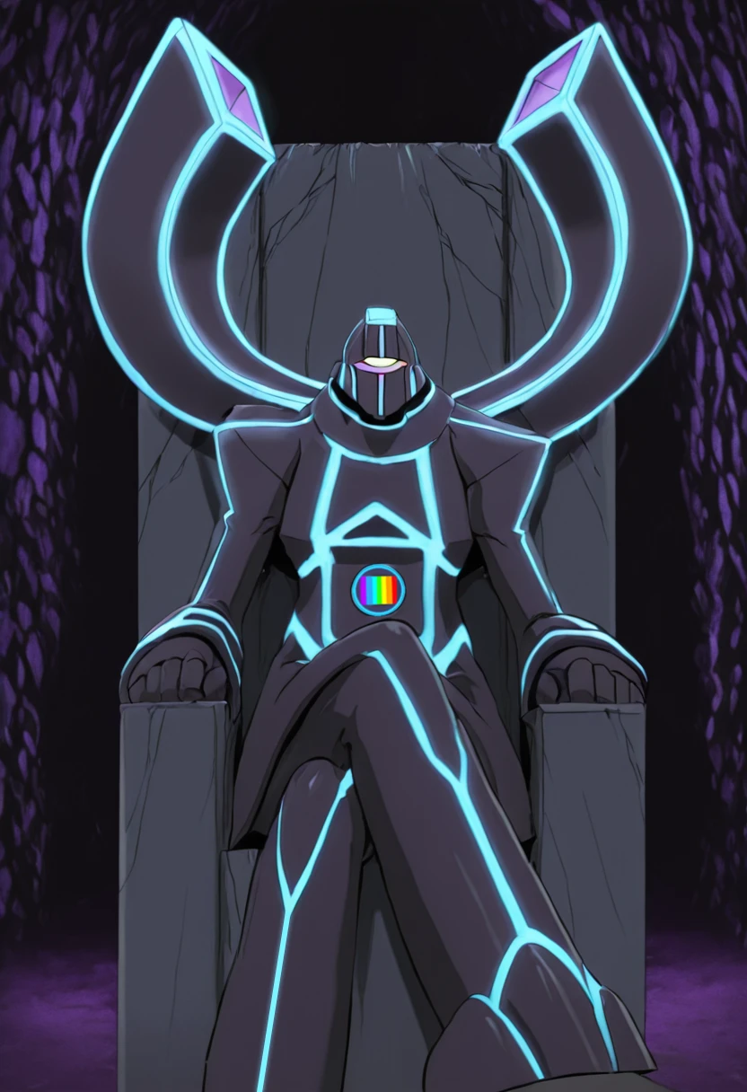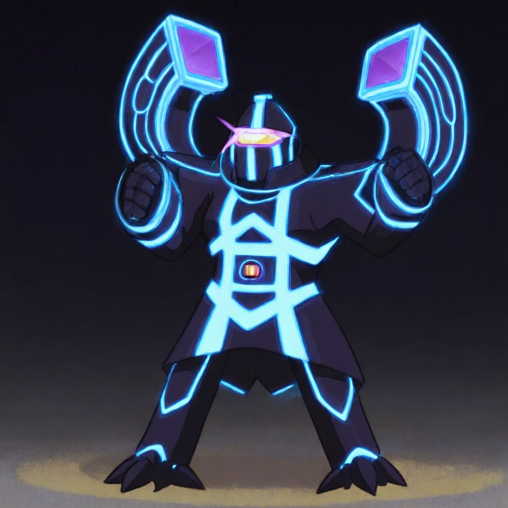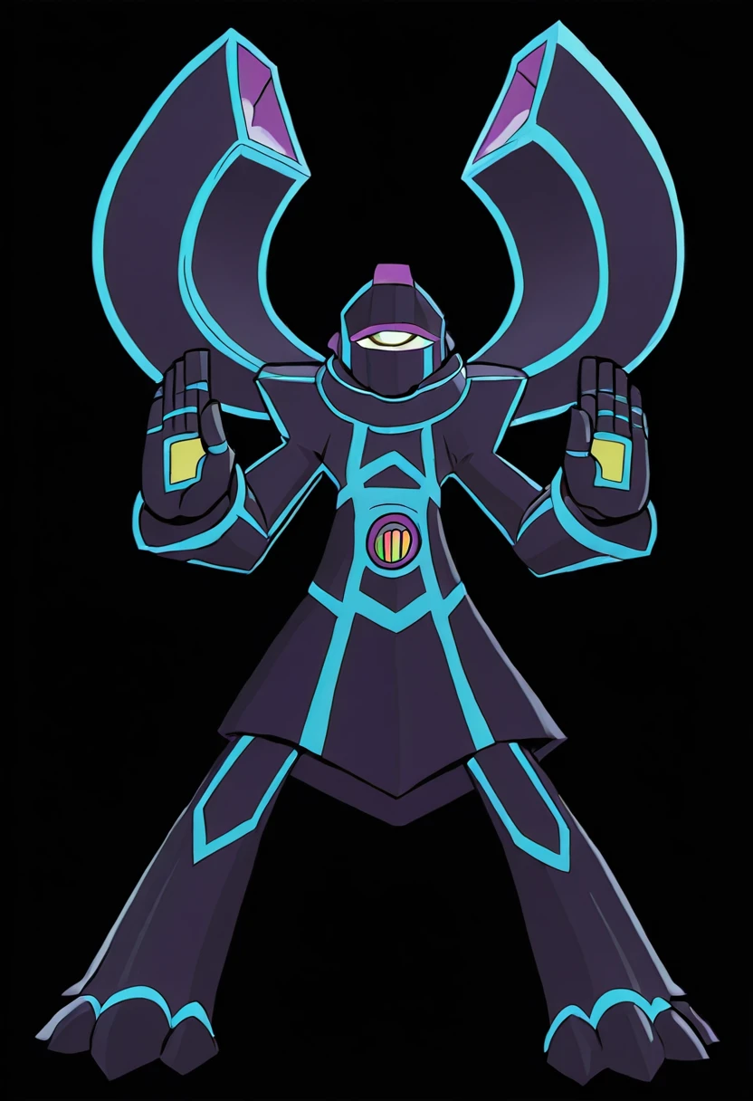 Laserman, NetNavi, Solo, Shoulder Cannon, One-Eyed, Yellow Eyes, Purple Eyeliner, Neon Trim, Coat, Black Coat, Emblem, Glowing