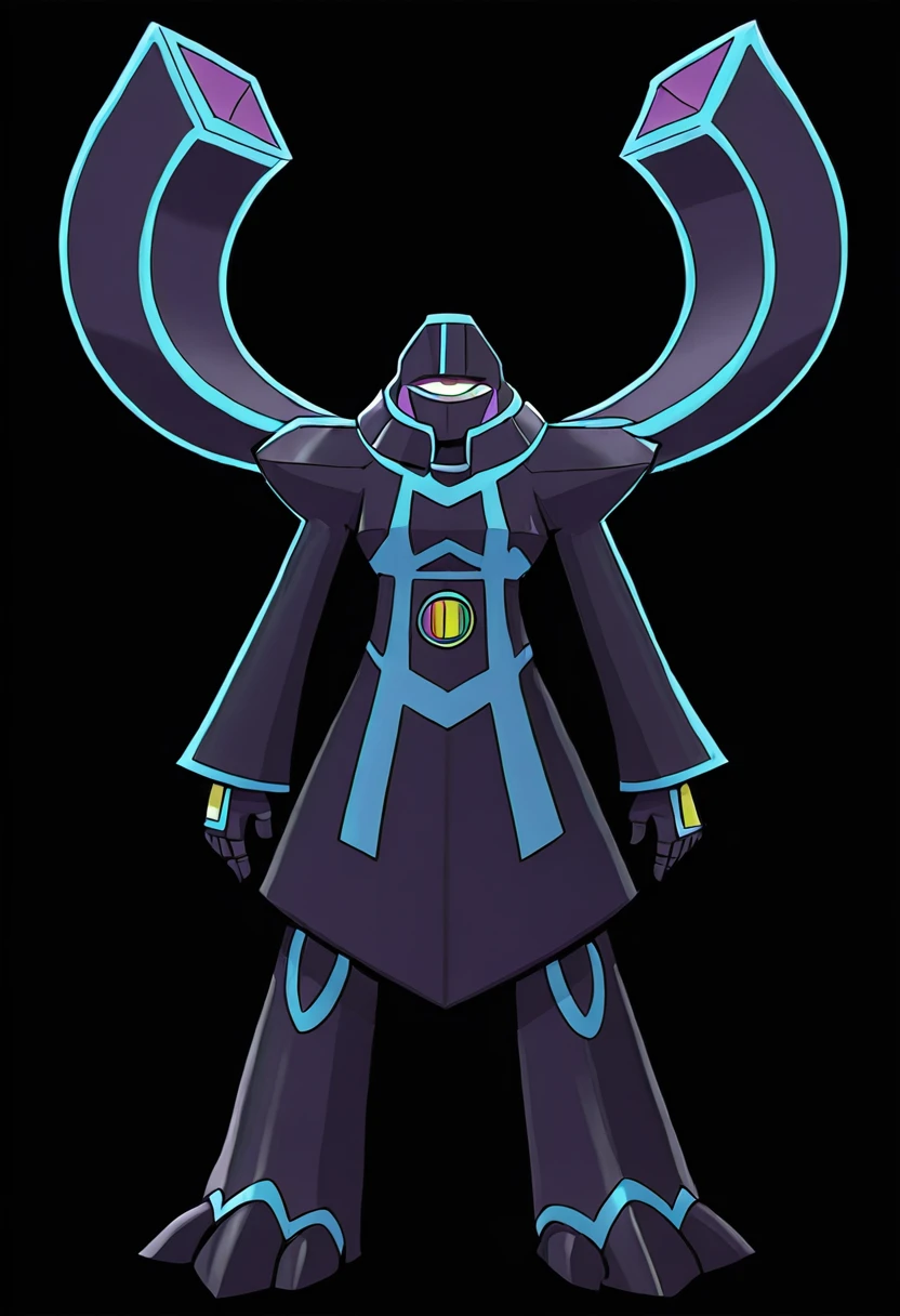 Laserman, NetNavi, Solo, Shoulder Cannon, One-Eyed, Yellow Eyes, Purple Eyeliner, Neon Trim, Coat, Black Coat, Emblem