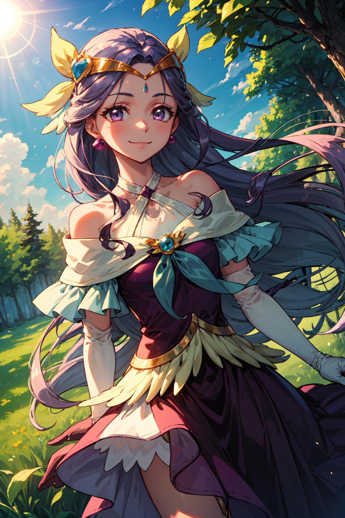 Recommend Tags: hair ornament, hair intakes, off shoulders, halterneck, brooch, earrings, elbow gloves, high heels