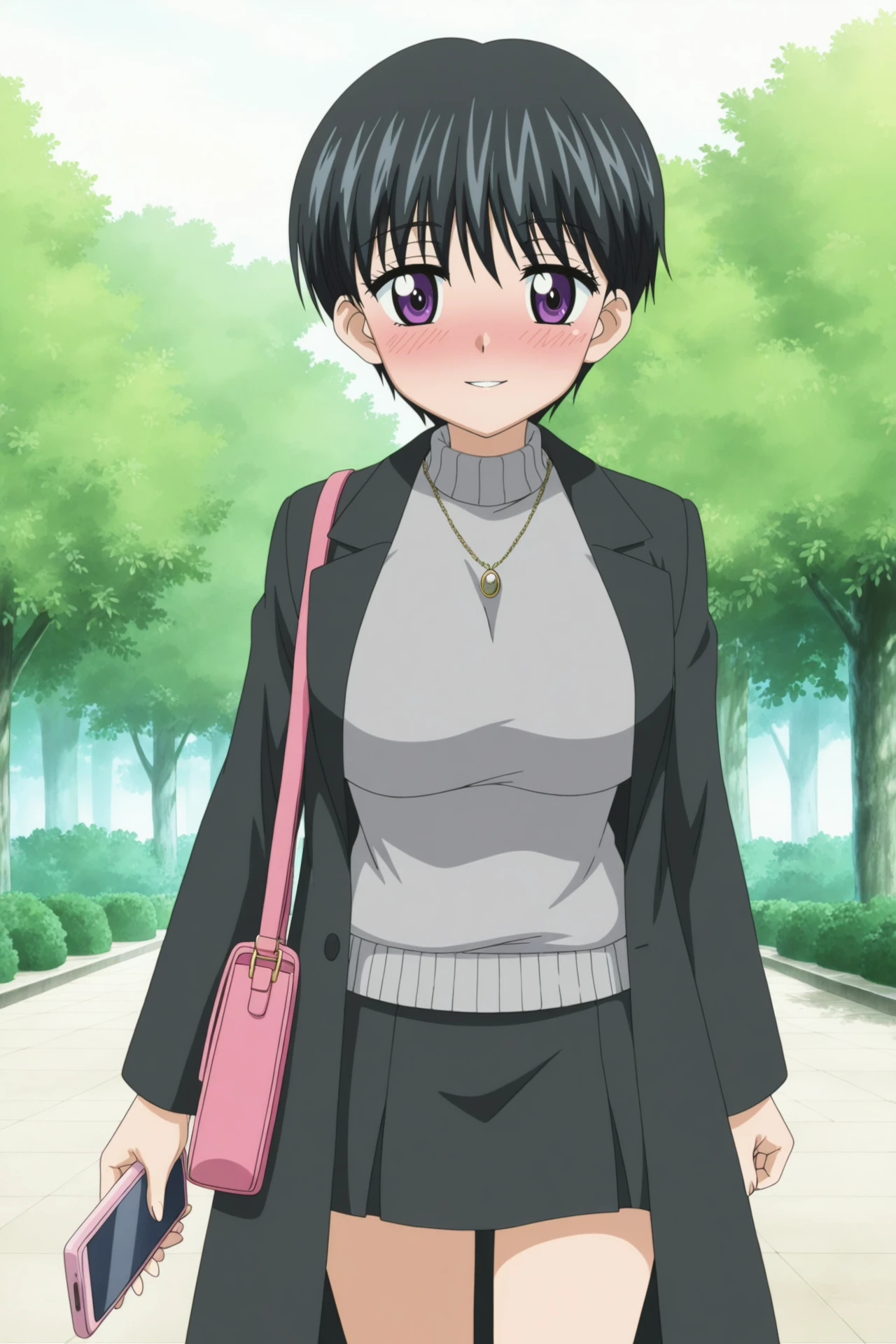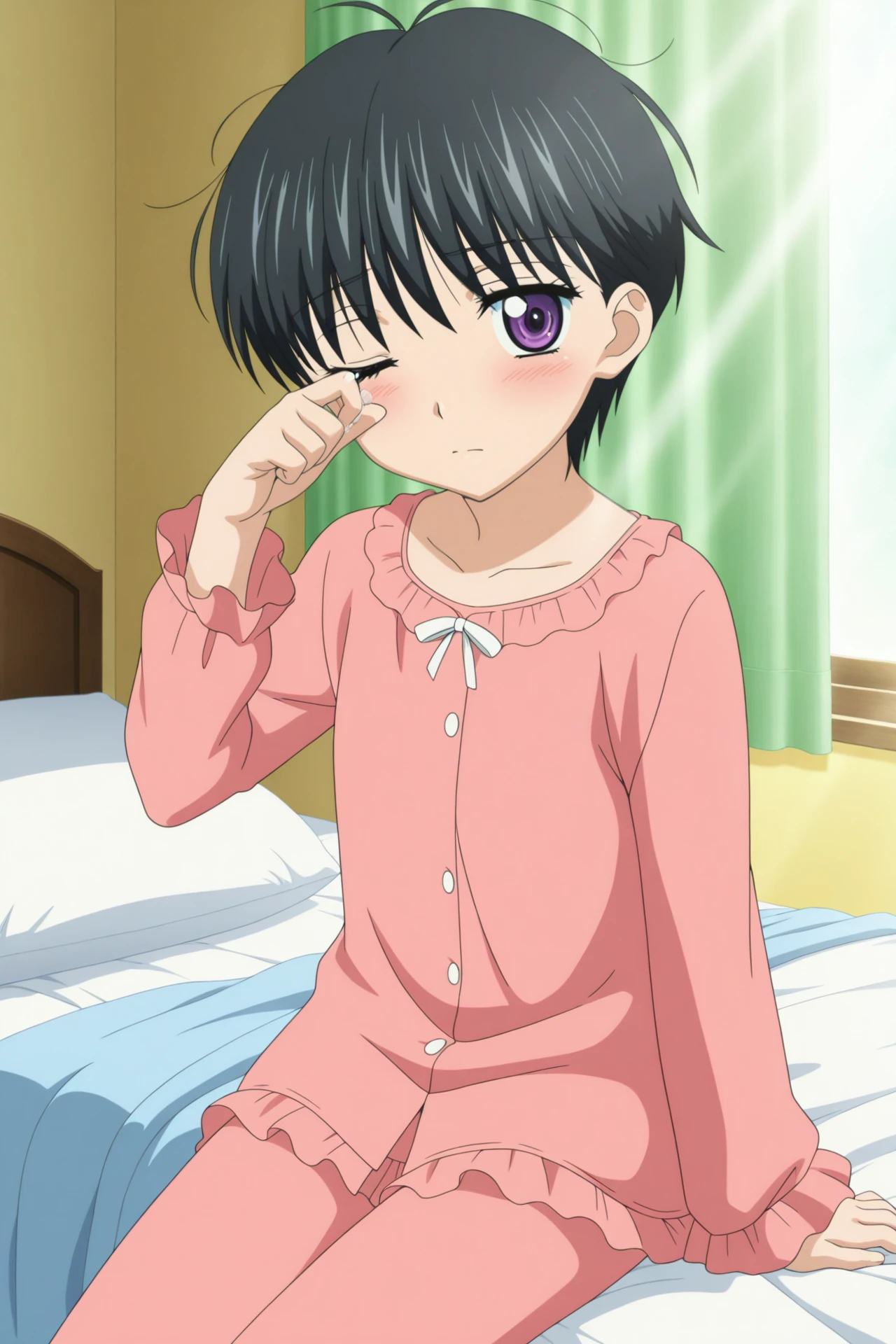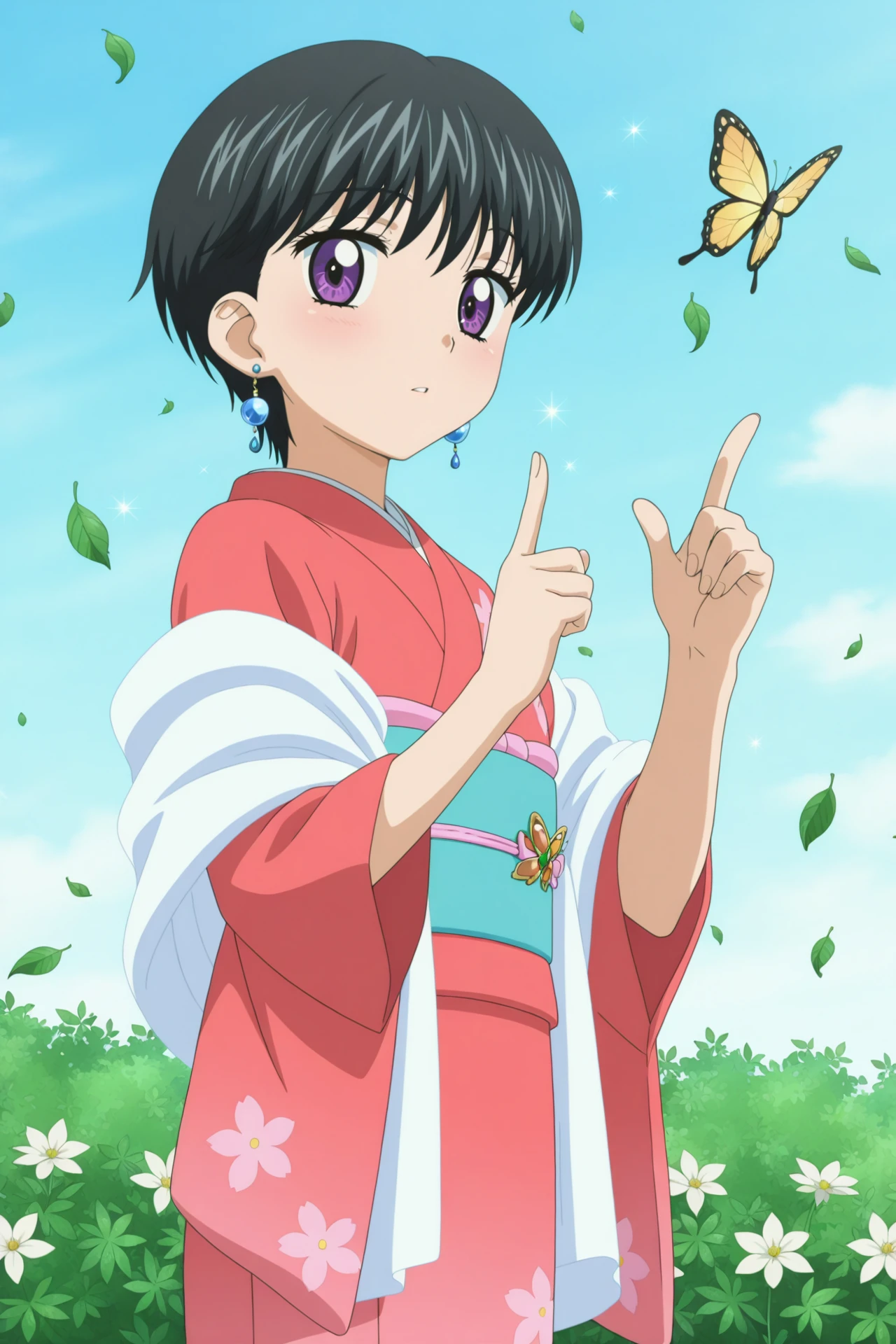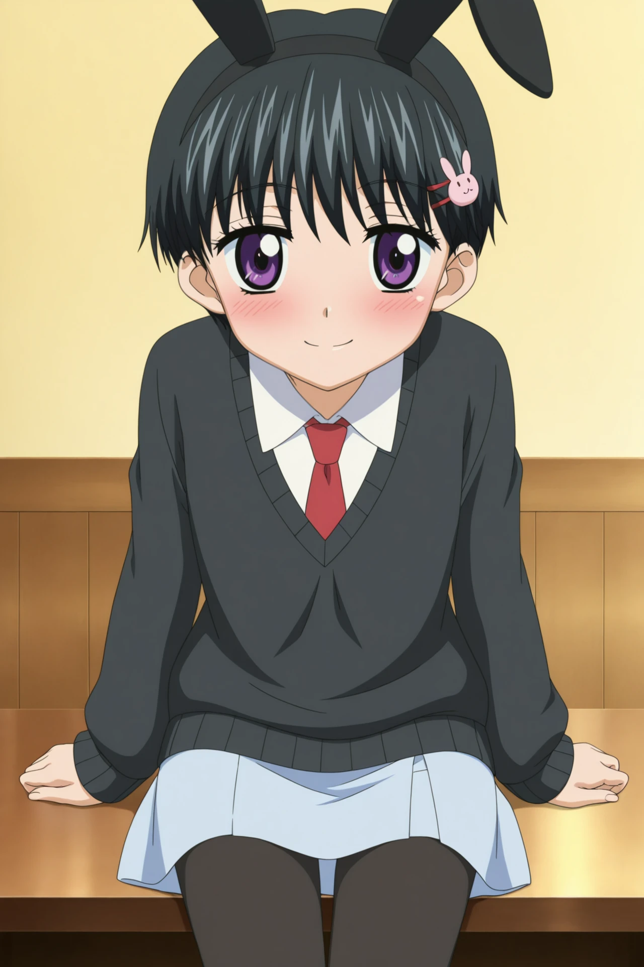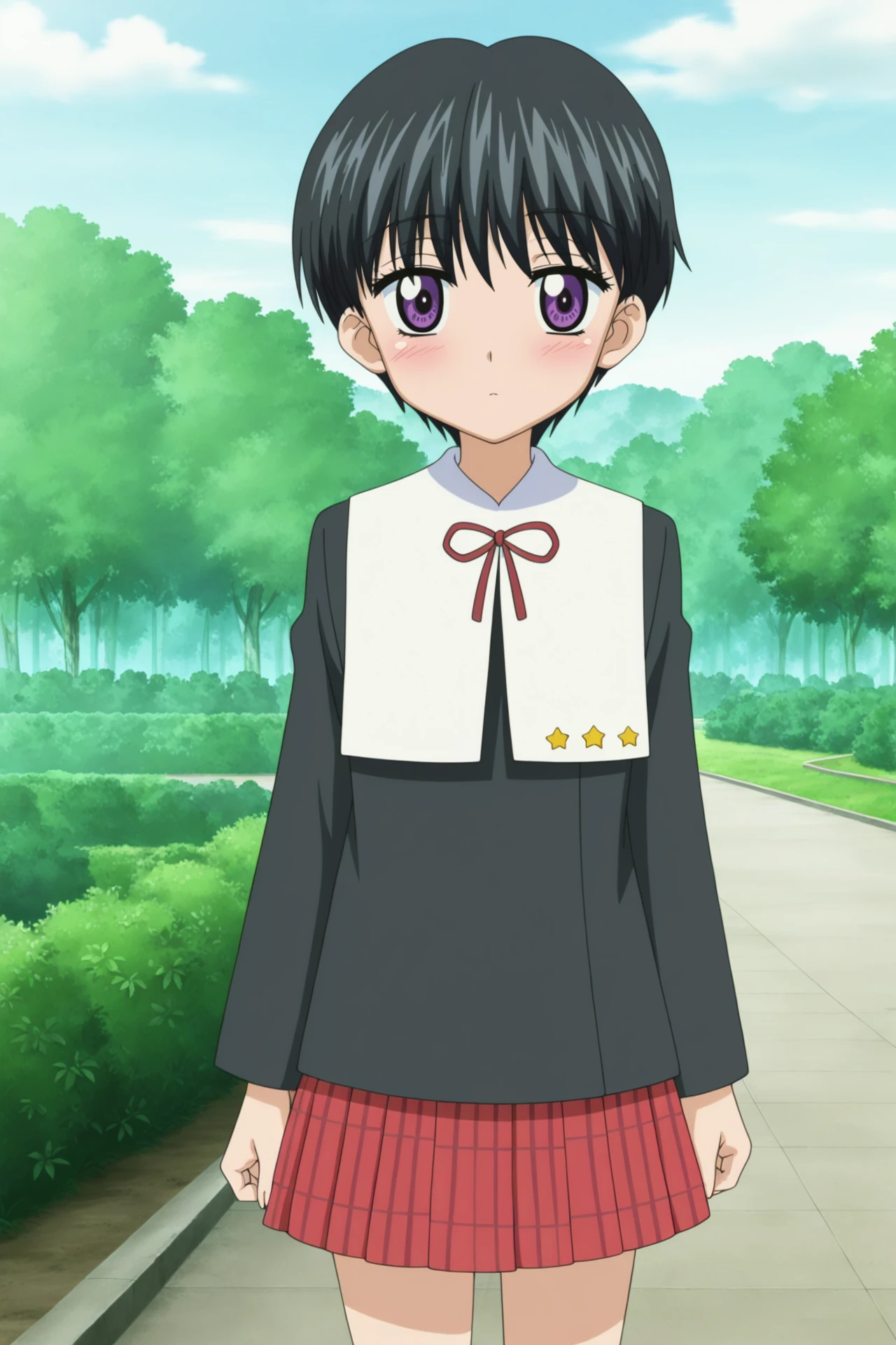 Imai Hotaru, purple eyes, short hair, black hairDefault Outfit :