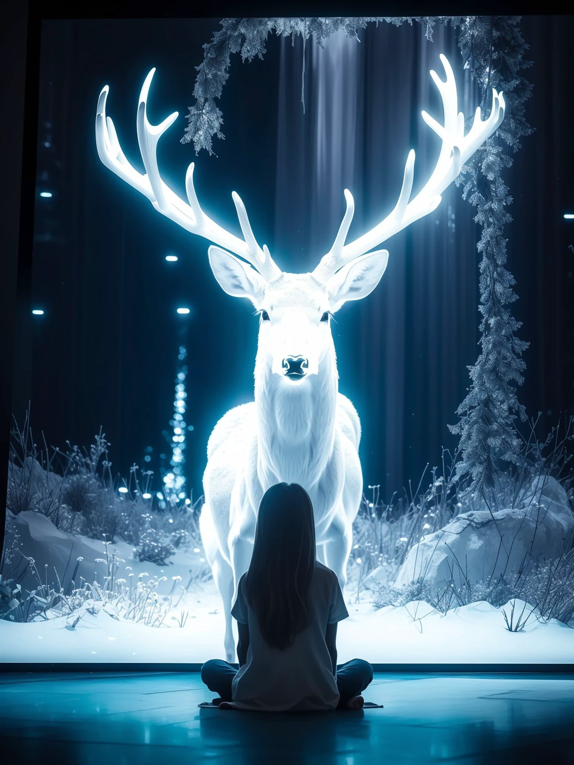 比如:a girl sitting by herself in front of a big Wolf,guardian