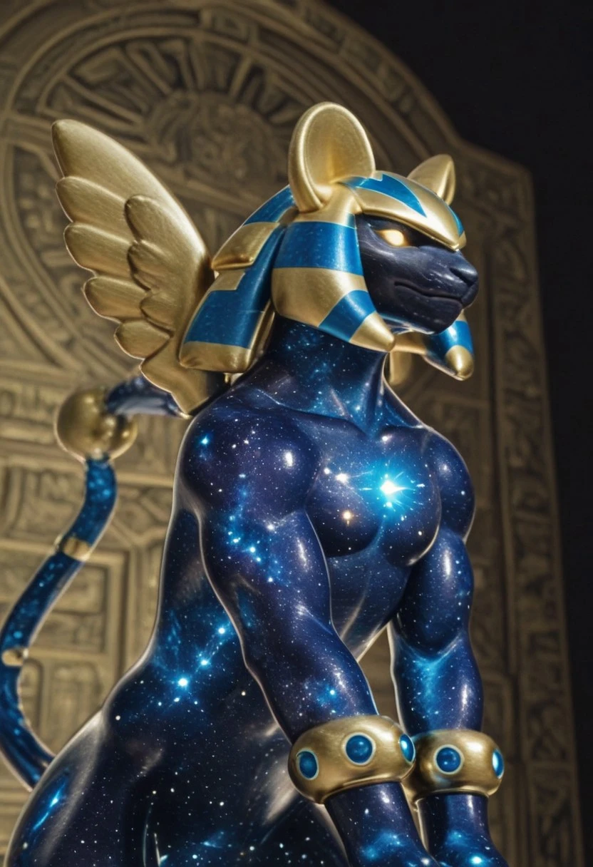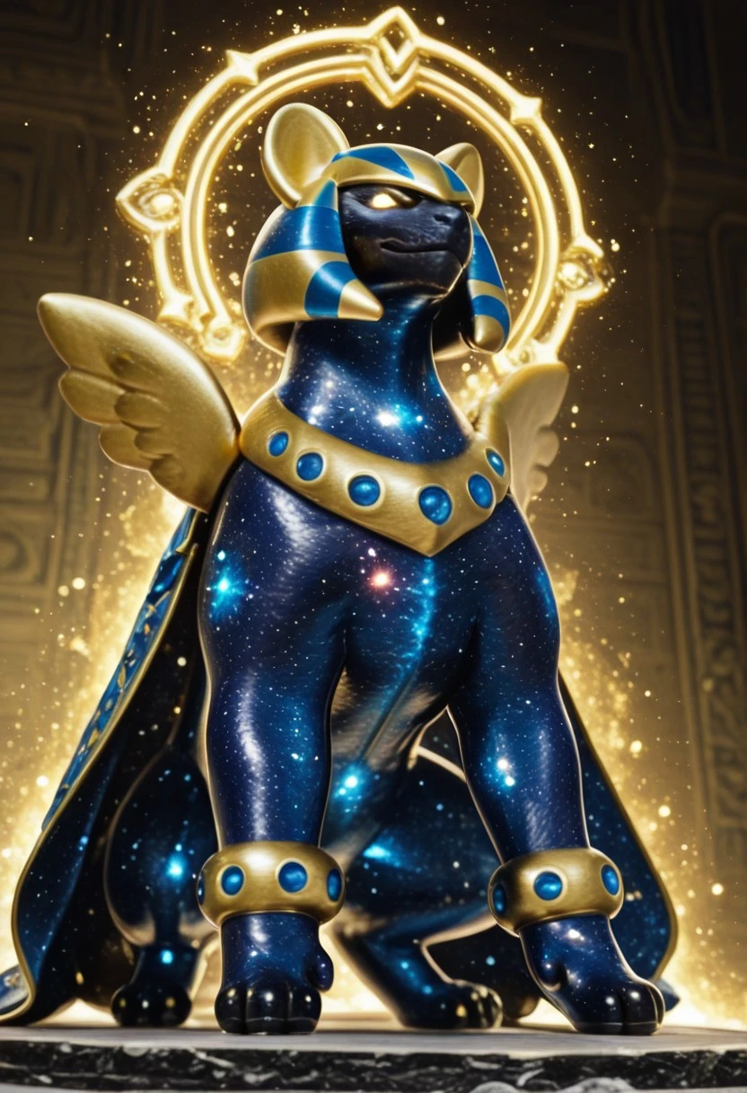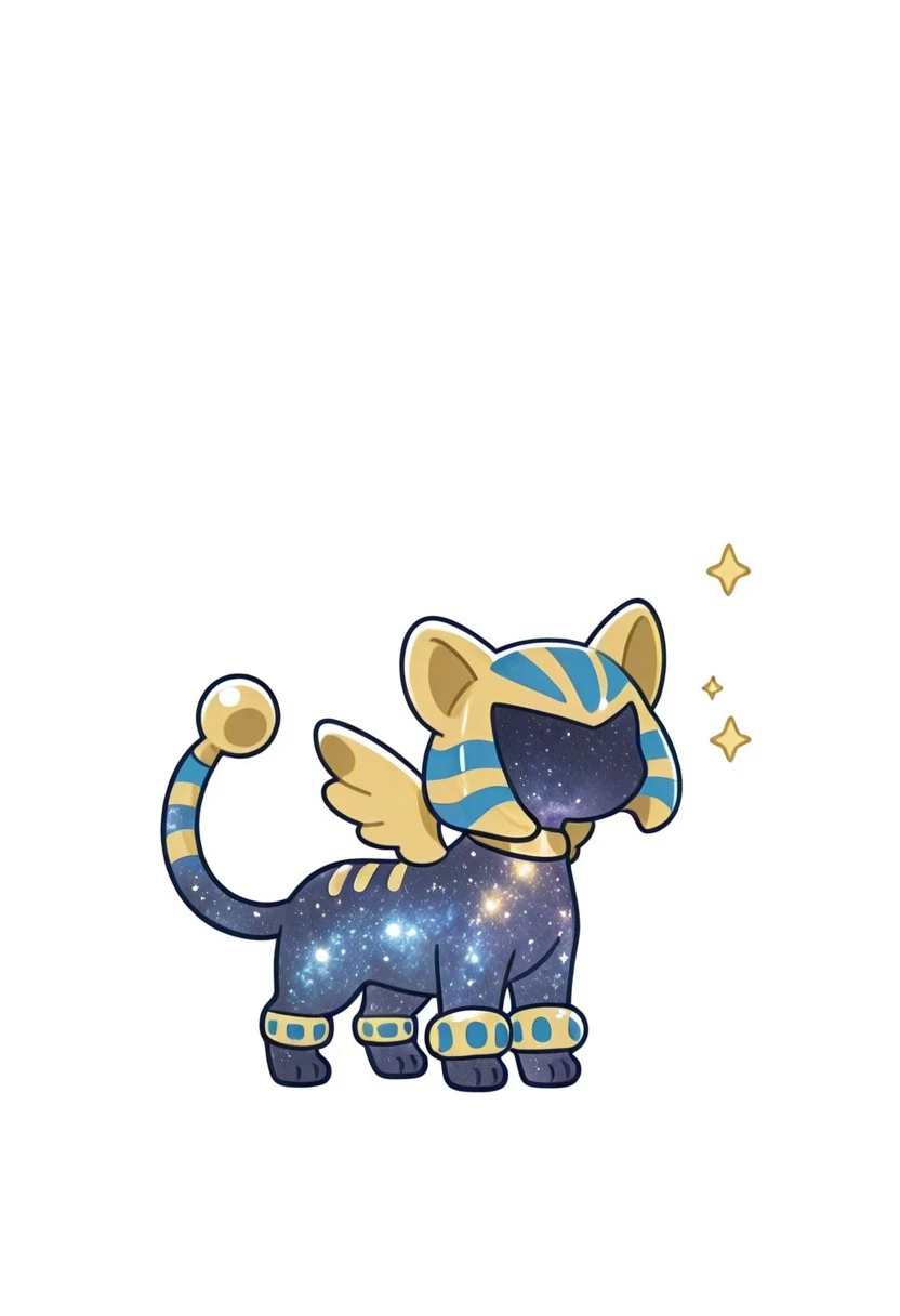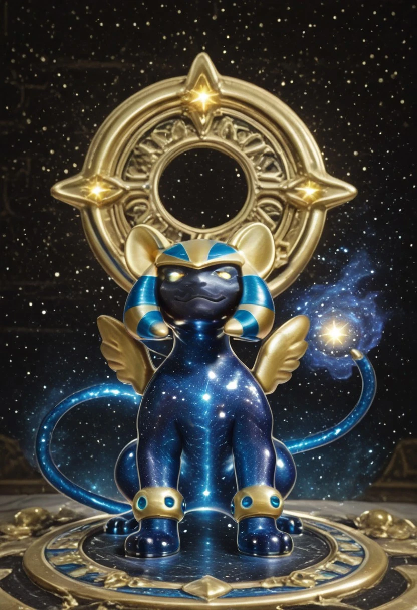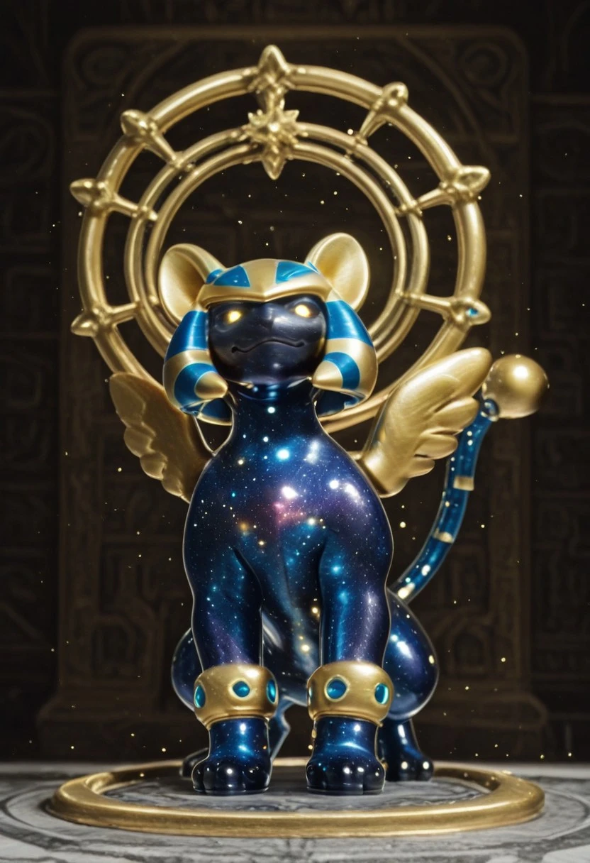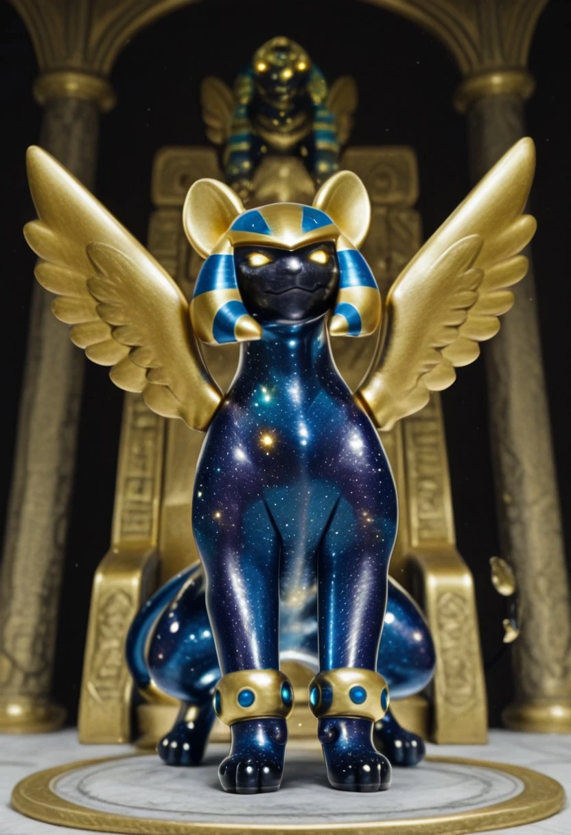 sphinx cat, sphinx, cat, cosmic, egyptian, fgo, cosmic skin, starlight, golden accesories, pokemon (creature), no humans, solo, standing, faceless, no eyes, no whiskers, starlight skin, cosmic skin