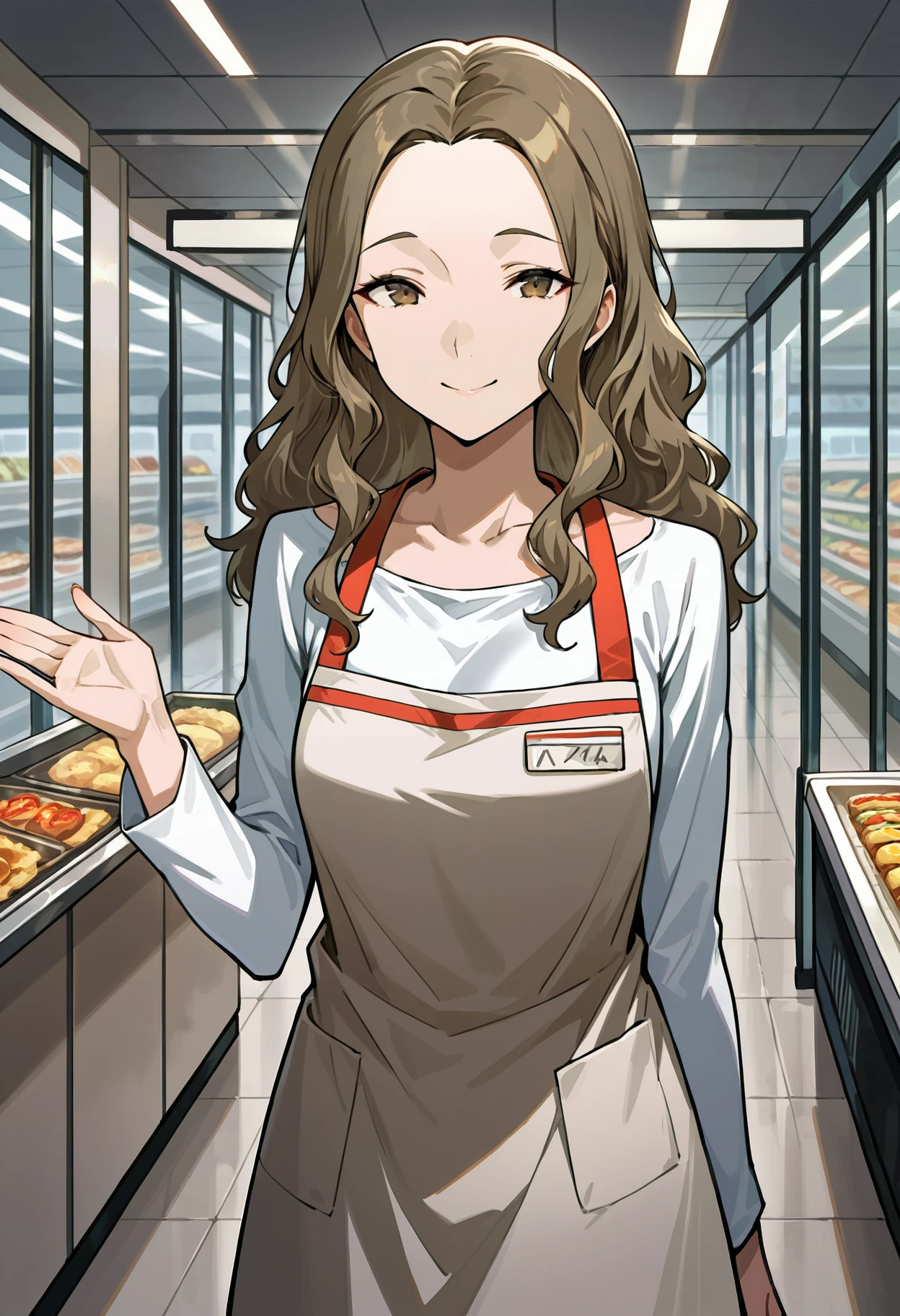 p4konishi, brown hair, long hair, wavy hair, brown eyes,