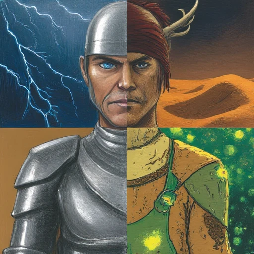 try adding "split-screen" and "divided into four quadrants, each portraying a distinct version of..." to get the split look
