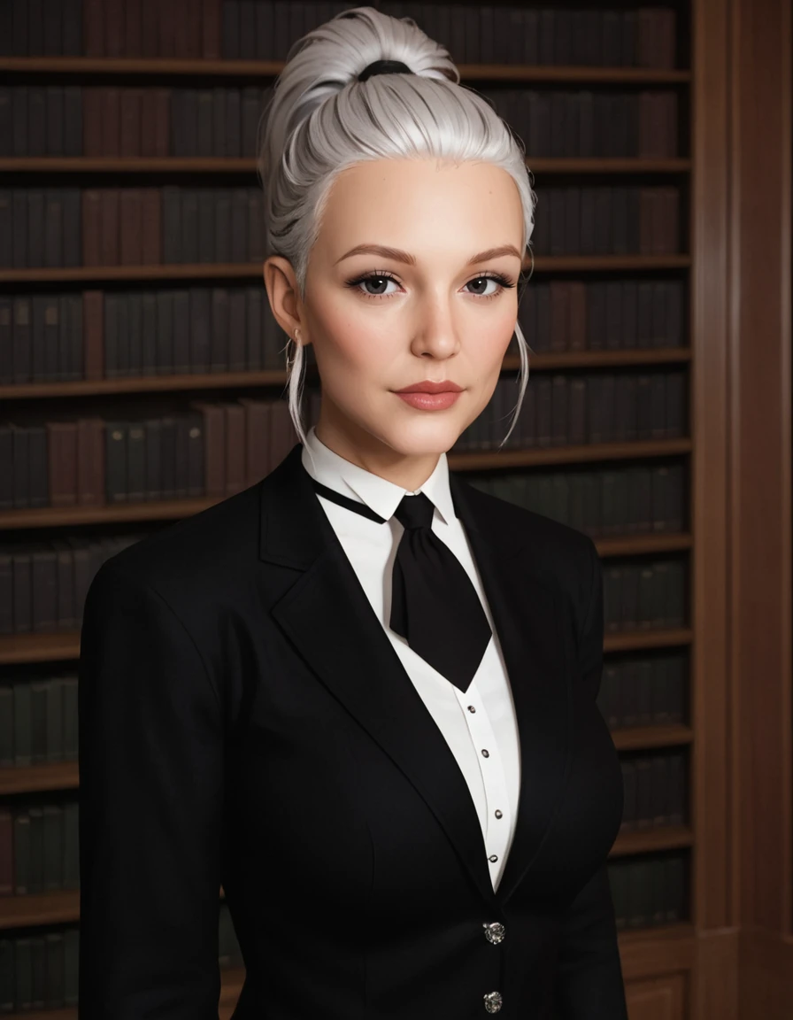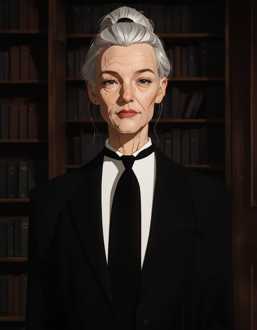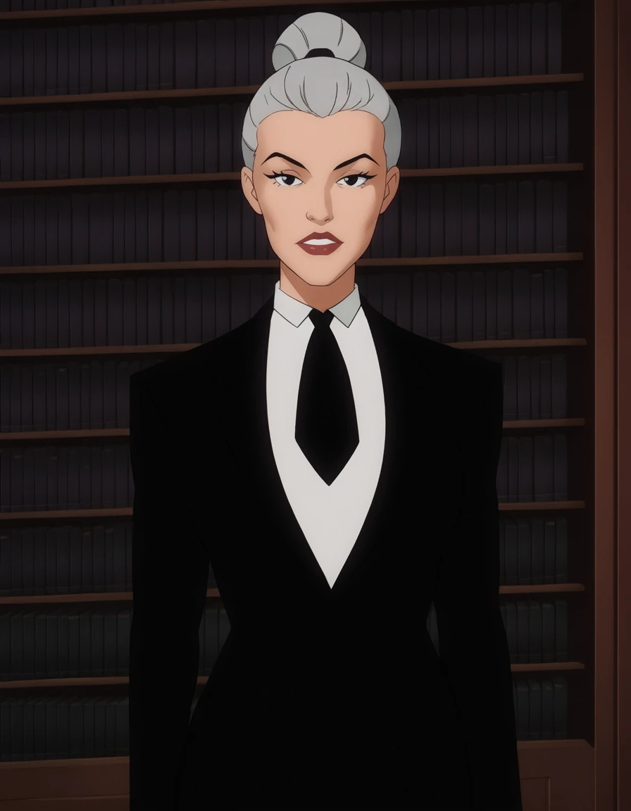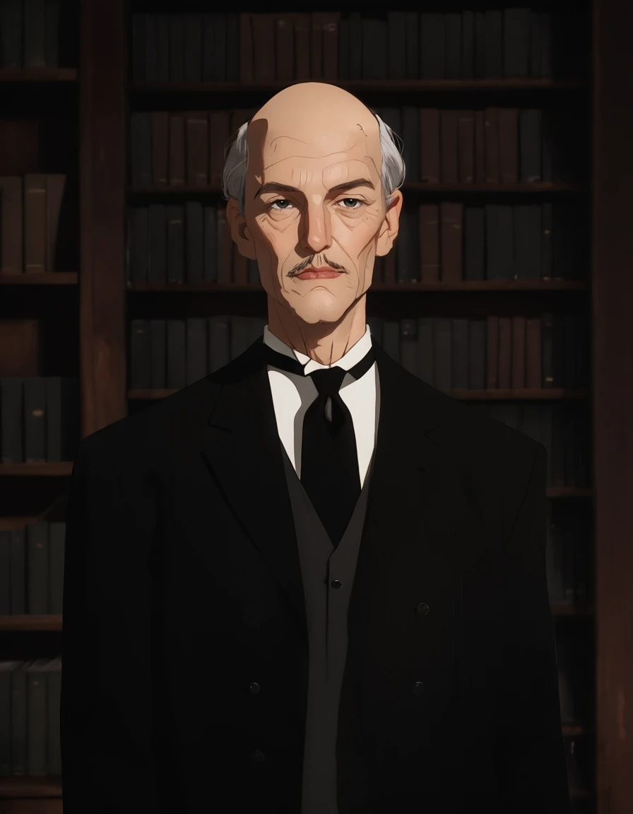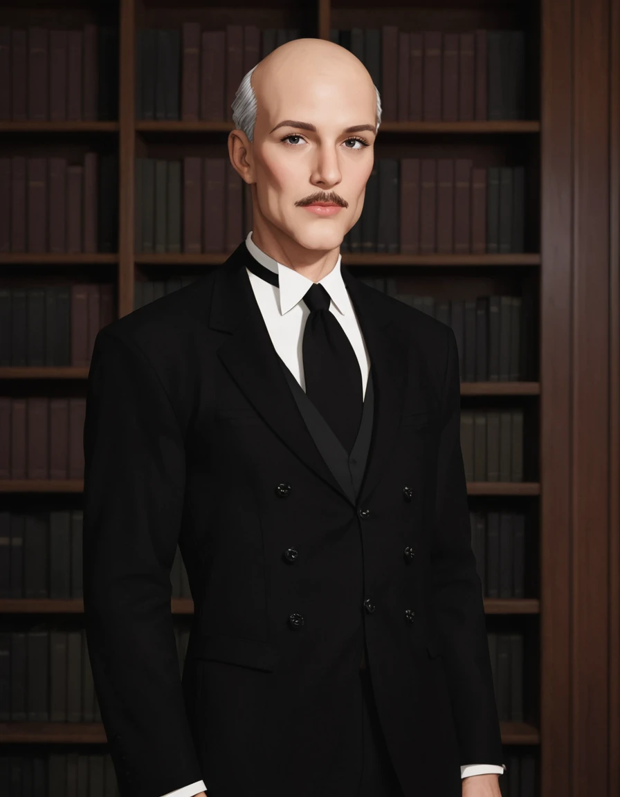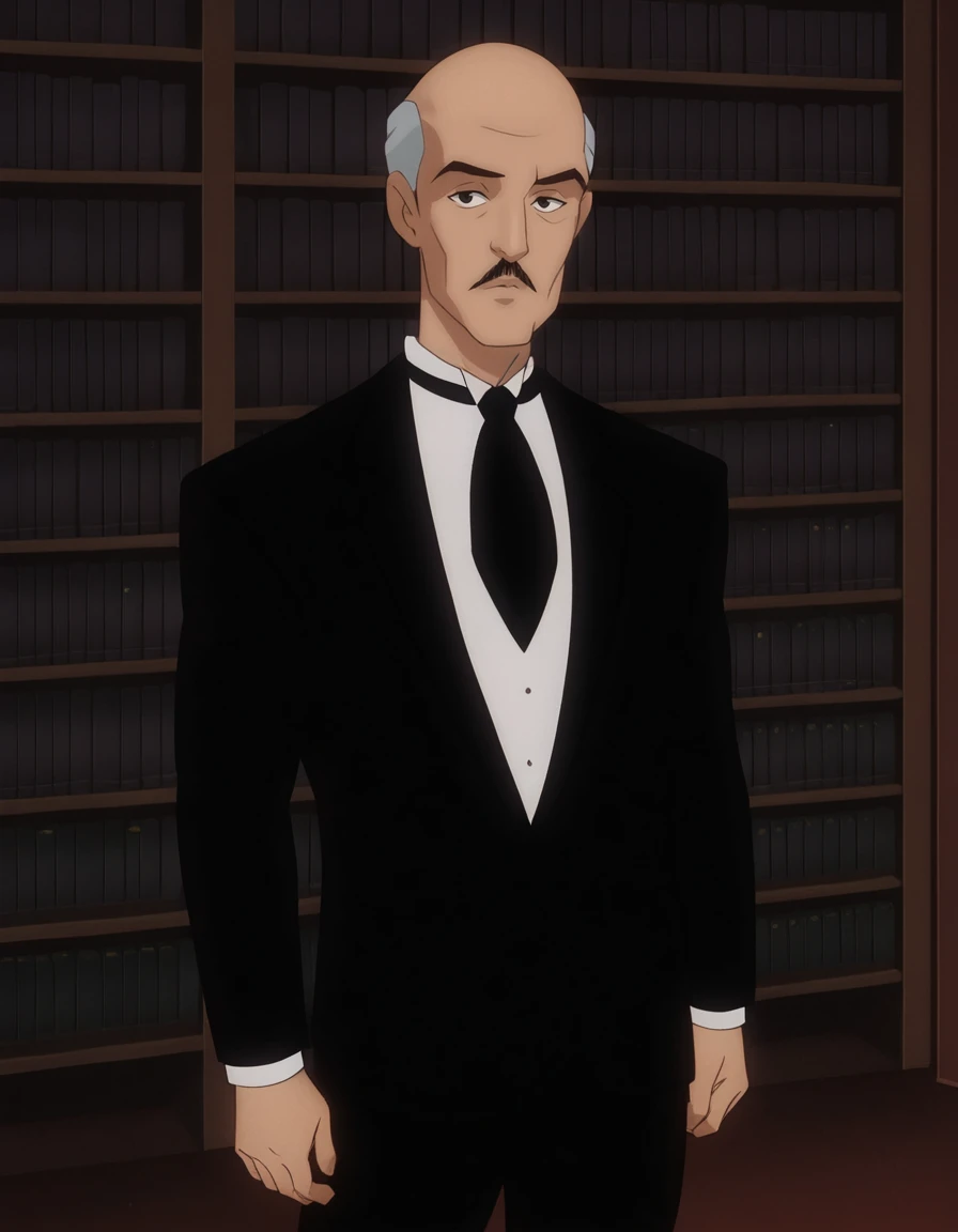 Alfr3d P3nnyworth, grey hair, jacket, bow,