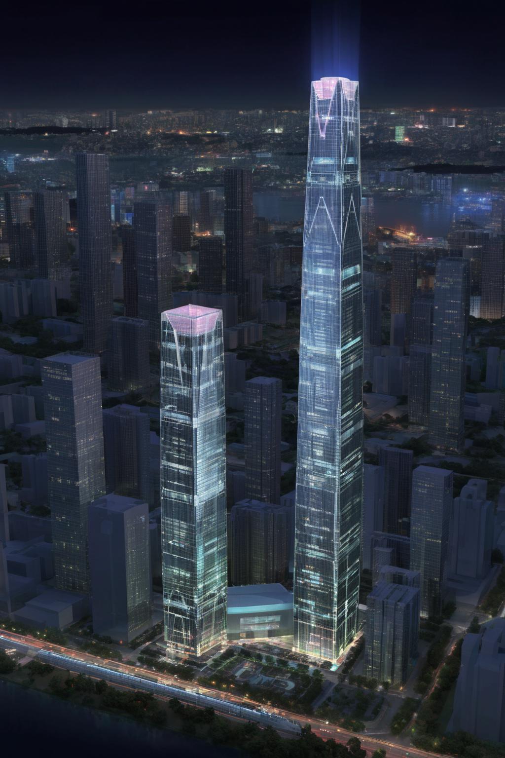 Prompt: skyscraper,renderings,300 (or400/500/600) meters,super high rise building,no humans,scenery,outdoors,sunlight,