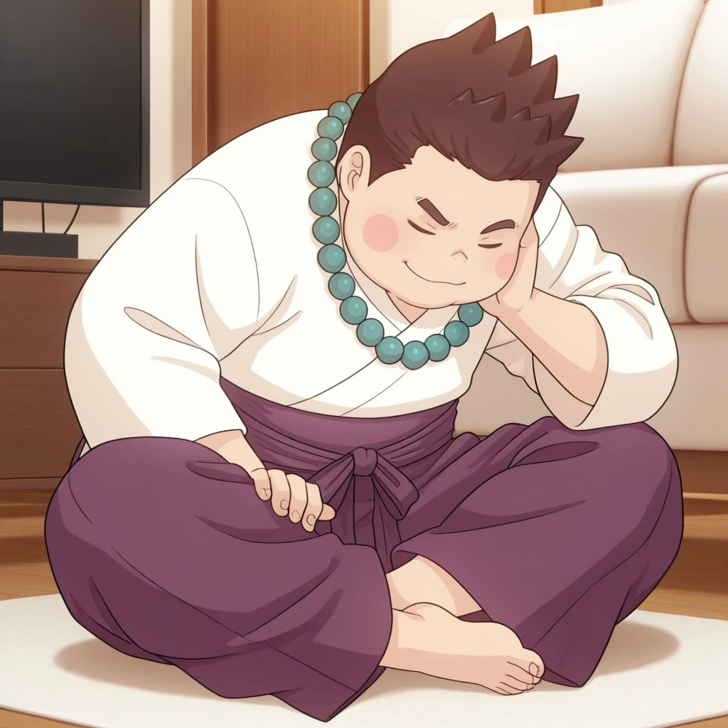 male, solo, human, young, brown hair, short hair, spiked hair, brown eyes, blush stickers, chubby