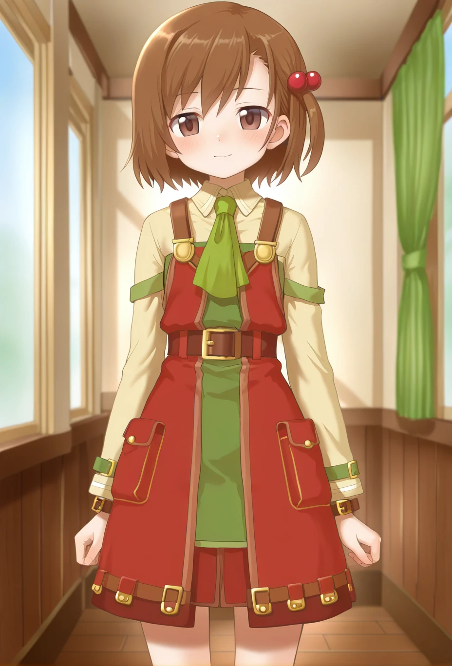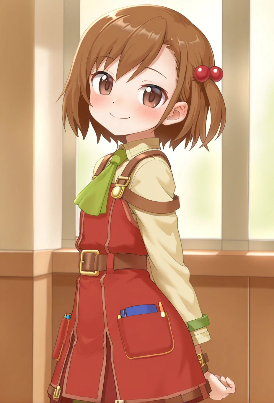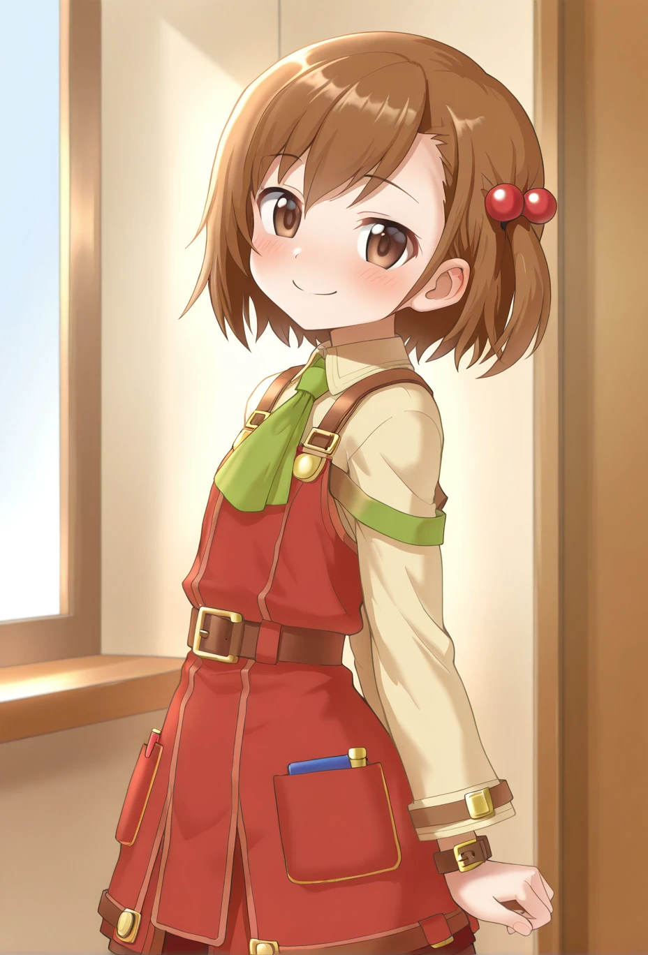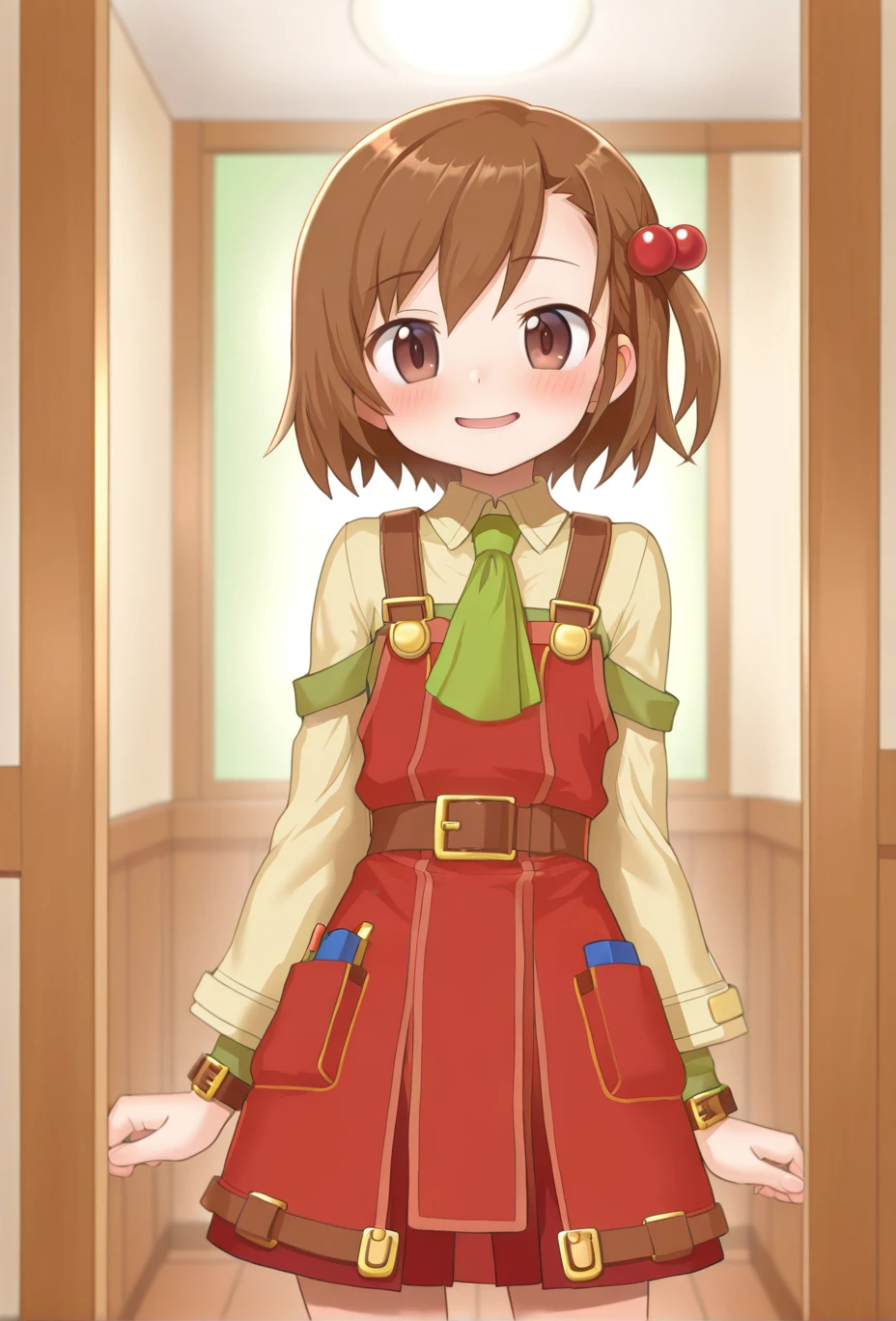 brown hair, hair ornament, 1girl, solo, short hair, hair bobbles, brown eyes, solo