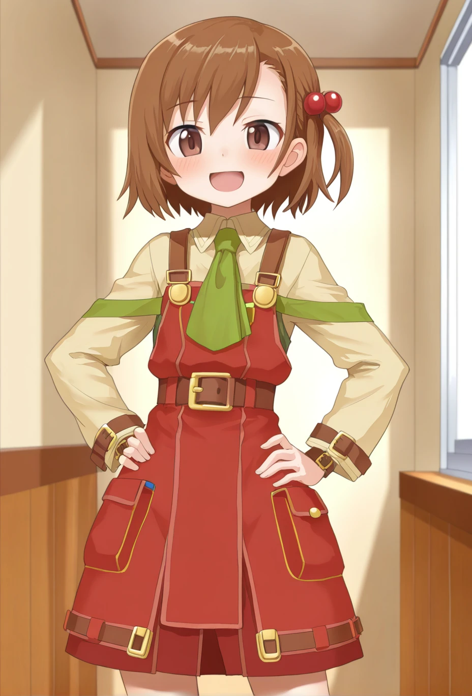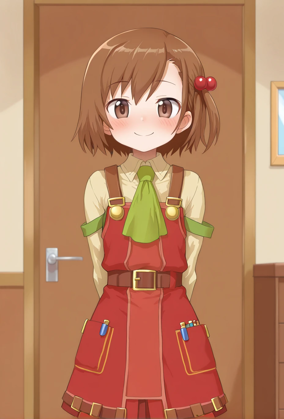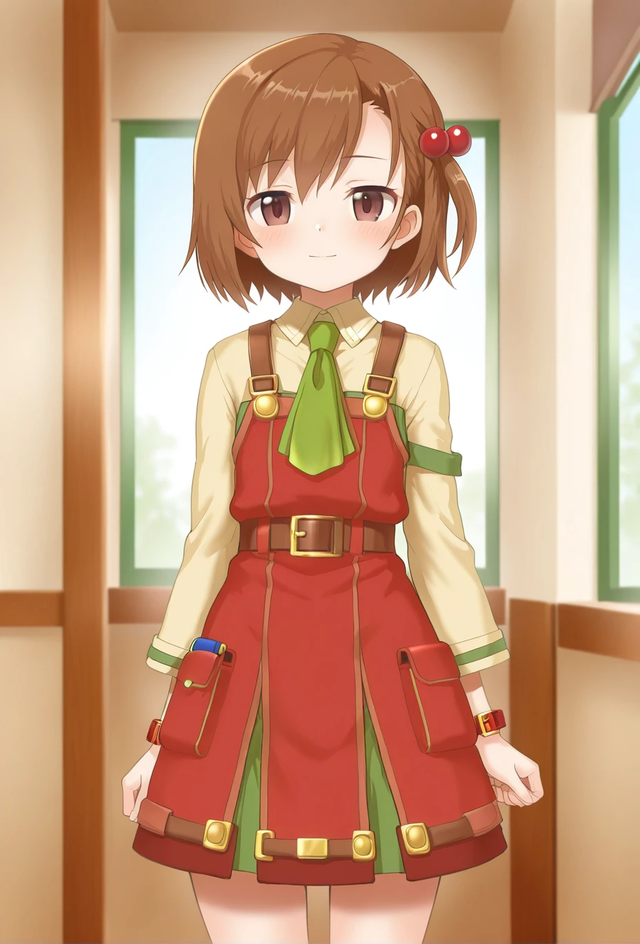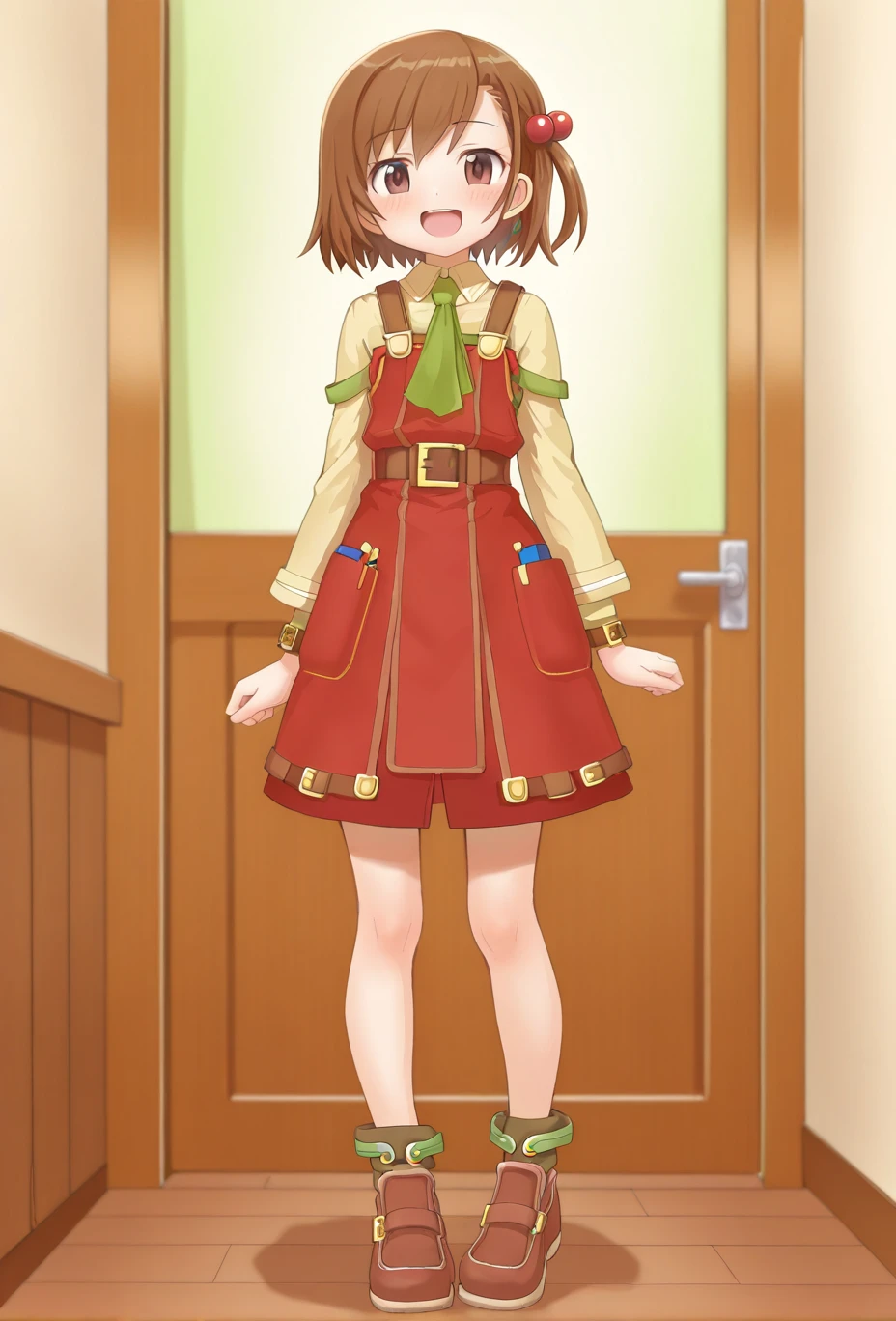 brown hair, hair ornament, 1girl, solo, short hair, hair bobbles, brown eyes, solo