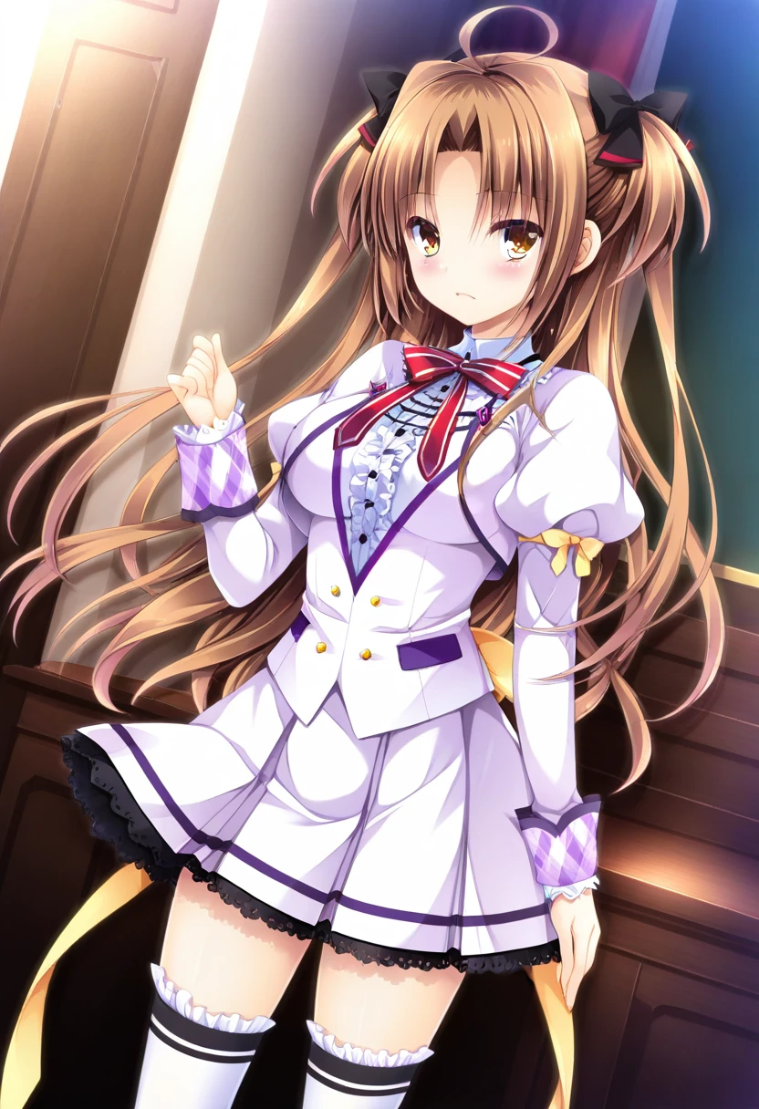 aa2, 1girl, chestnut brown hair, high twintails, black hair bows,