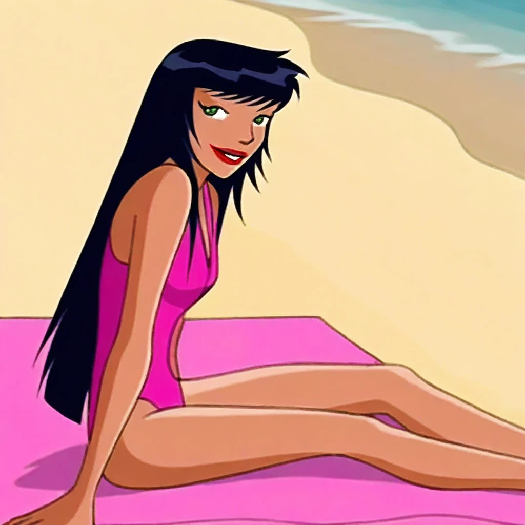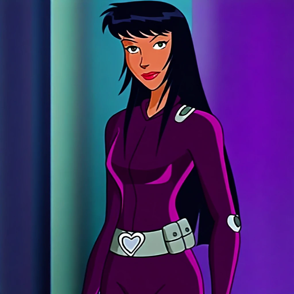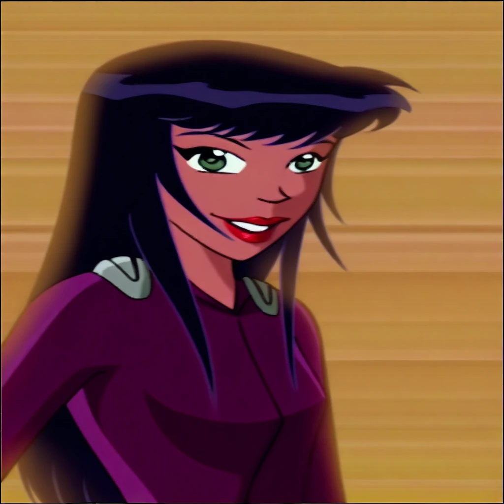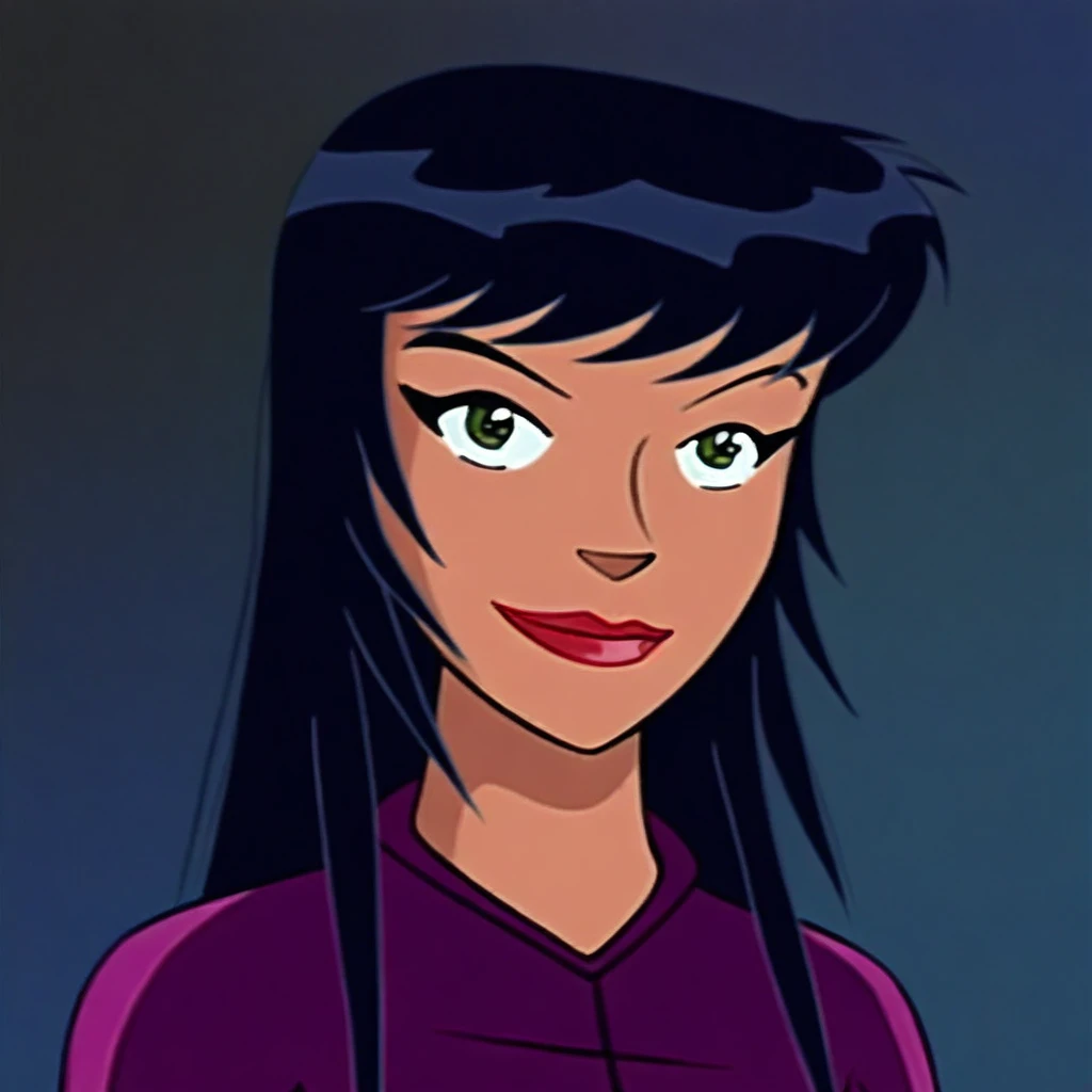 solo, 1girl, Alice_ts, green eyes, lightly tanned skin, black hair, long hair, straight fringe cut hair, lipstick,