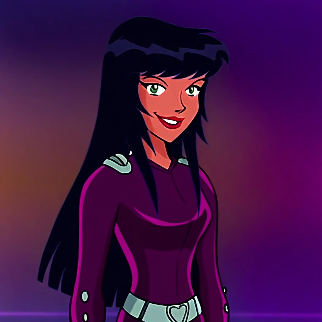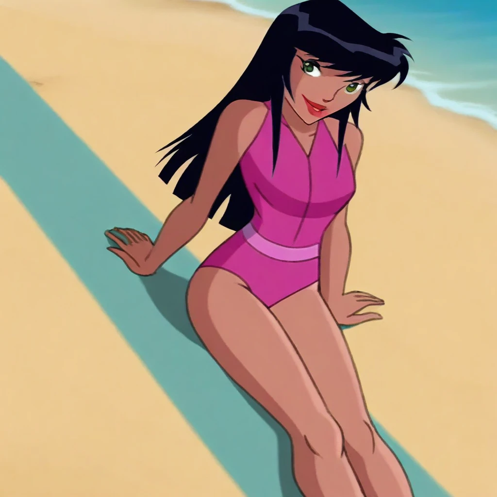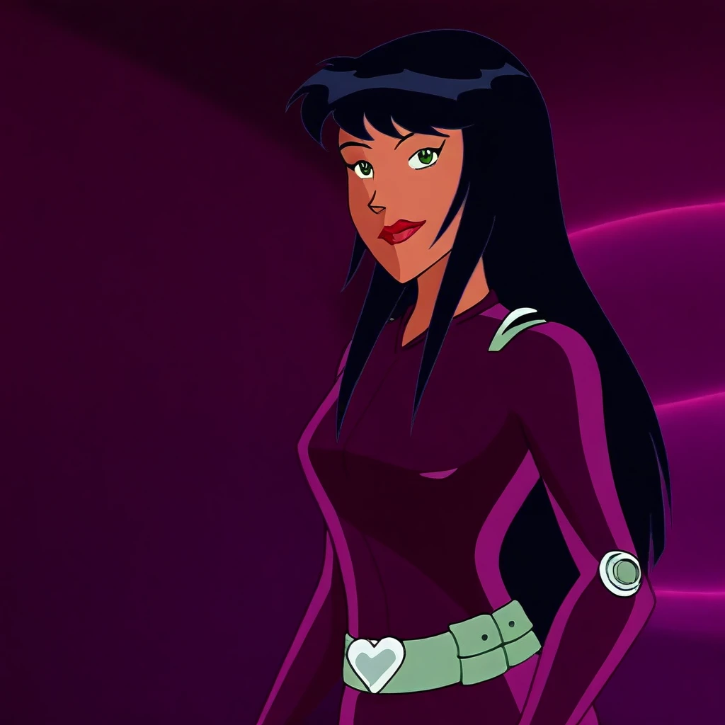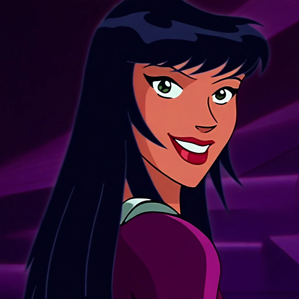solo, 1girl, Alice_ts, green eyes, lightly tanned skin, black hair, long hair, straight fringe cut hair, lipstick,
