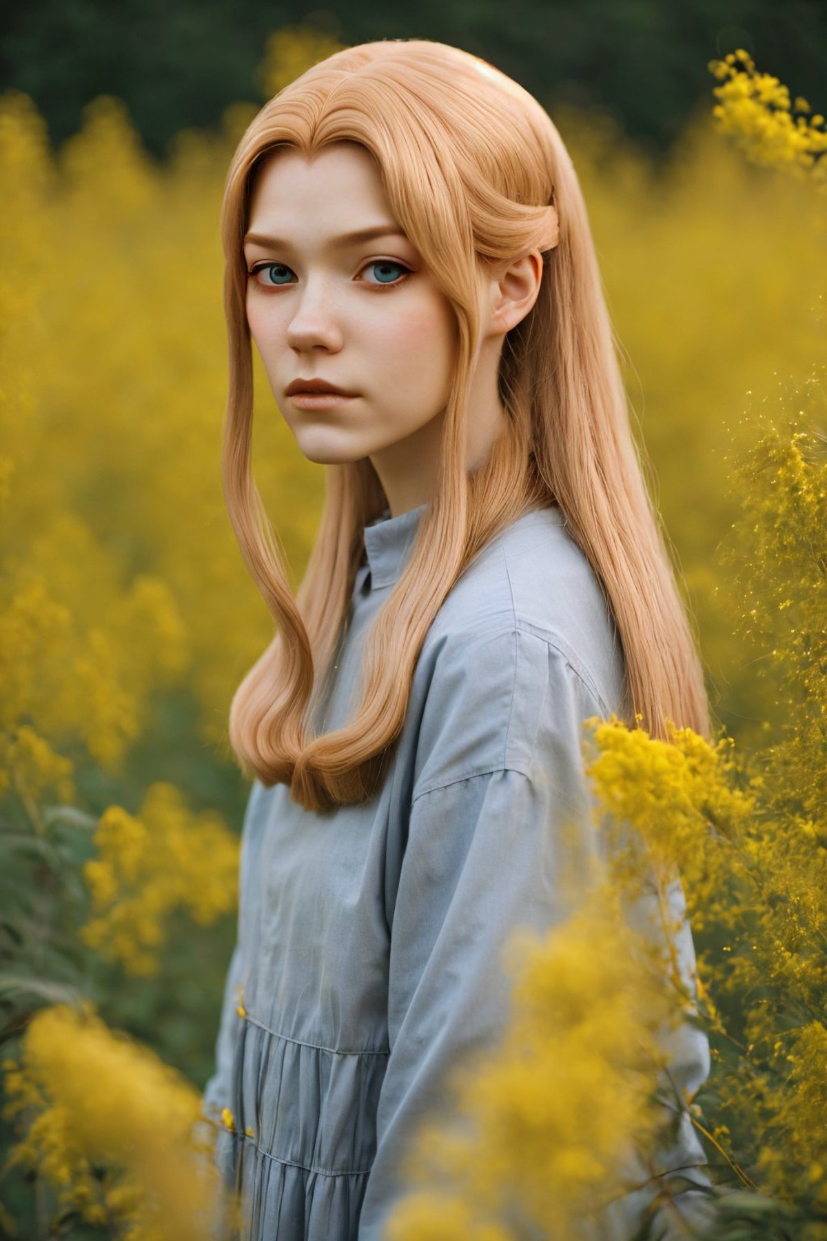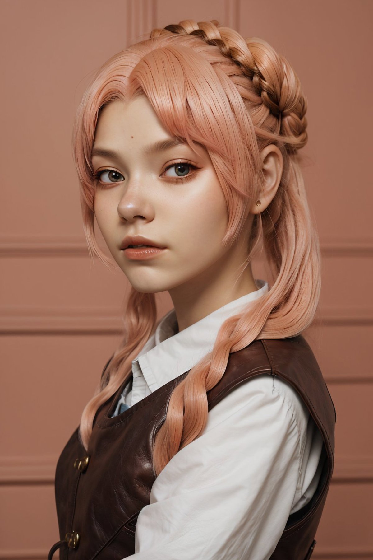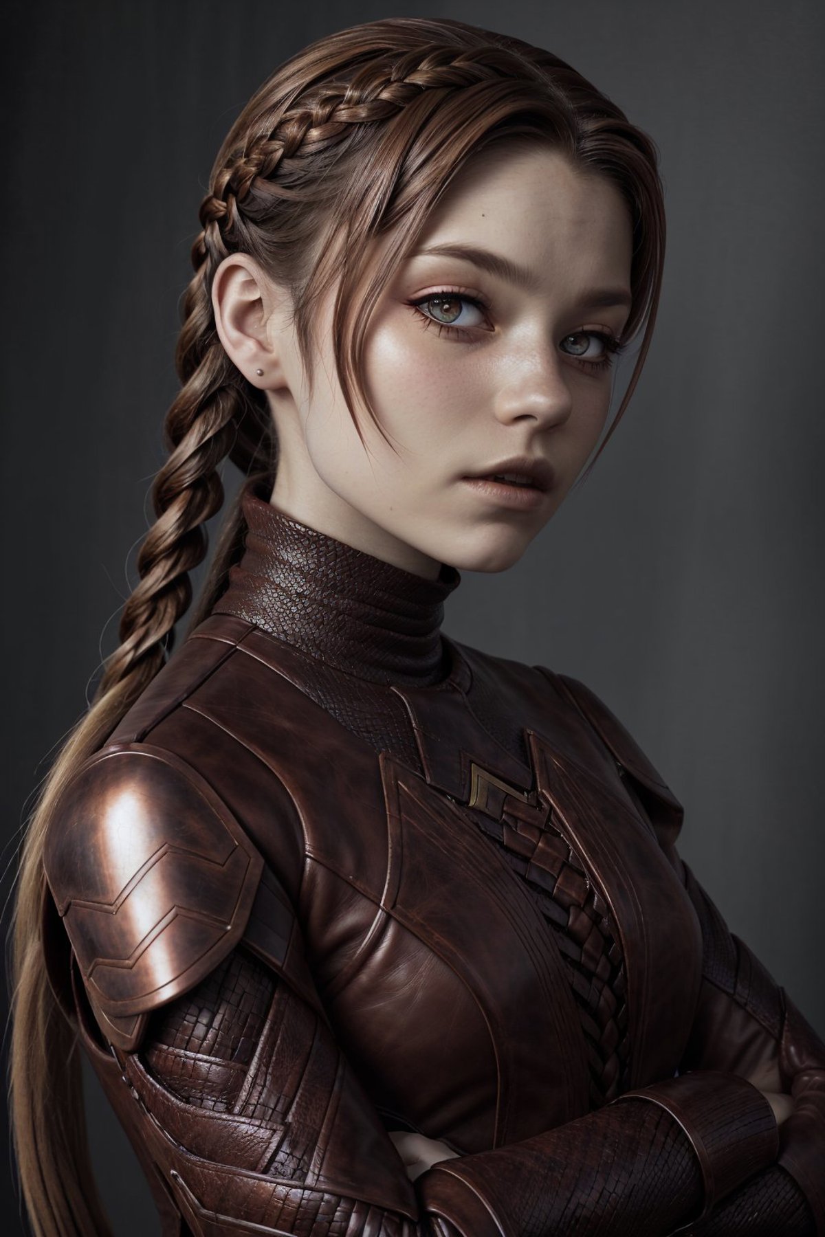 The training data for this model was comprised of a bunch of cosplay photos, so she was dressed in every which way, with wild variations. Her face was painted on, she was wearing all kinds of different wigs, she had elf ears on, etc.