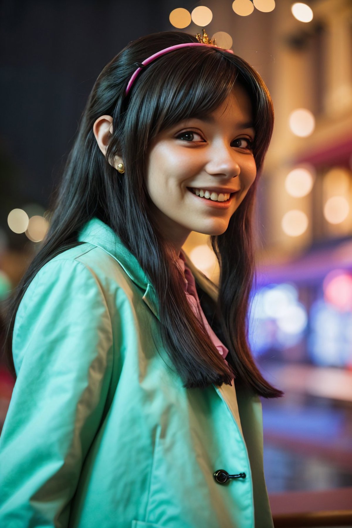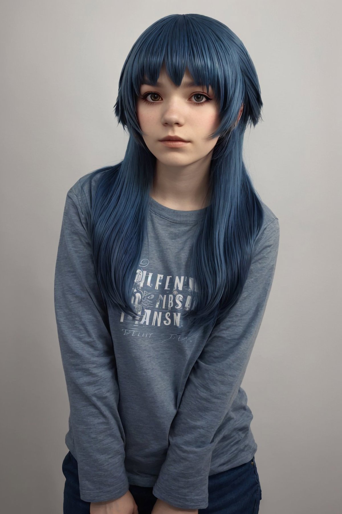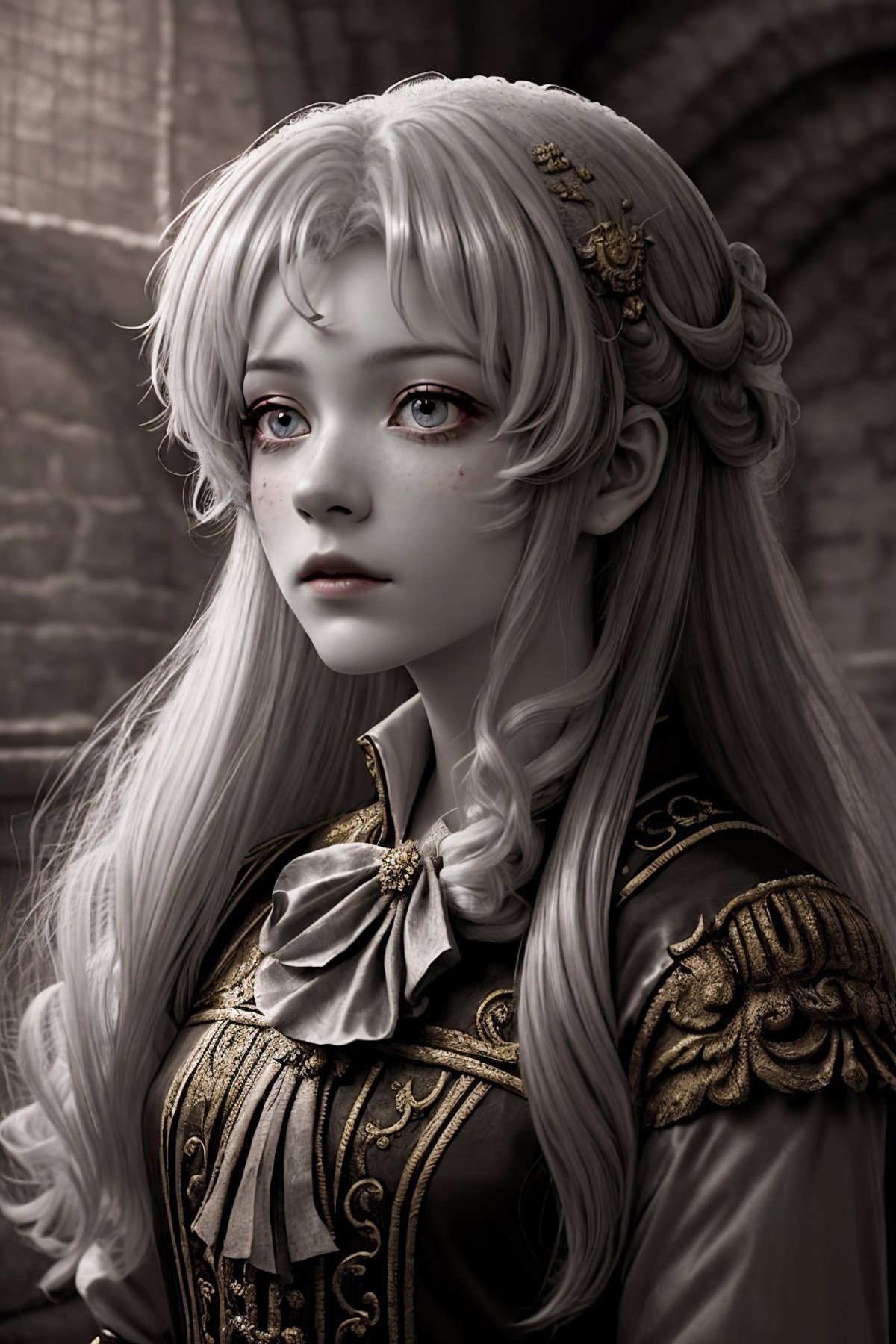 The training data for this model was comprised of a bunch of cosplay photos, so she was dressed in every which way, with wild variations. Her face was painted on, she was wearing all kinds of different wigs, she had elf ears on, etc.