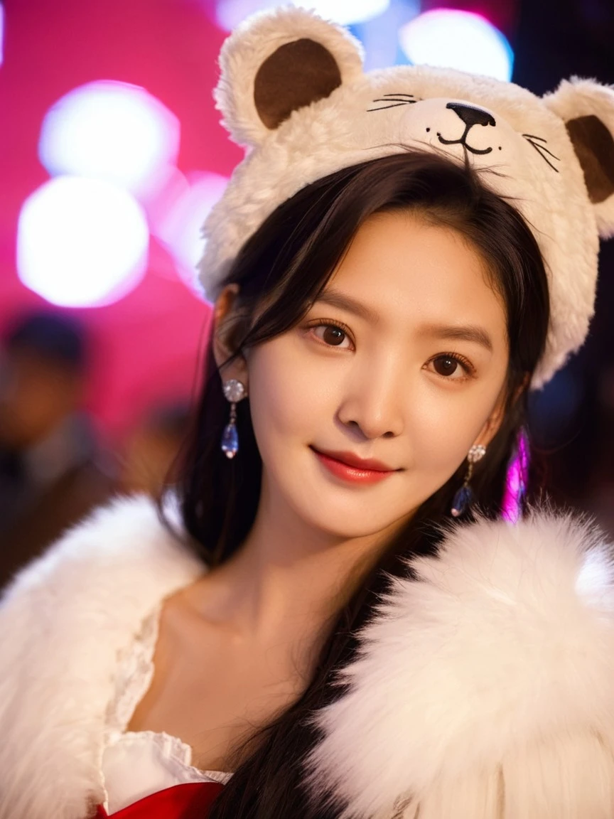 (Optional) Turn on ADetailer, choose face_yolov8n.pt, then use: yangmi woman,<lora:actress_ej_JuggXL_3:0.8>,jewelry,earrings,. Note the nameof the actress varies from model to model