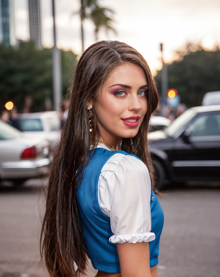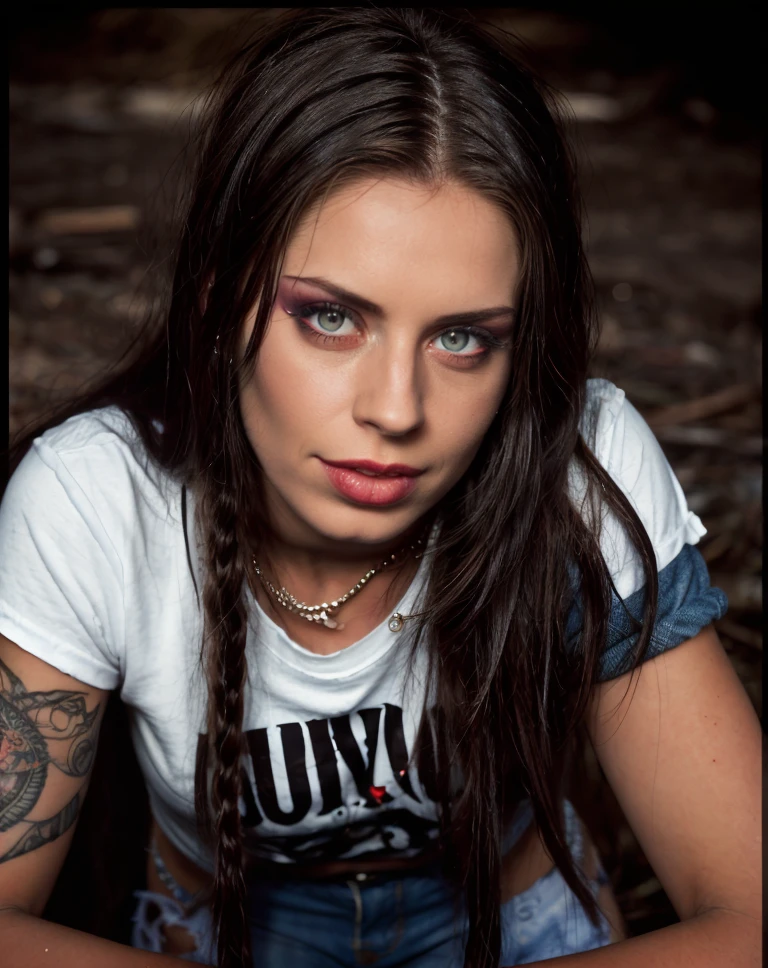 cinematic photo realistic, <lora:quiron_JoyKiss_v1_Lora:0.87> JoyKissQuiron woman, a woman, realistic,intricate detailed, flash photography, realistic, amazing photo of a pretty woman wearing warrior clothes, , at blurred background crowded nightclub party background, . 35mm photograph, film, bokeh, professional, 4k, highly detailed