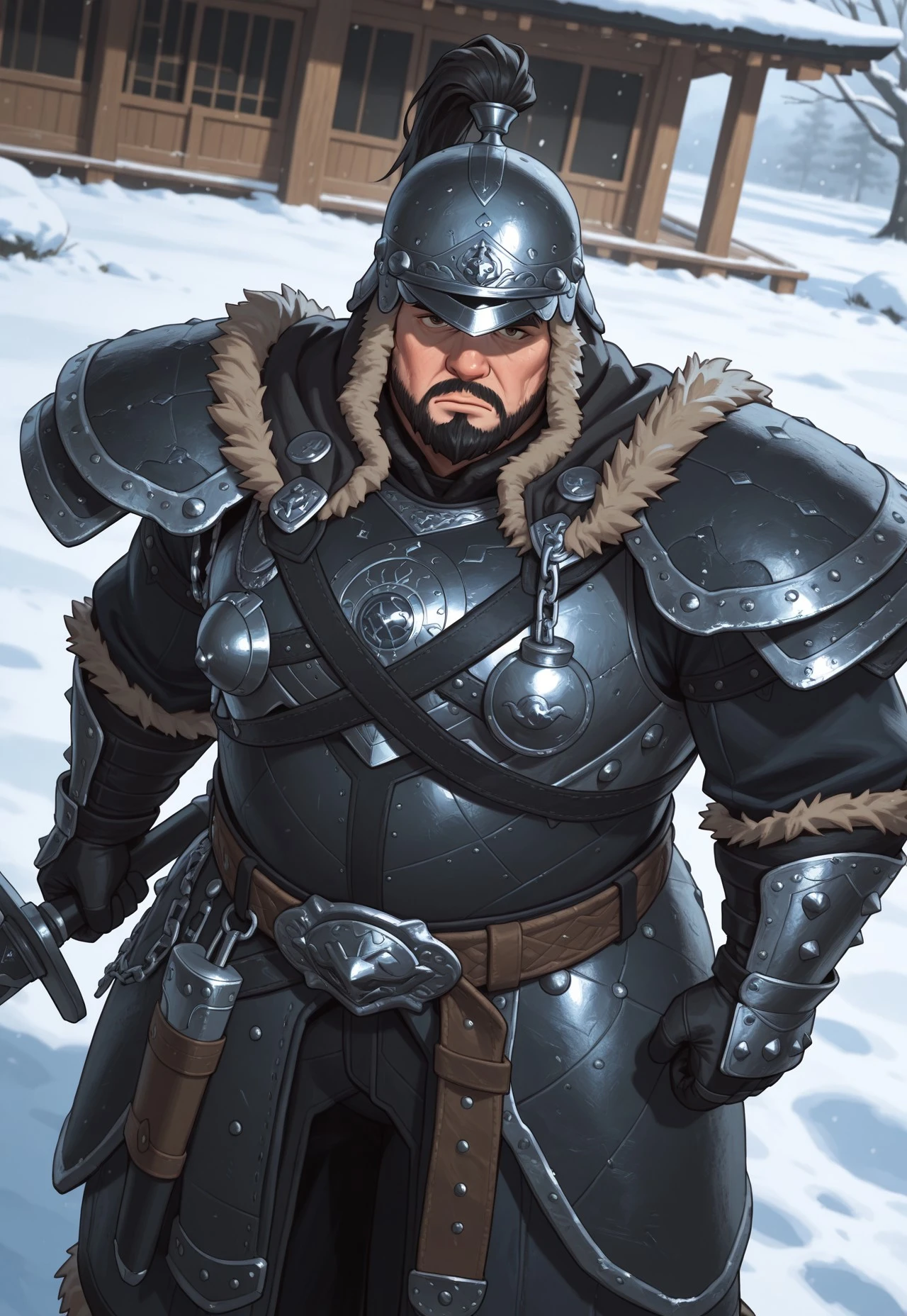 shoulder armor, armor,full armor,Tassets,Gauntlet,breastplate,helmet,Neck flap,Mongolian belt,black gloves