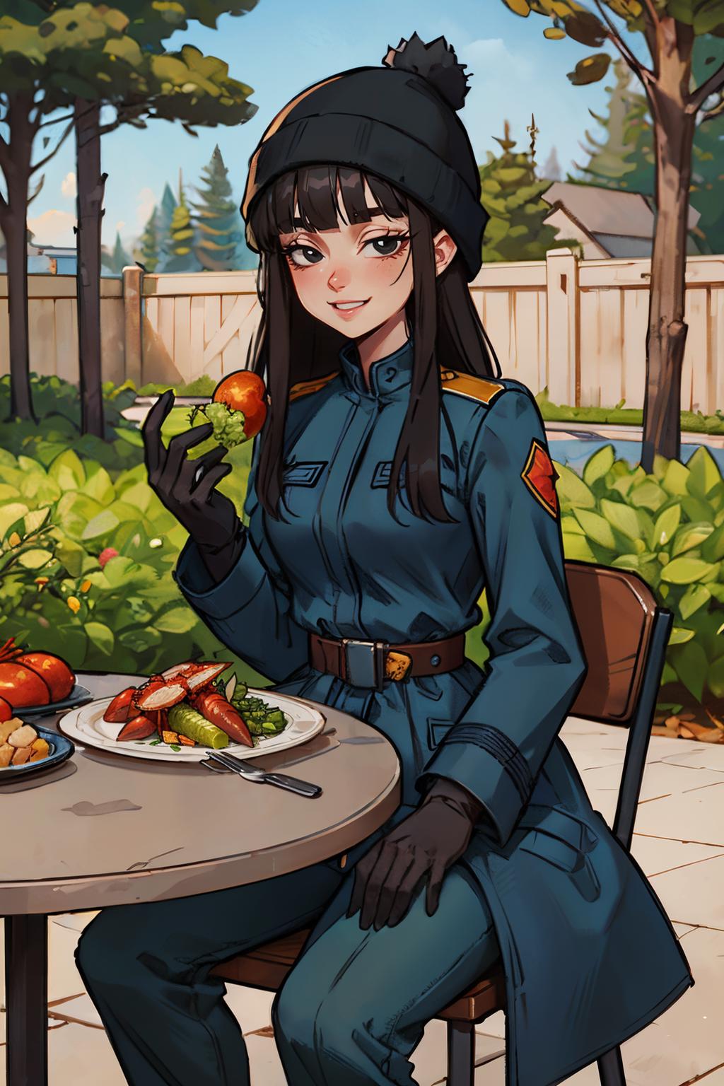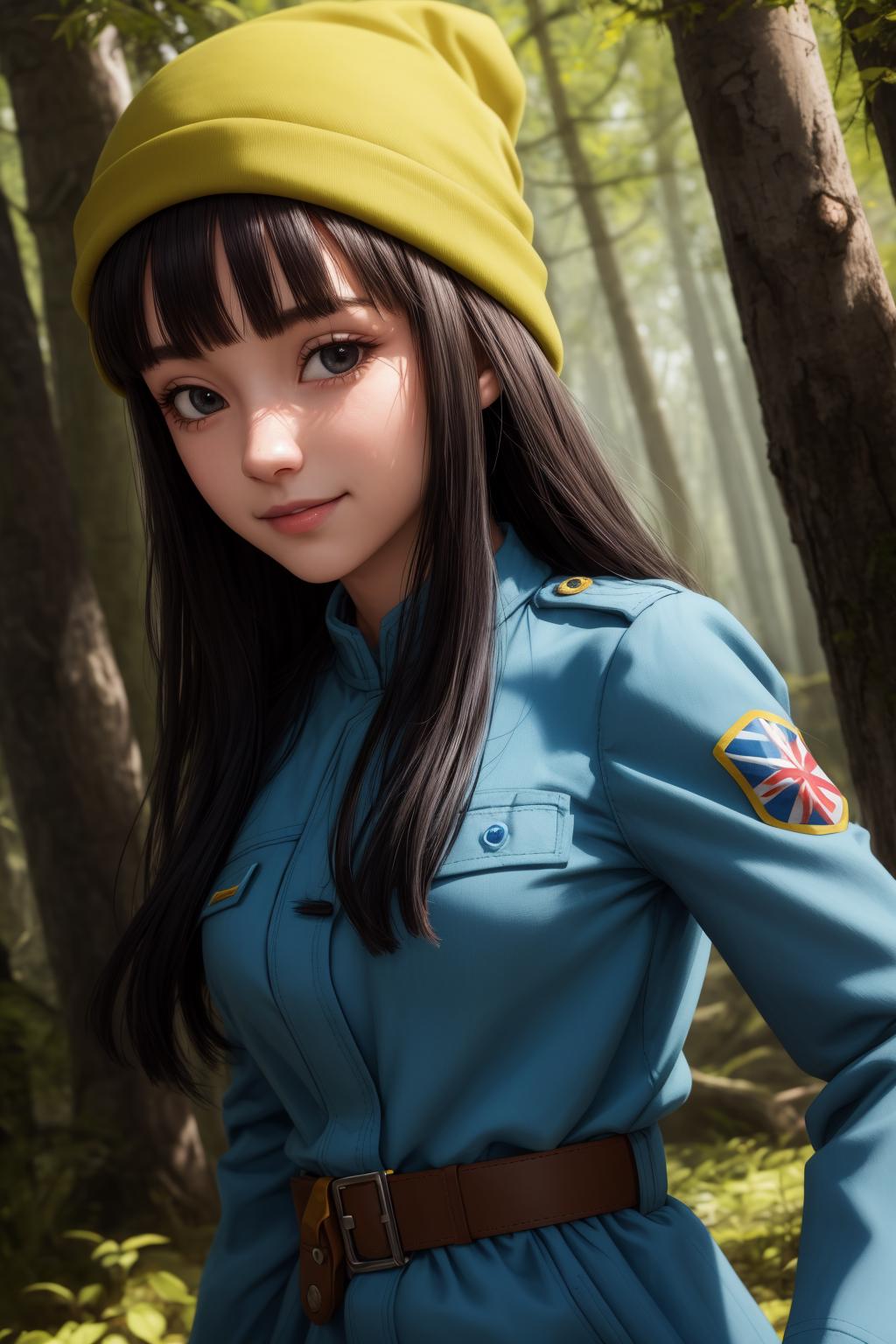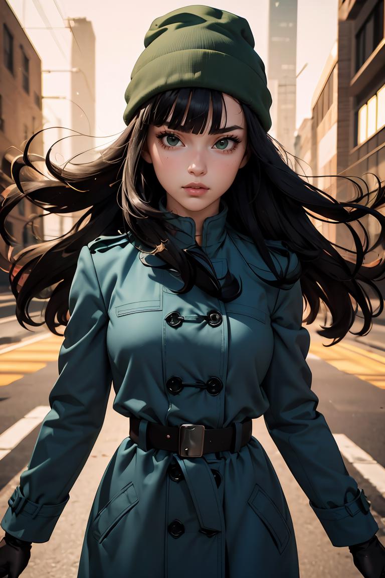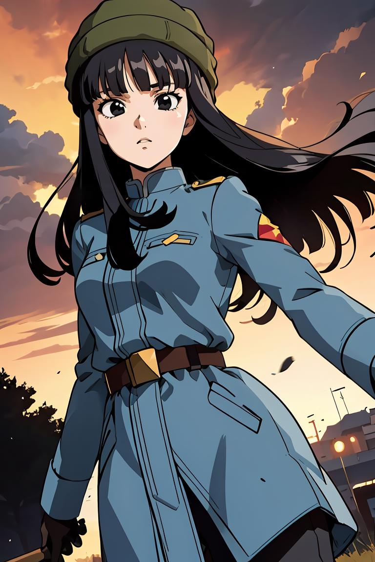 black gloves, belt, uniform, long sleeves, military uniform, blue coat, trench coat, pants,