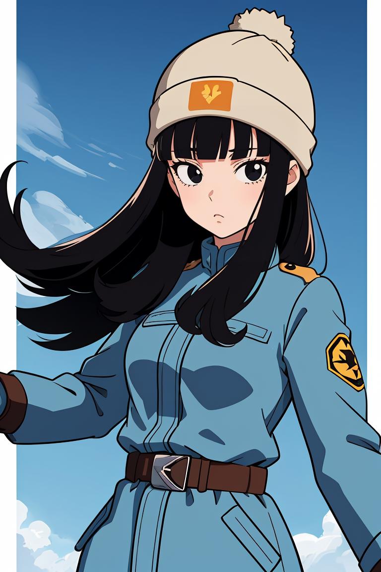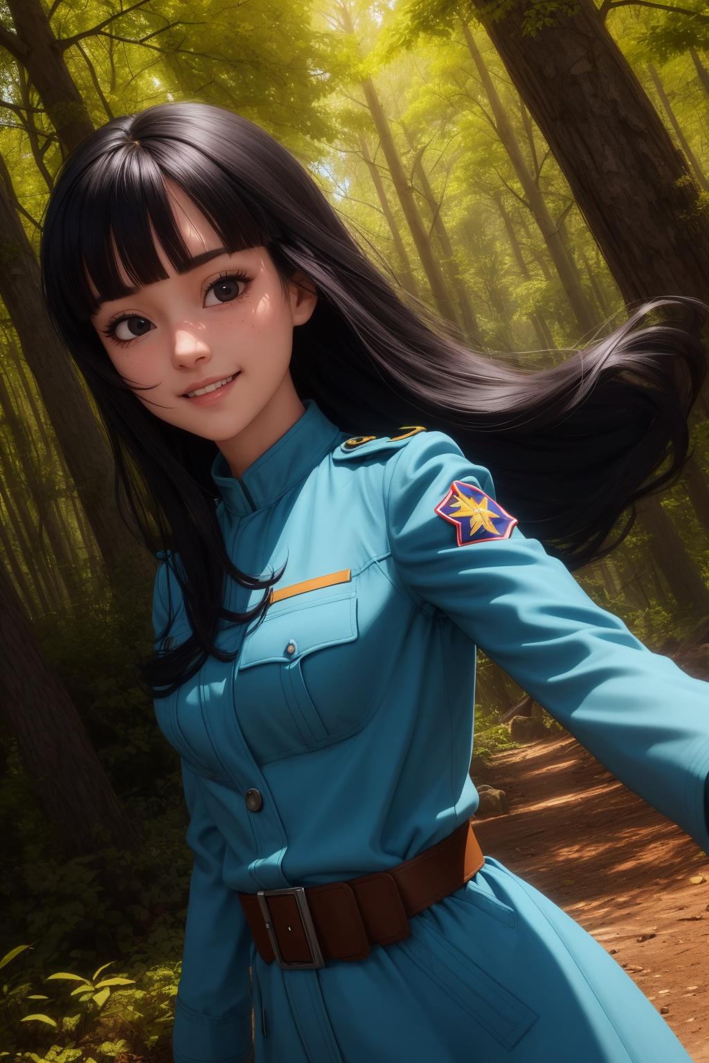 mai, 1girl, solo, black eyes, black hair, long hair, blunt bangs, straight hair, floating hair,