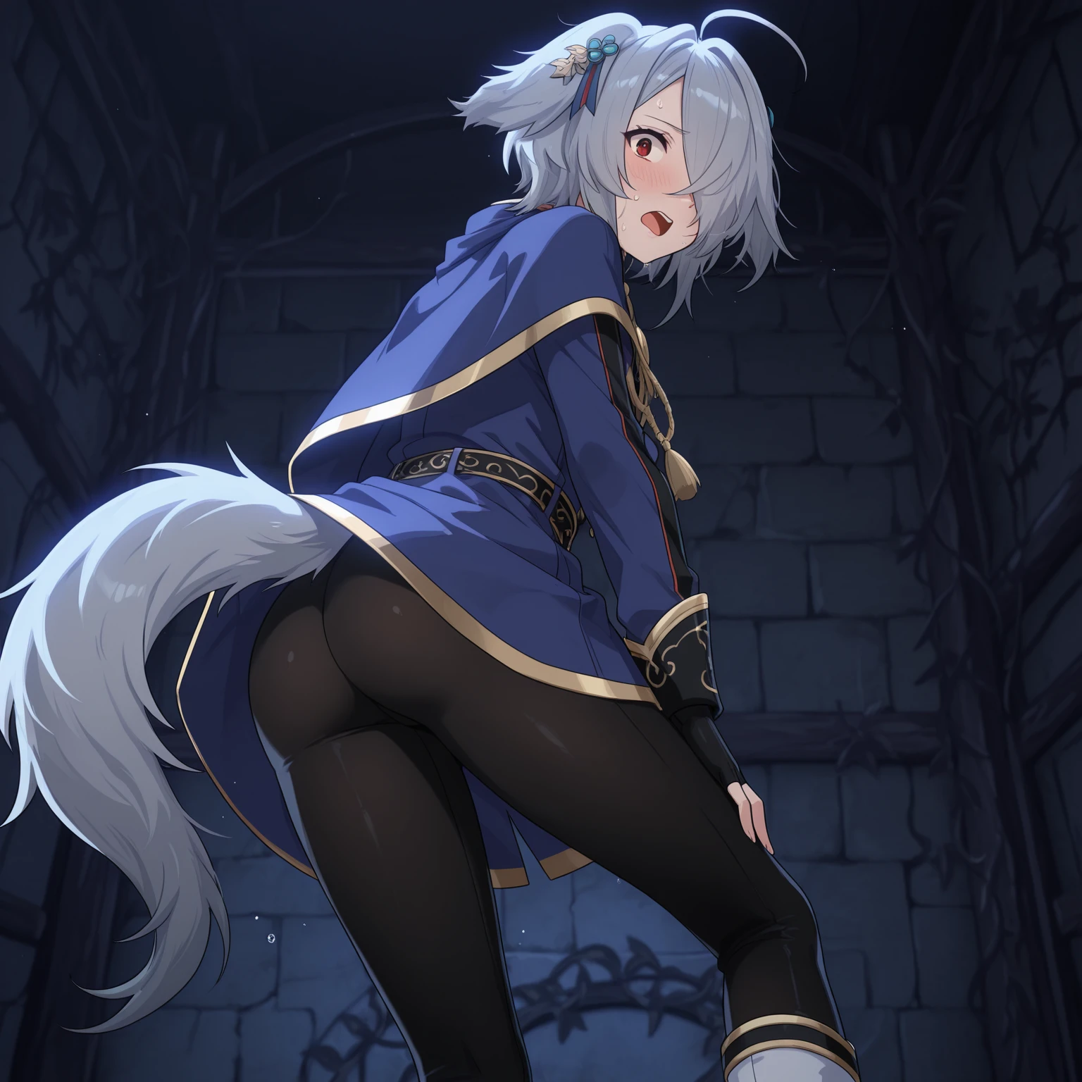 animal ears, animal tail, wolf tail, grey tail,