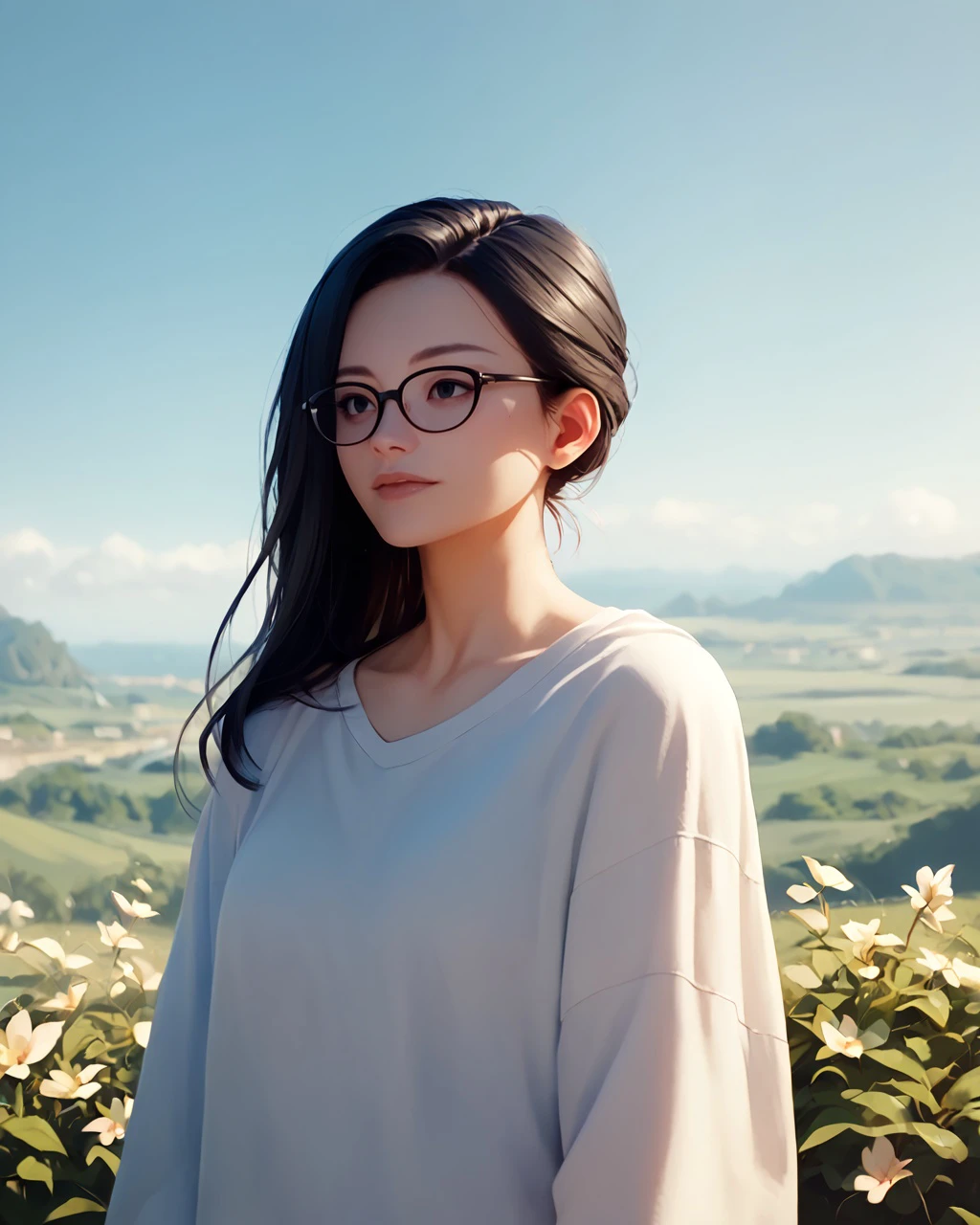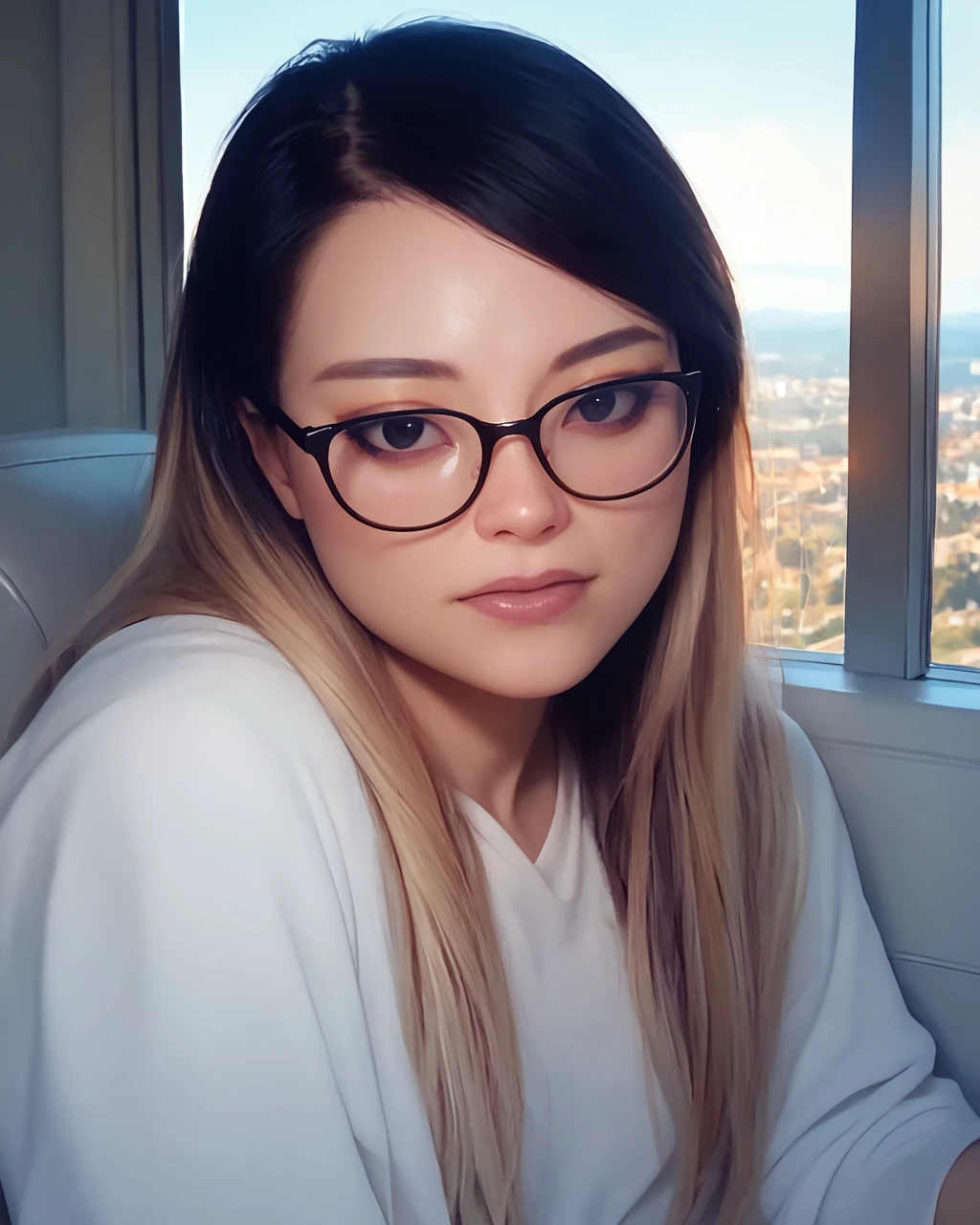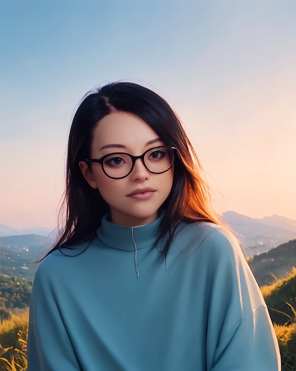 Use prompts 'black hair, black eyes, glasses' for better results.