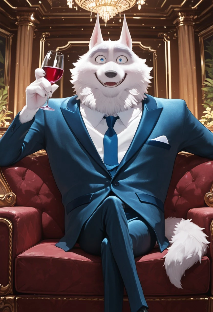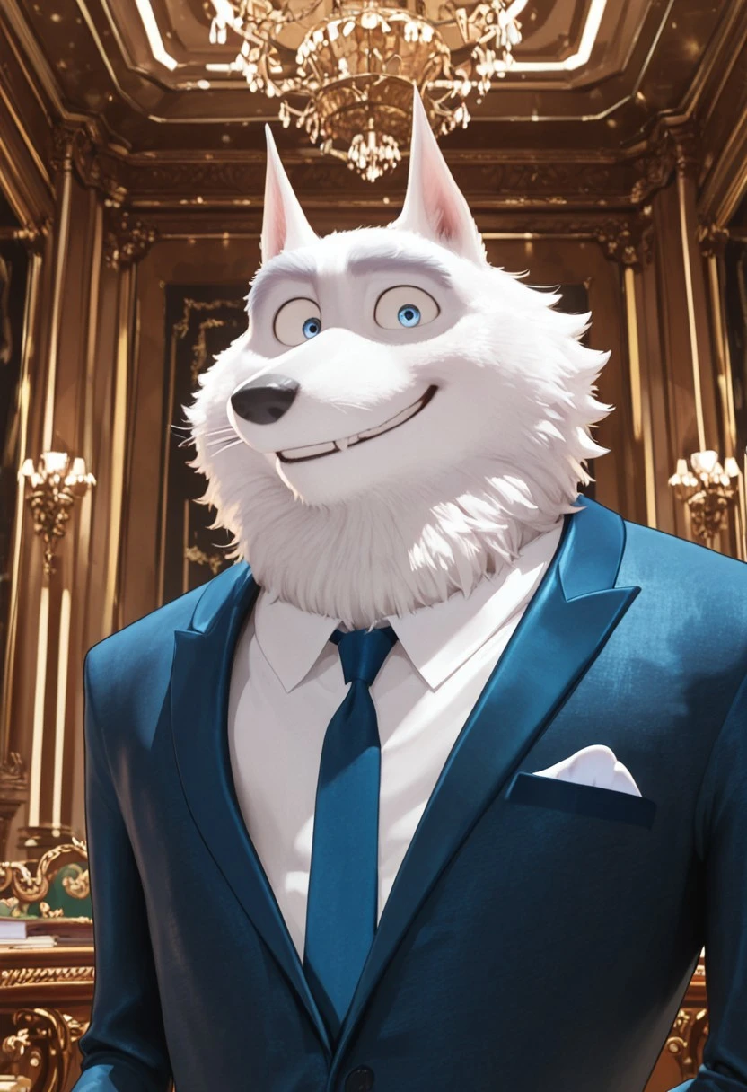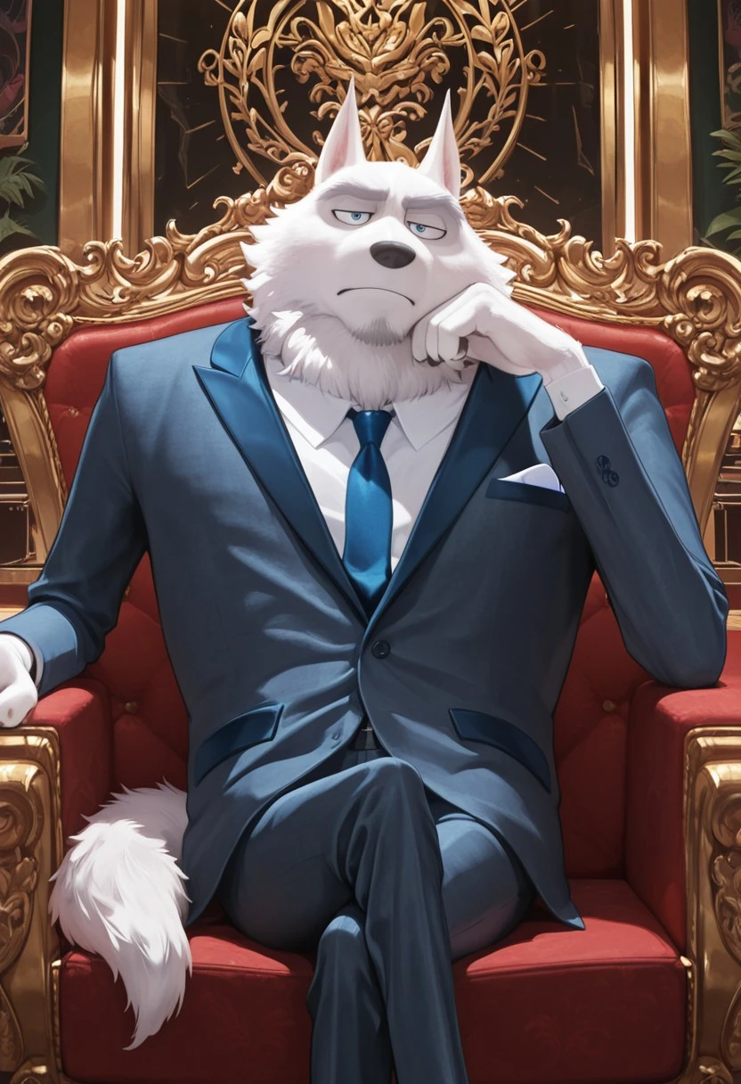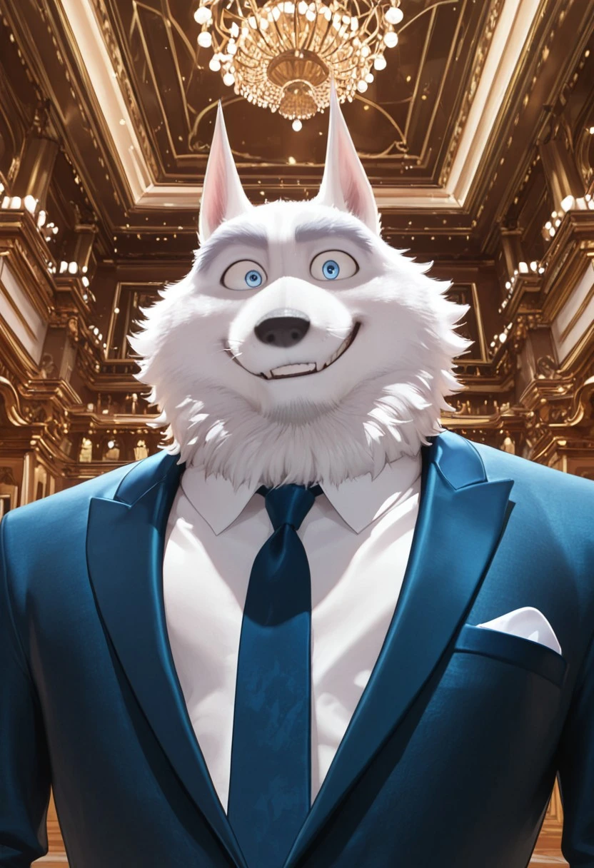 JimmyCrystal, 1boy, mature male, male, athletic build, anthro, wolf, blue eyes, broad shoulders, white fur, grey eyebrows, animal ears