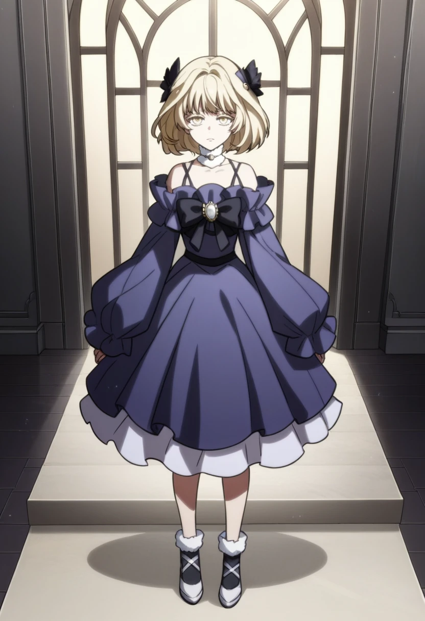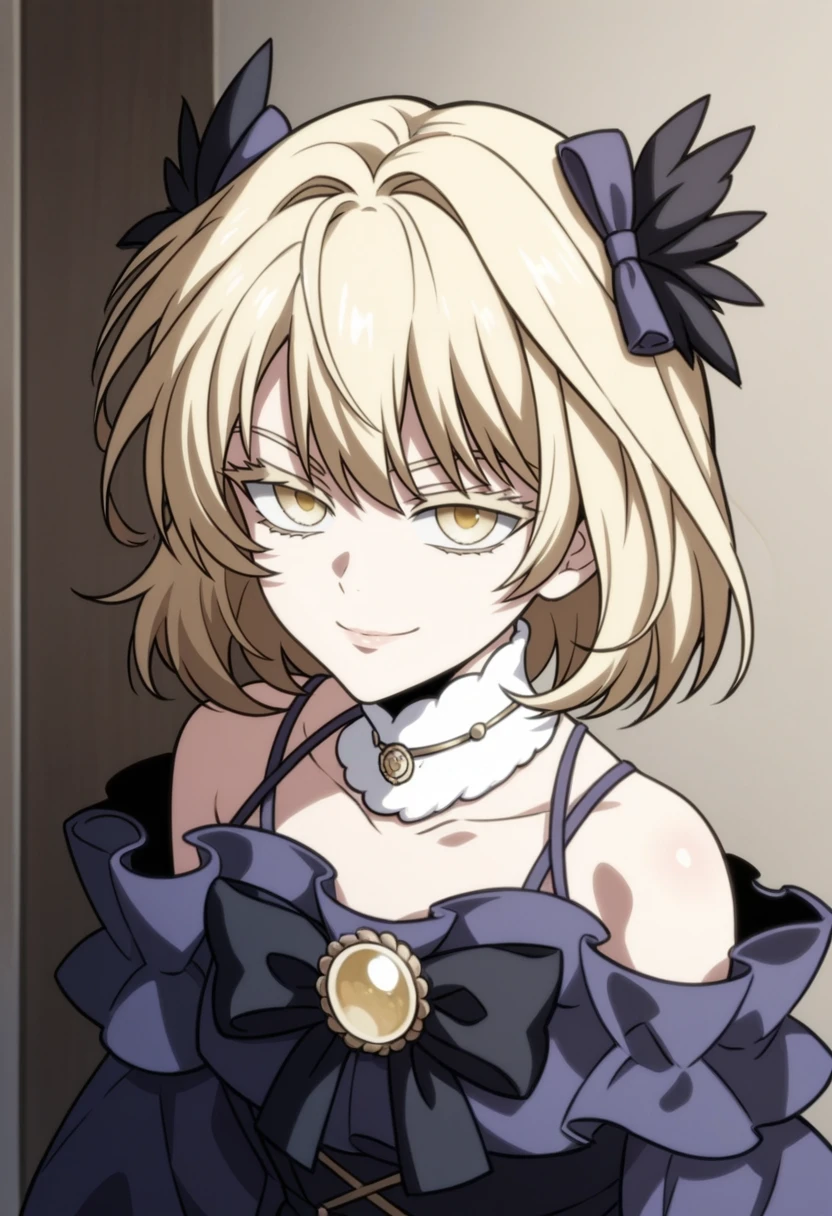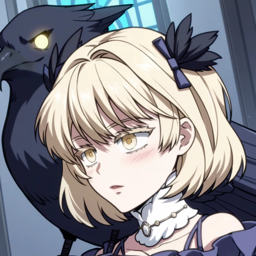 RY, 1girl, yellow eyes, blonde hair, hair ornament,