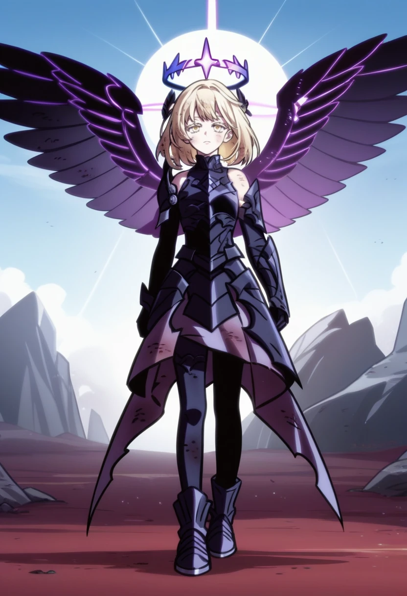 halo, wings, dirty, bruise, broken armor, armor dress, pantyhose,