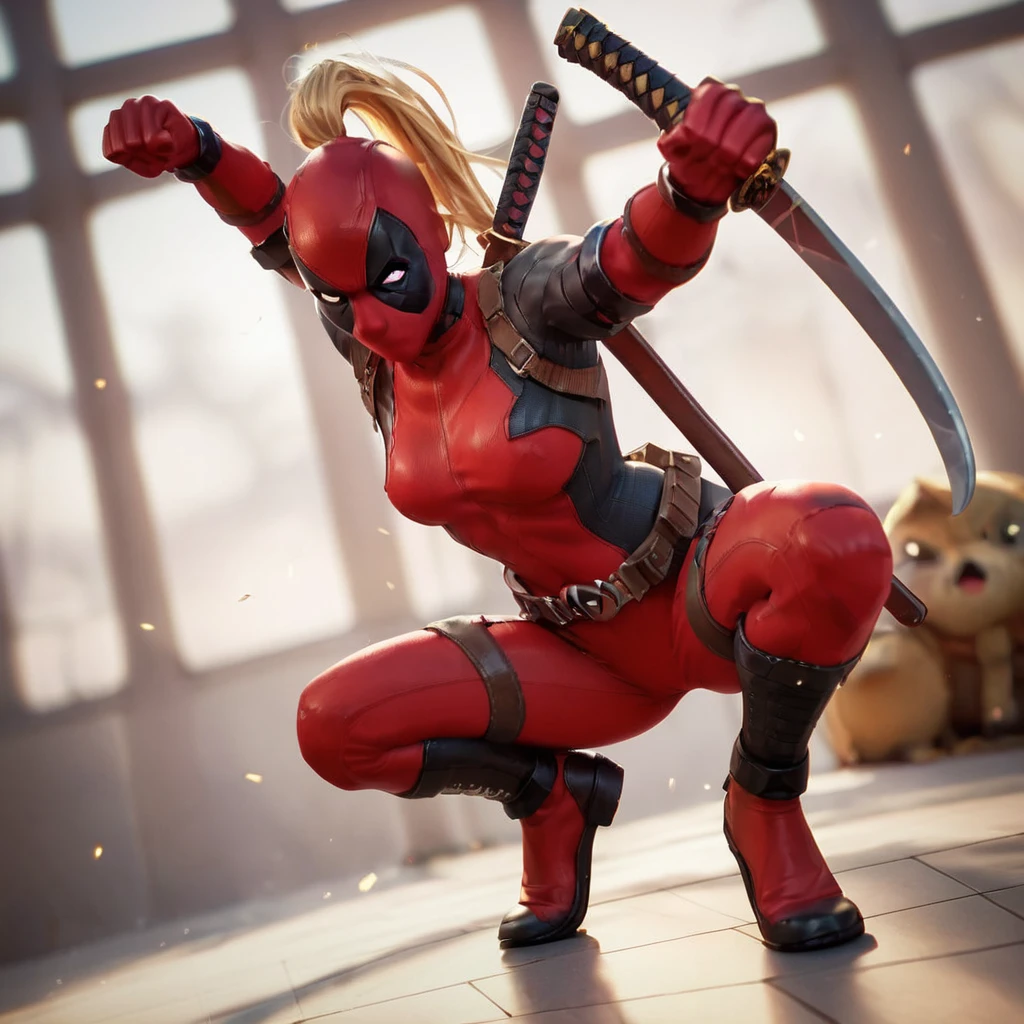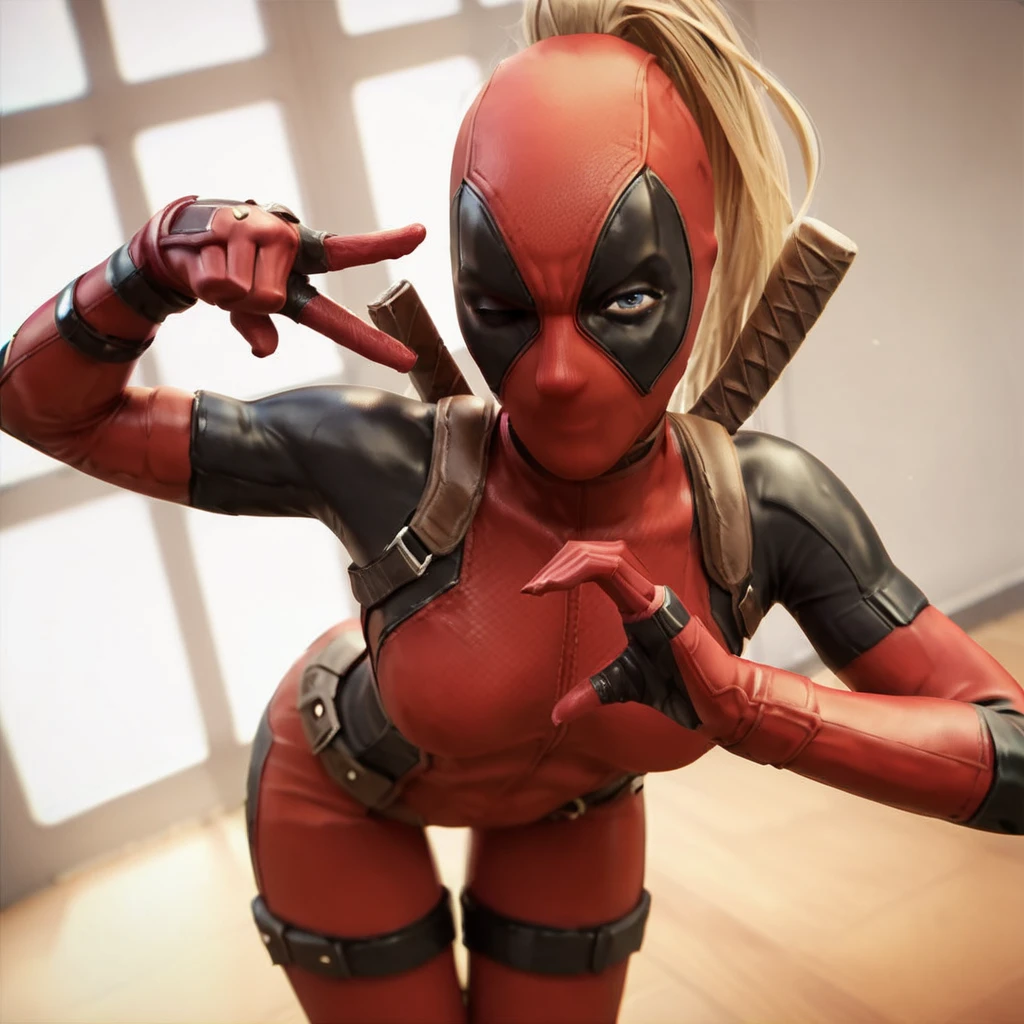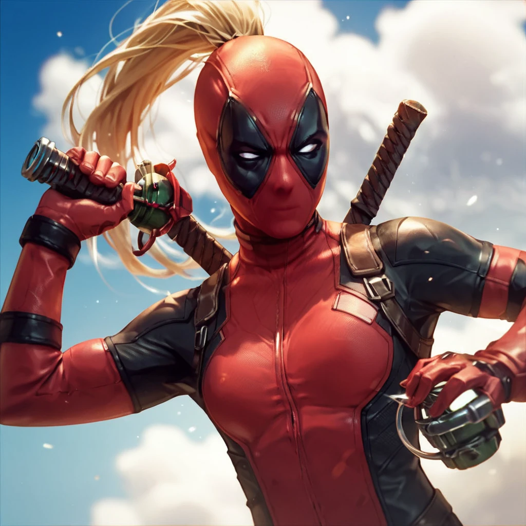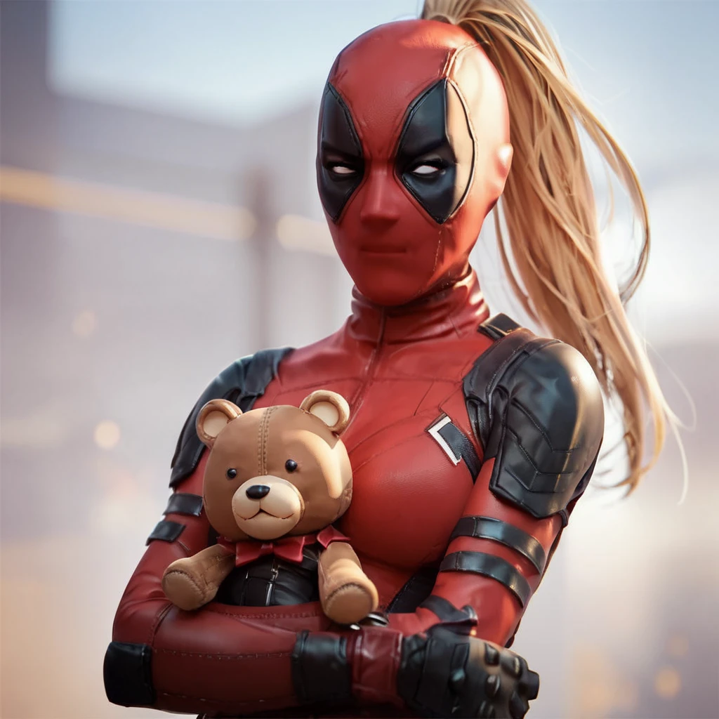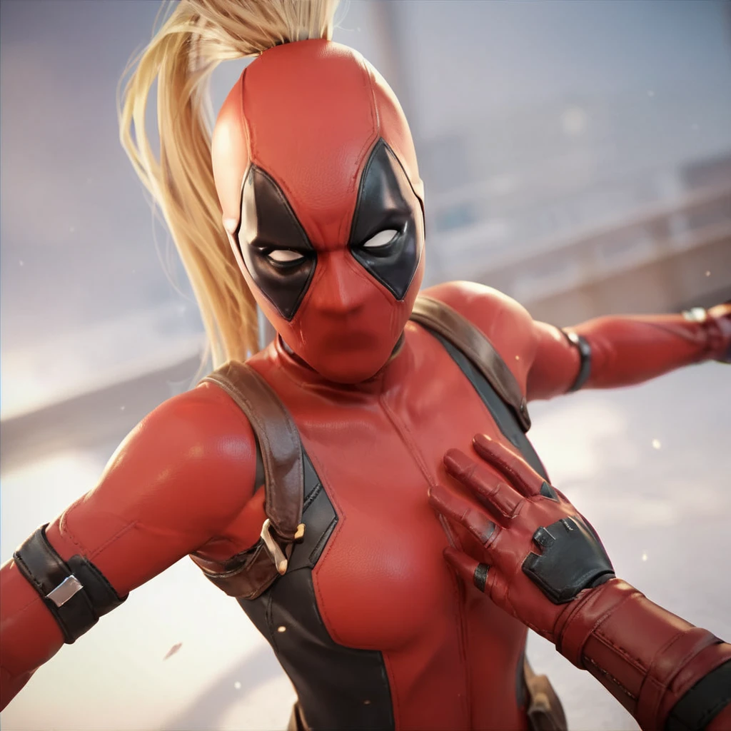 In a twisted universe, Lady Deadpool, also known as Wanda Wilson, roamed the streets of New York with chaos in her wake. Armed with dual katanas and a dark sense of humor, she battled both villains and her inner demons. Her unique ability to break the fourth wall made her an unpredictable force. One fateful night, she encountered a mirror portal linking her world with others, promising endless adventures. With a smirk beneath her mask, Lady Deadpool stepped through, ready to leave her mark across the multiverse.