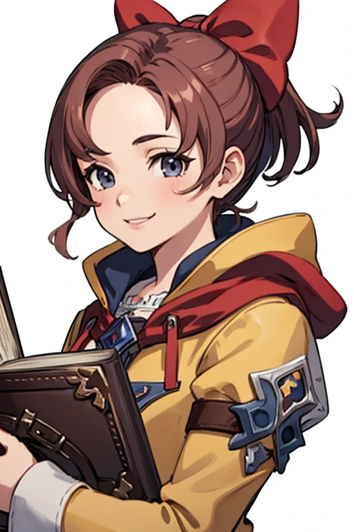 Pos - brown hair, ponytail, pink hair ribbon