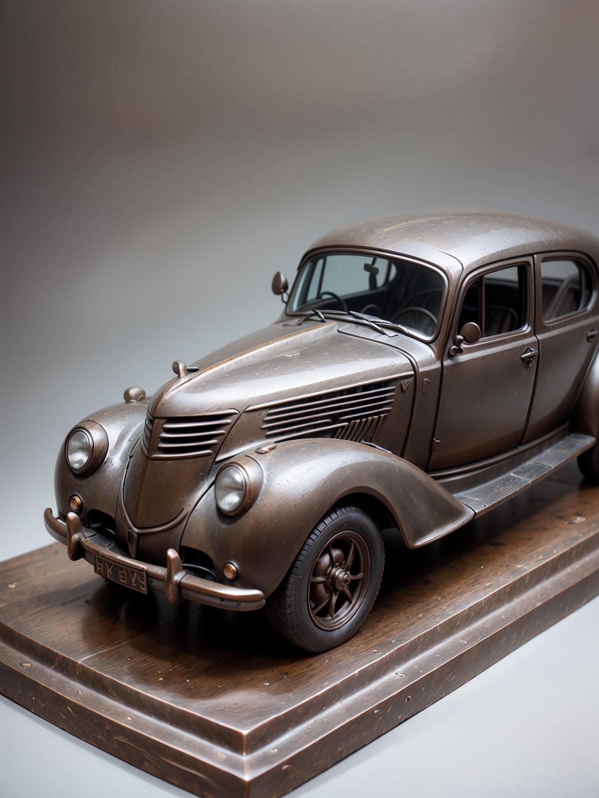 It mostly creates a statue with a gray background like a studio photoshoot. But sometimes it also turns the colors of the objects to bronze in their own environment (like the tank and the coffee machine in the examples).