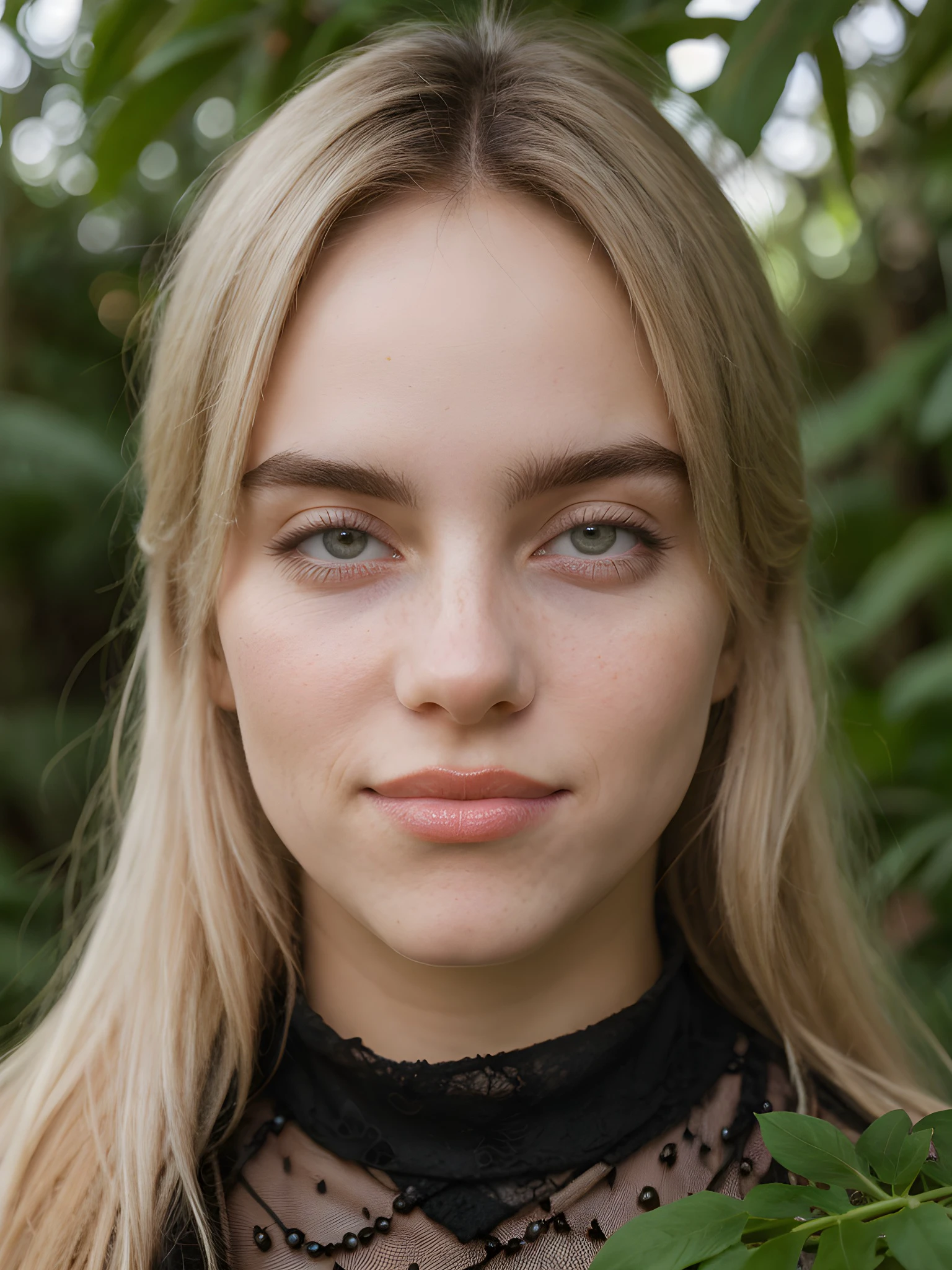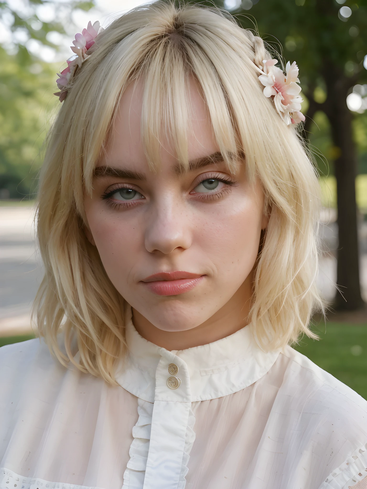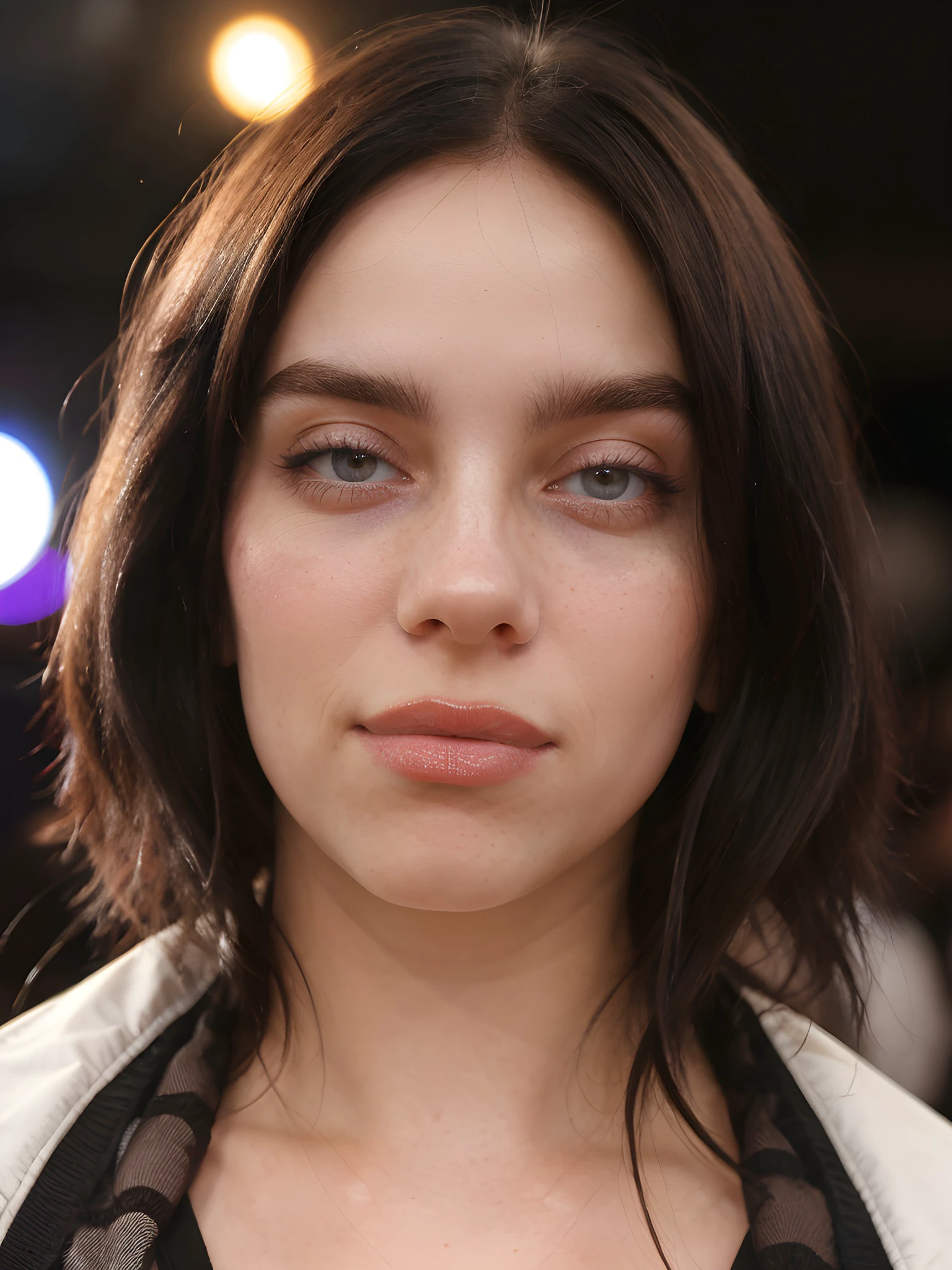LoRA of singer Billie Eilish. Trained with 2365 steps on 357 images (768x768).