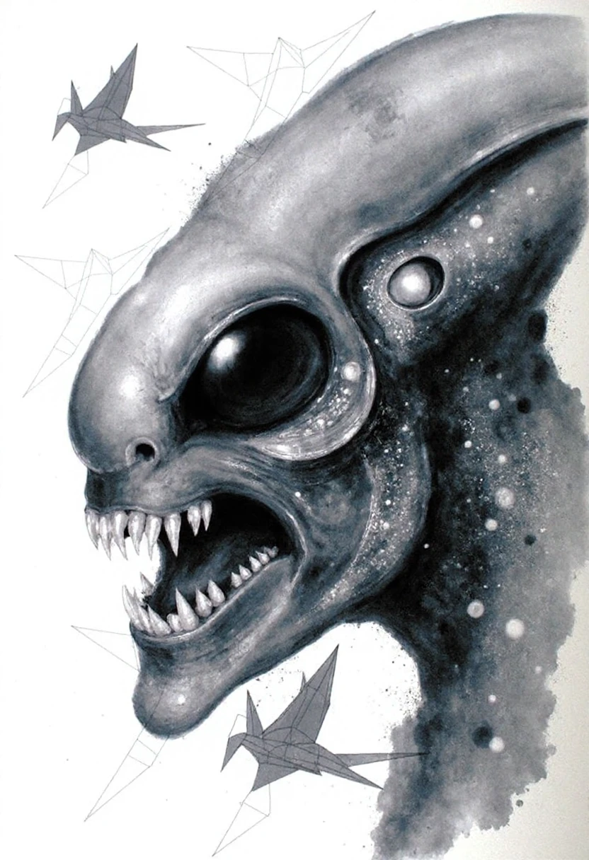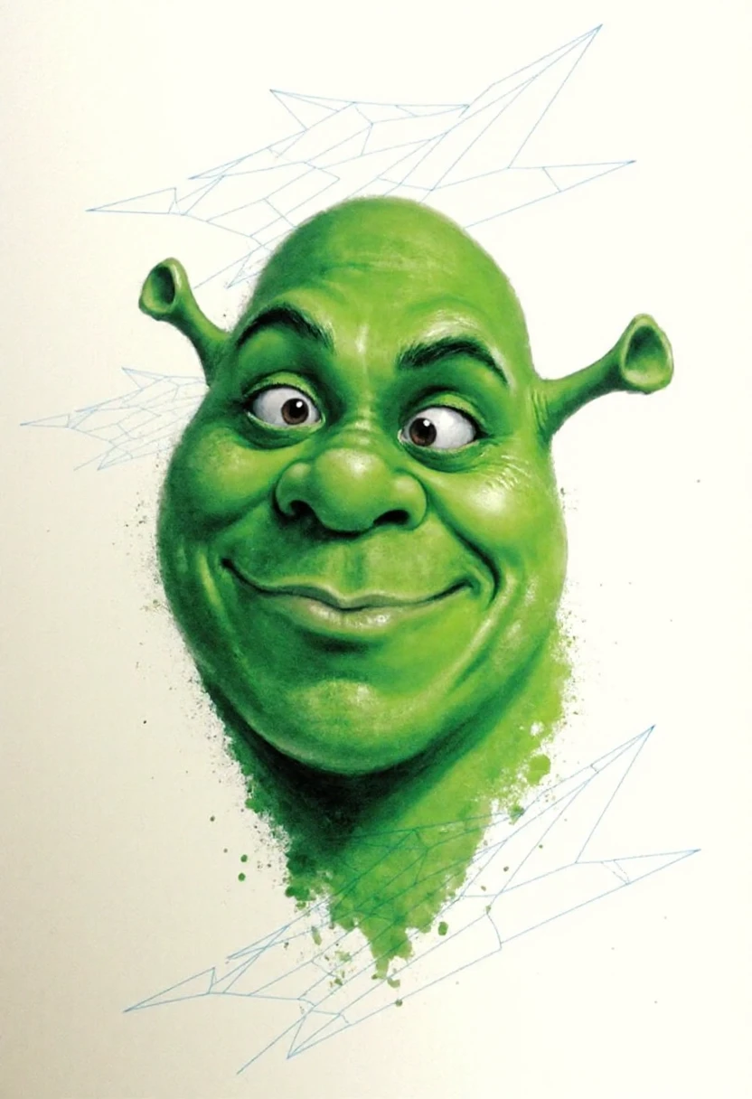 Digital drawing that combines elements of surrealism and modern art. The central figure is a stylized, three-dimensional representation of (SUBJECT), with striking details rendered in various shades of (COLORS)