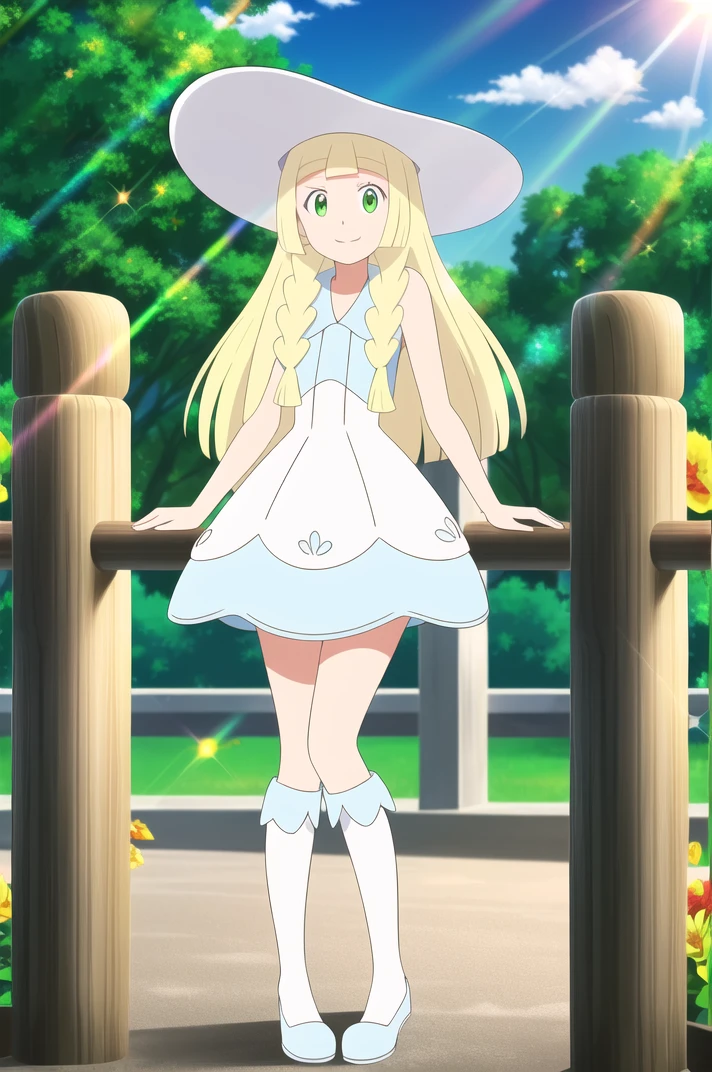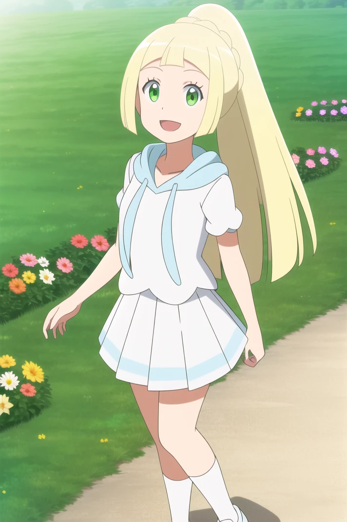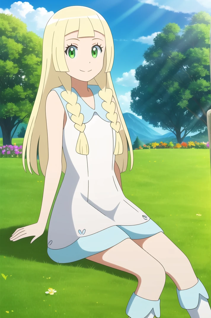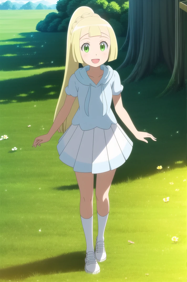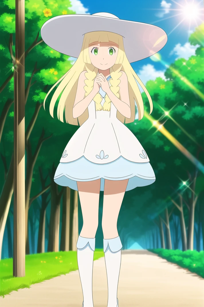 <lora:PokemonLillie-v1-03:0.7>, ChopioLillie, blonde hair, long hair, blunt bangs, green eyes, (looking at viewer:1.3),