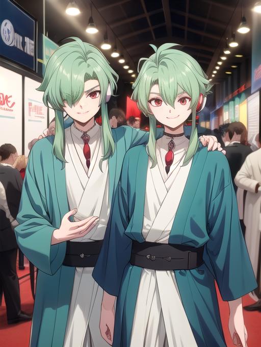 A CivitAI request! Jinki turned out alright, but due to his long hair and clothing choice, some checkpoint models will try to make him a girl so it's best to put 1girl and the such into the negative to prevent any breast growth on him. His data set was much smaller than Masanori due to fewer scenes overall.