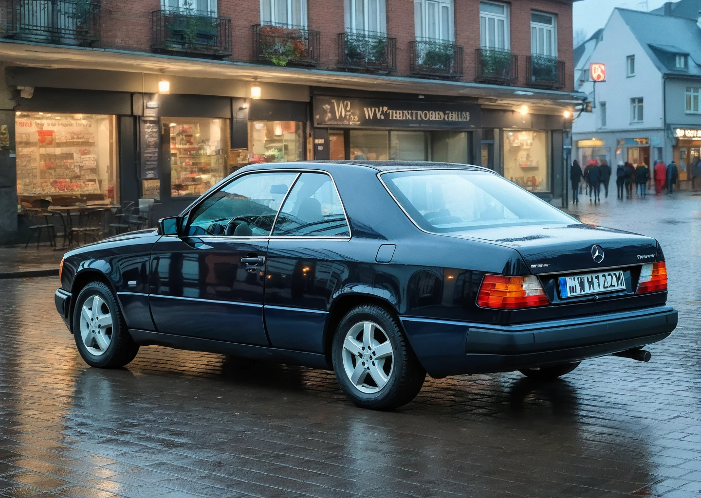 Another W124 Coupe '89 LoRA. Trained on 12 photos of my car using DreamBooth method, this time with a GPU rented online instead of my laptop RTX2060. Seems better than my previous LoRA made for this purpose.
