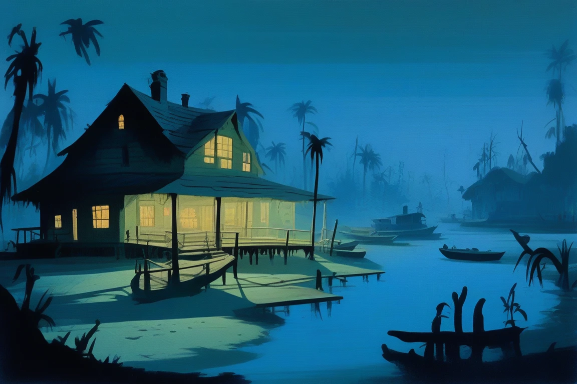 Scooby-Doo is an American media franchise owned by Warner Bros. Entertainment and created in 1969 by writers Joe Ruby and Ken Spears through their animated series, Scooby-Doo, Where Are You!, for Hanna-Barbera. Trained on 85 images of 1970s television animated backgrounds.