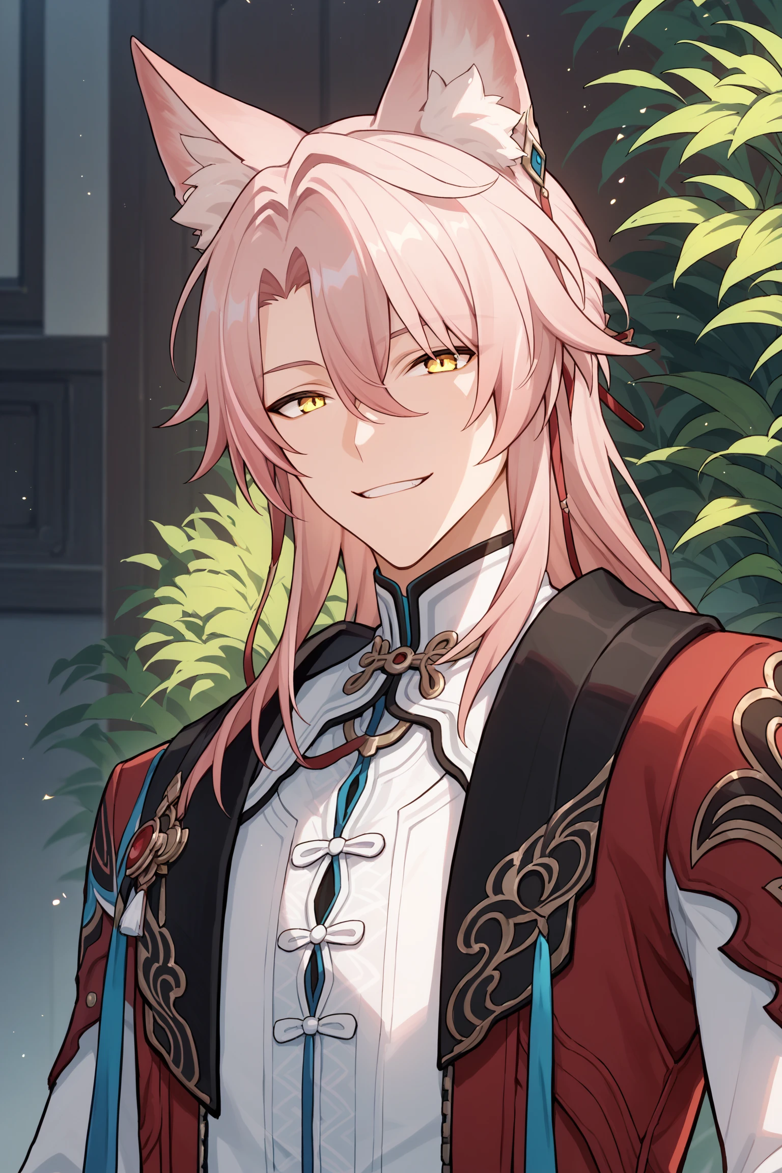jiaoqiu, pink hair, yellow eyes, animal ears