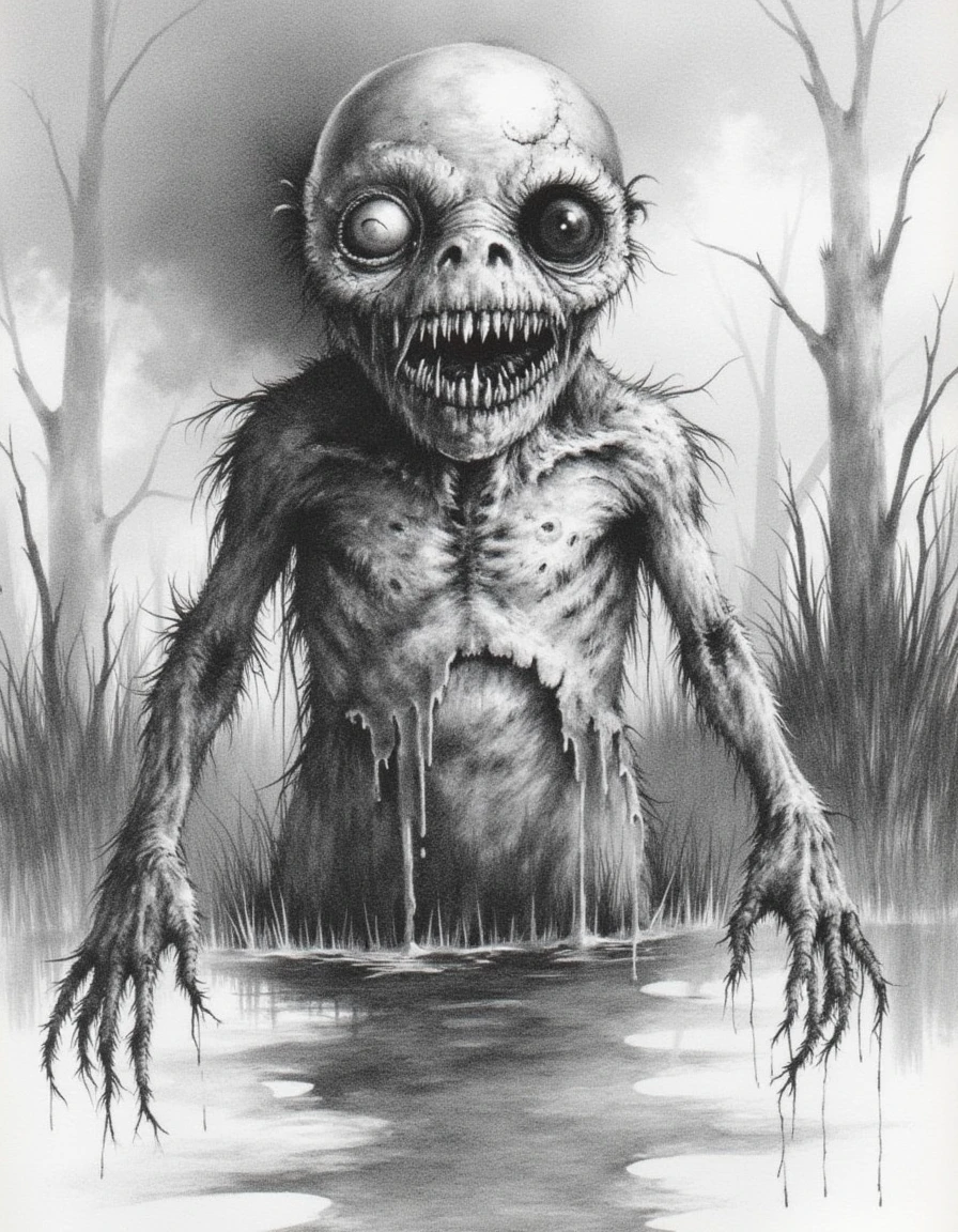 For all those with fond childhood memories of terror, I bring you the art style of Stephen Gammell, illustrator of the iconic Scary Stories to Tell in the Dark series of children's books. Man, I miss Scholastic book fairs.