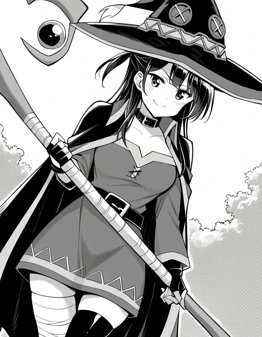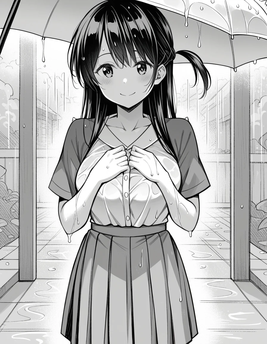 chizuru inchinose, long hair, bangs, monochrome, greyscale, one side up, large breasts,