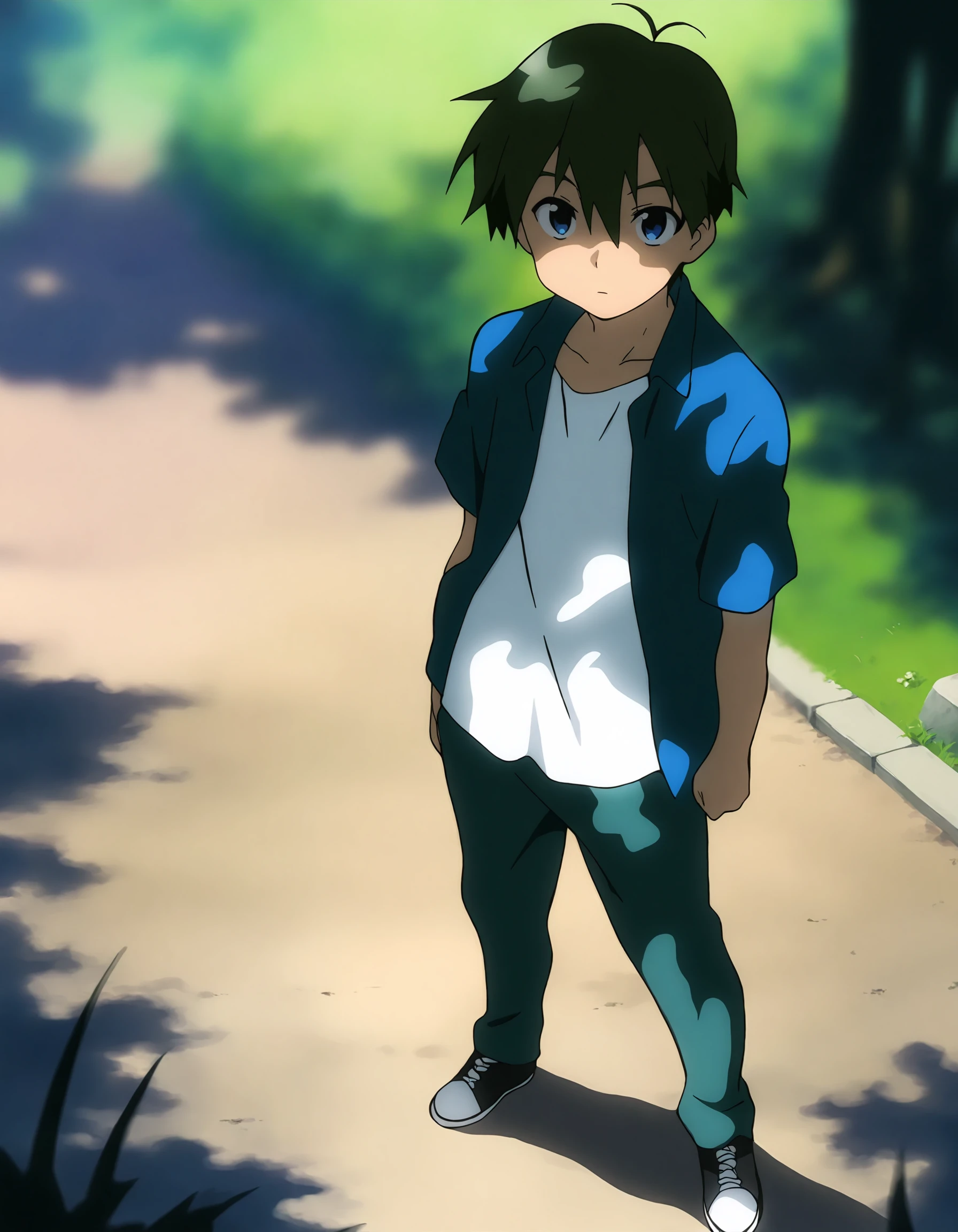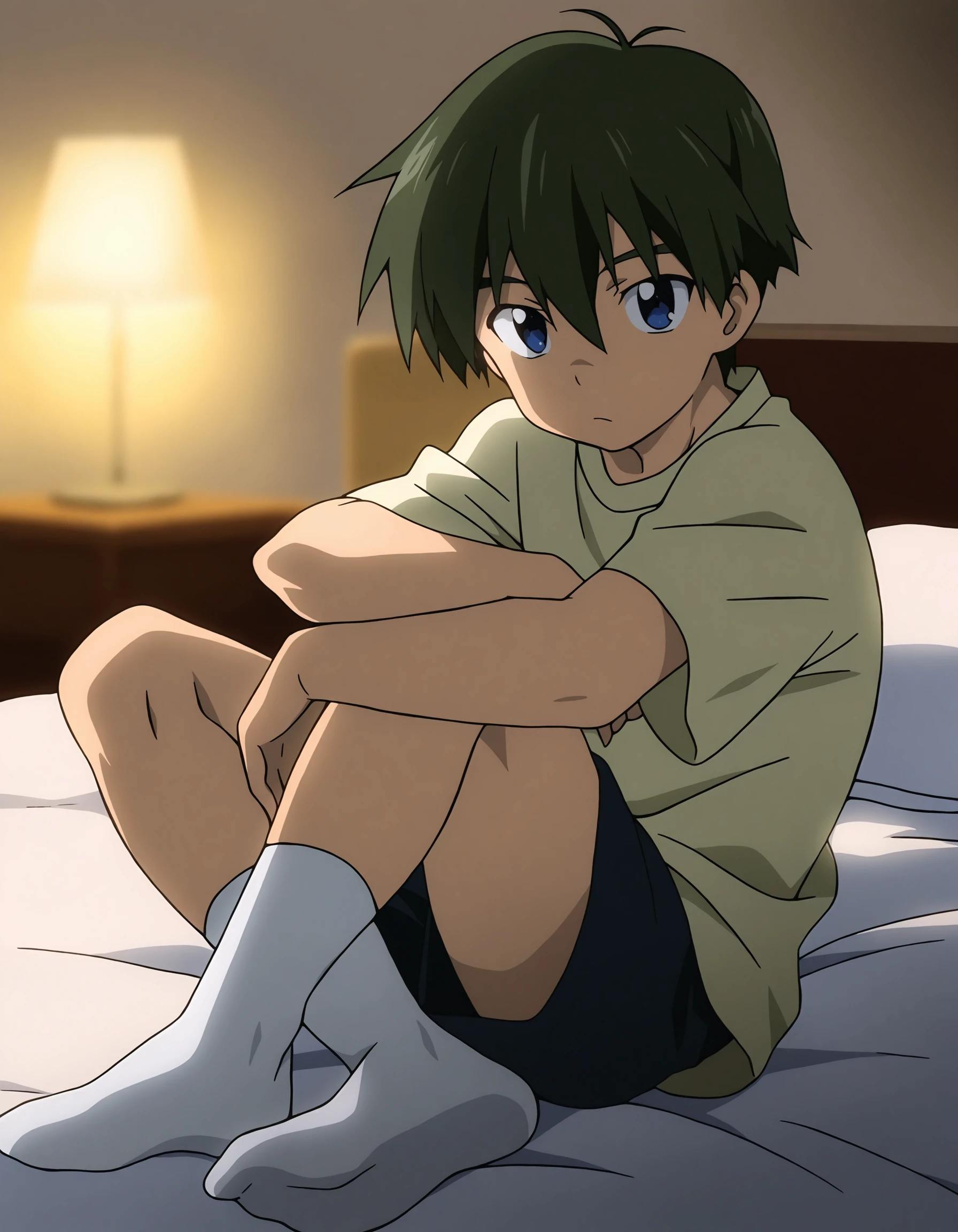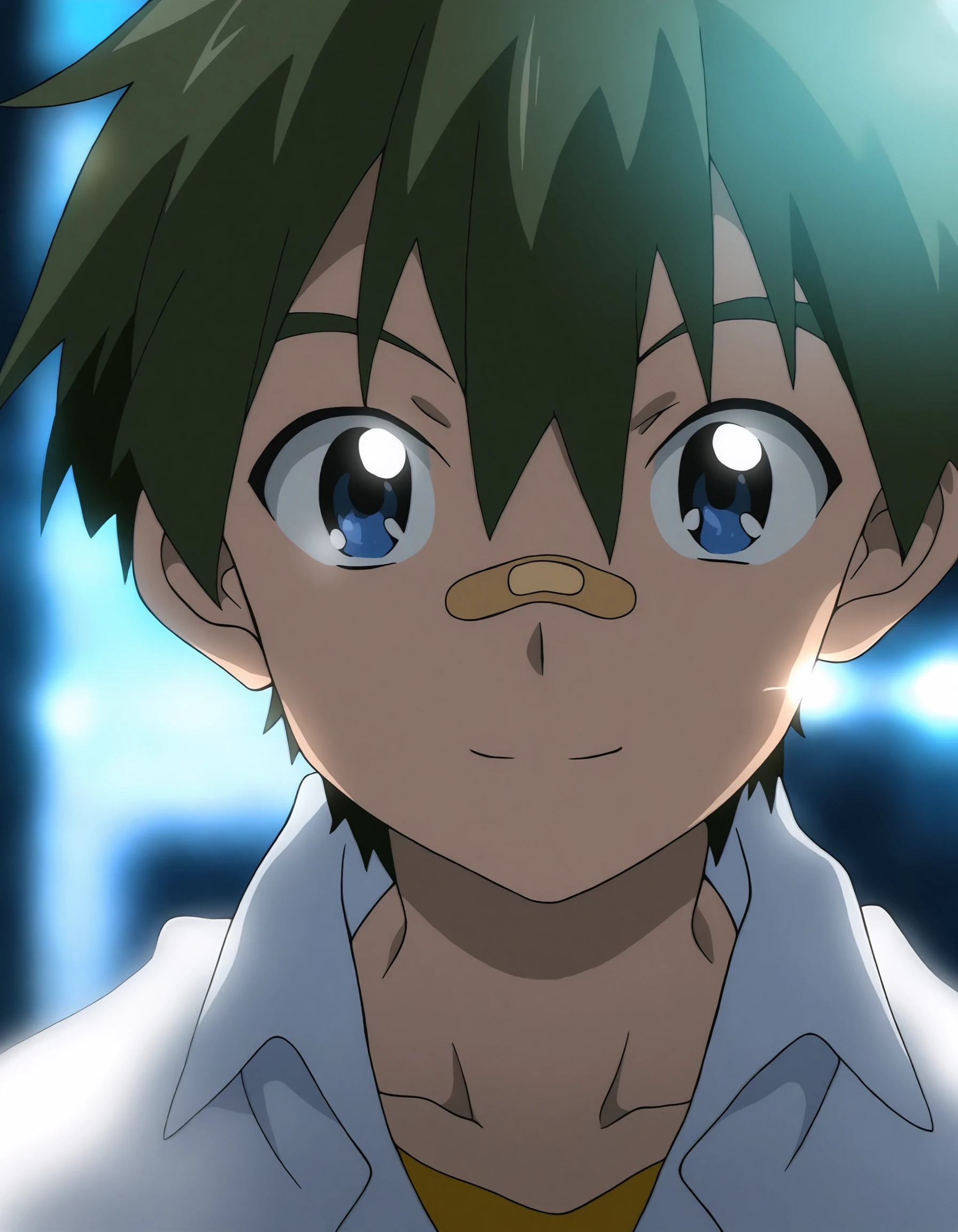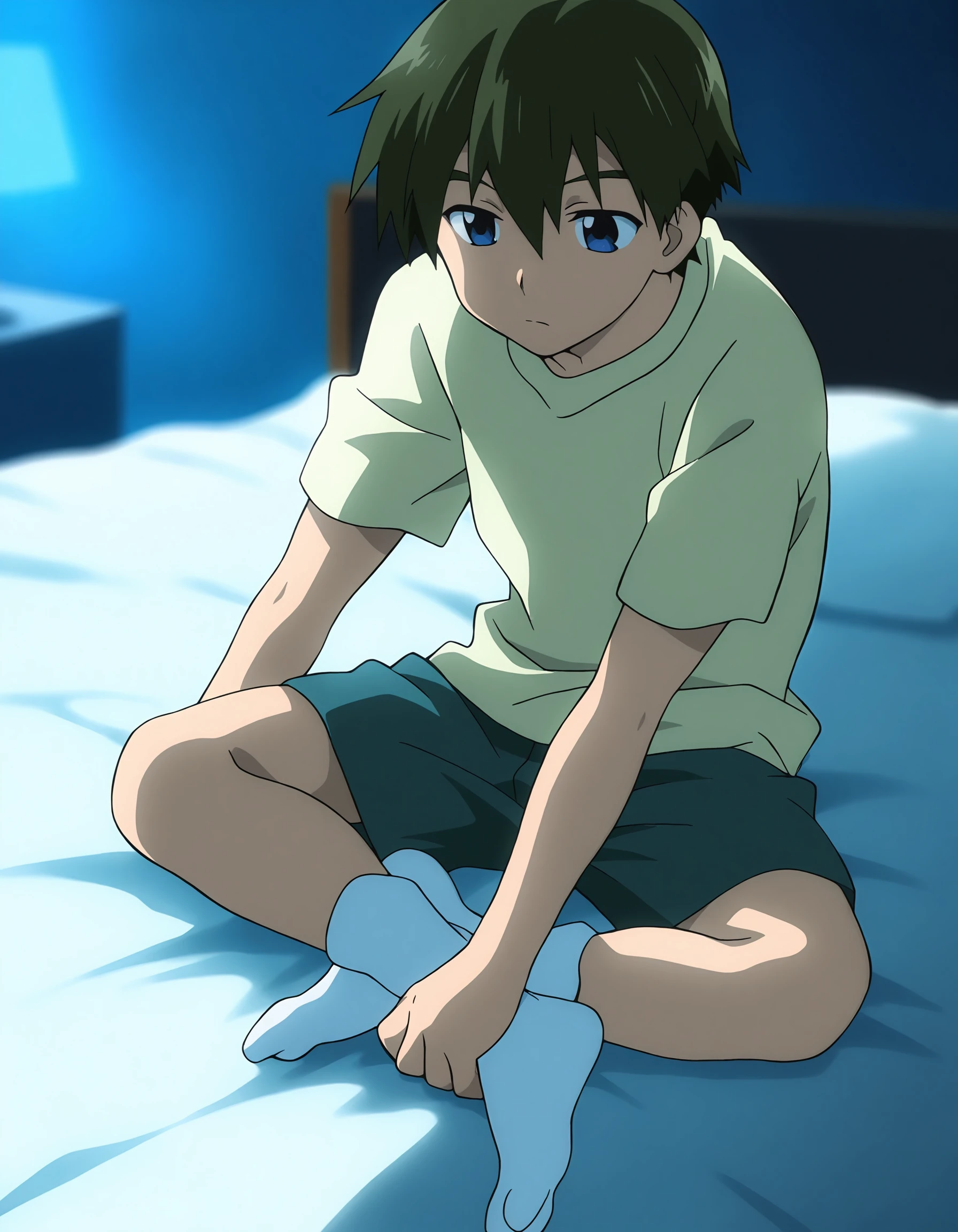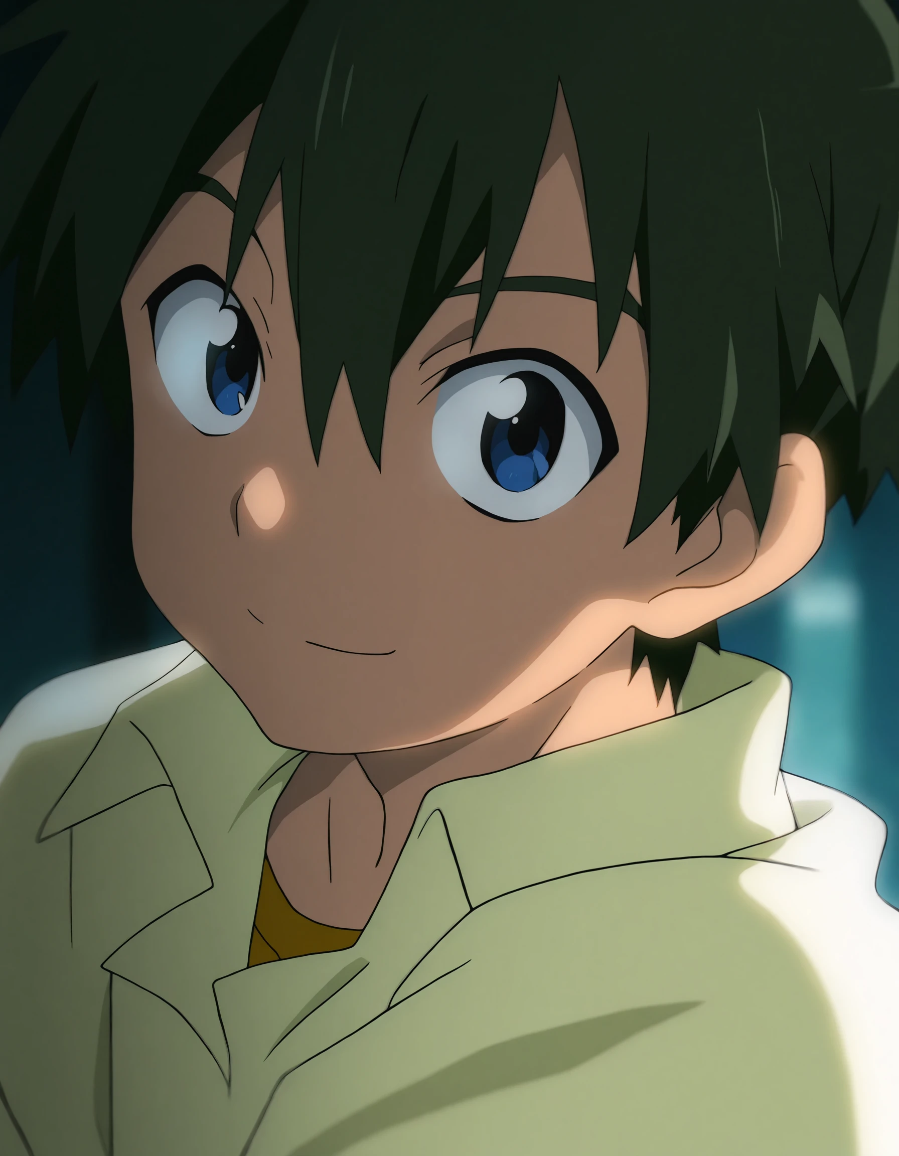 Trigger Words :jin mikuriya, 1boy, male focus, blue eyes, green hair,