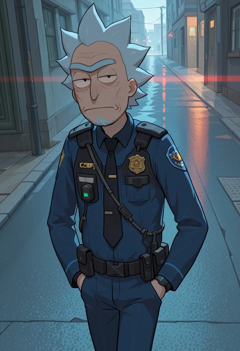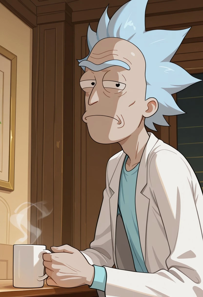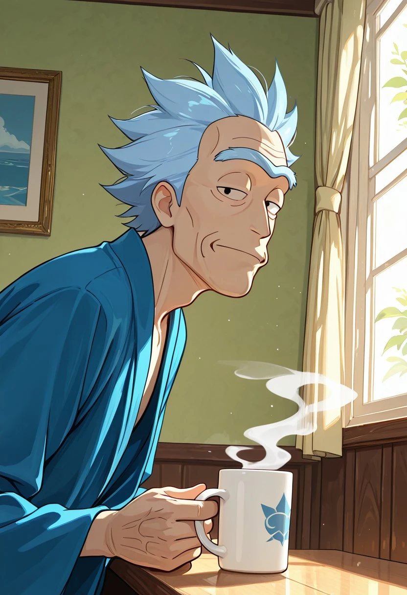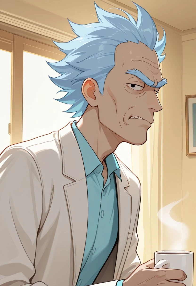 R1ckS4nchez, 1boy, mature male, human, light blue hair, unibrow, old man, black eyes