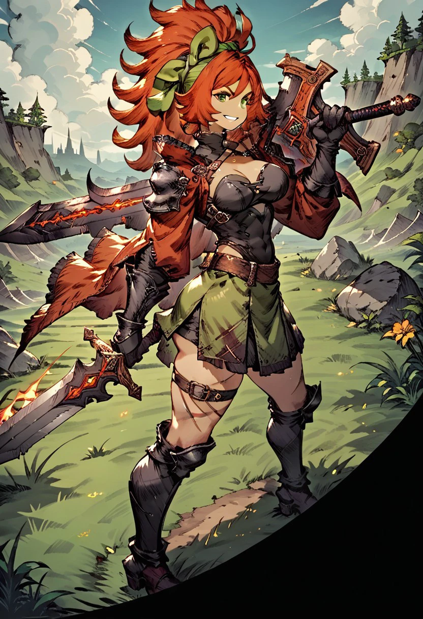 klilyth,1girl,weapon,solo,green eyes,armor,sword,long hair,ponytail
