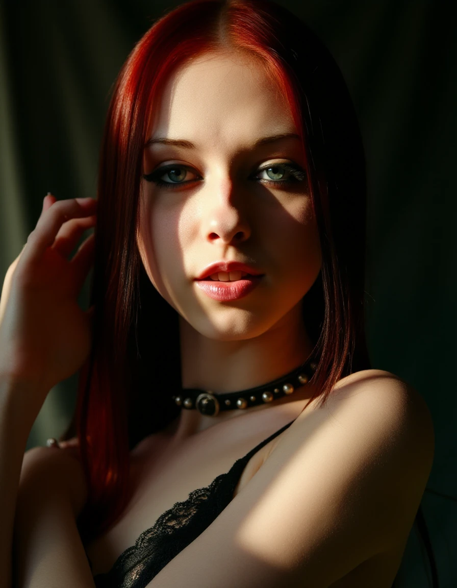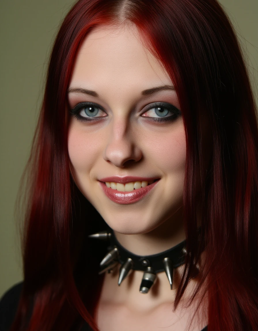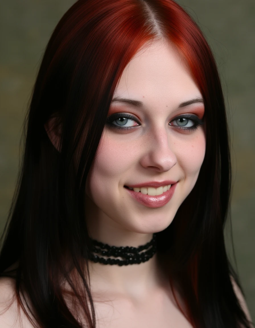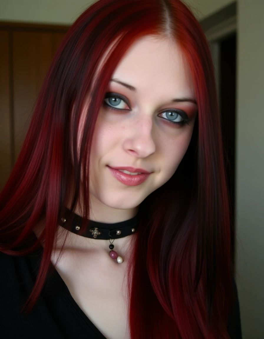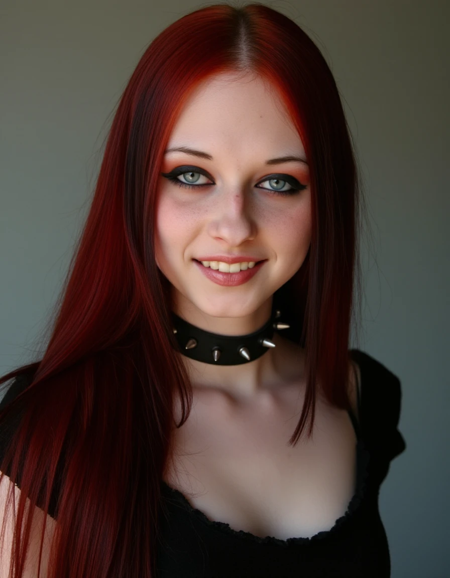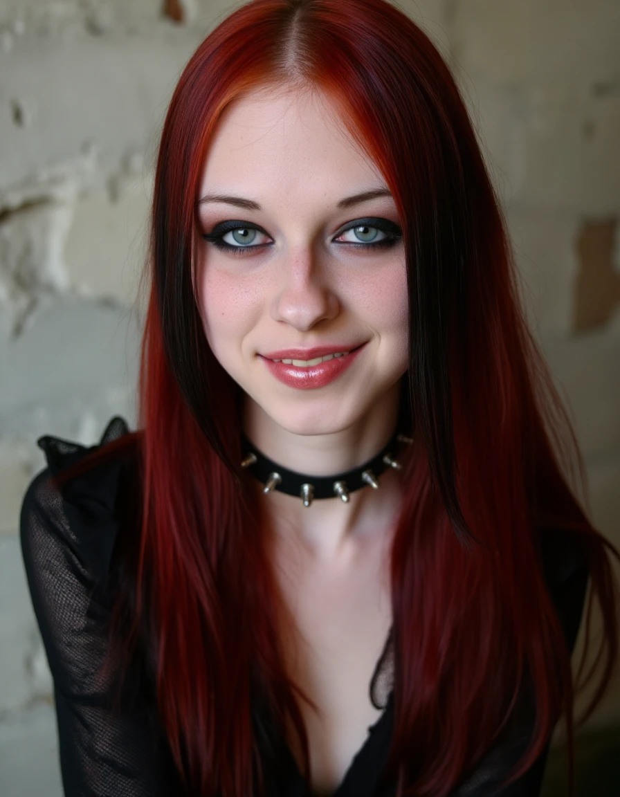 <lora:lizvicious_(PonyXL):1> lizvicious, 1girl, {emo hair, two-tone hair, | red hair,} long hair, blue eyes, freckles, makeup, small breasts, jewelry, {necklace, | choker, | spiked collar,} bracelet, rings, black nails, nail polish, smile, upper body,